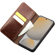 Husa din piele fina naturala pentru  Samsung Galaxy S25 FE - tip carte, cu buzunare carduri si bani, stand video, Qialino Classic Wallet, Maro - Espresso Brown