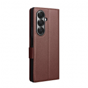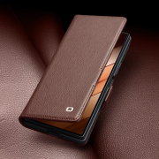Husa din piele fina tip carte, inchidere sigura magnetica, cu buzunare carduri si bani, Samsung Galaxy Z Fold7 - Qialino Full Grain Wallet, Maro
