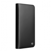 Husa din piele naturala pentru Samsung Galaxy S25 Edge - tip carte, cu buzunare carduri si bani, stand video, textura mata si neteda, Qialino Business Wallet, Negru - Graphite Black
