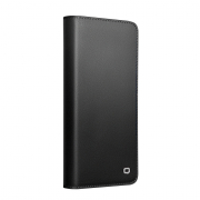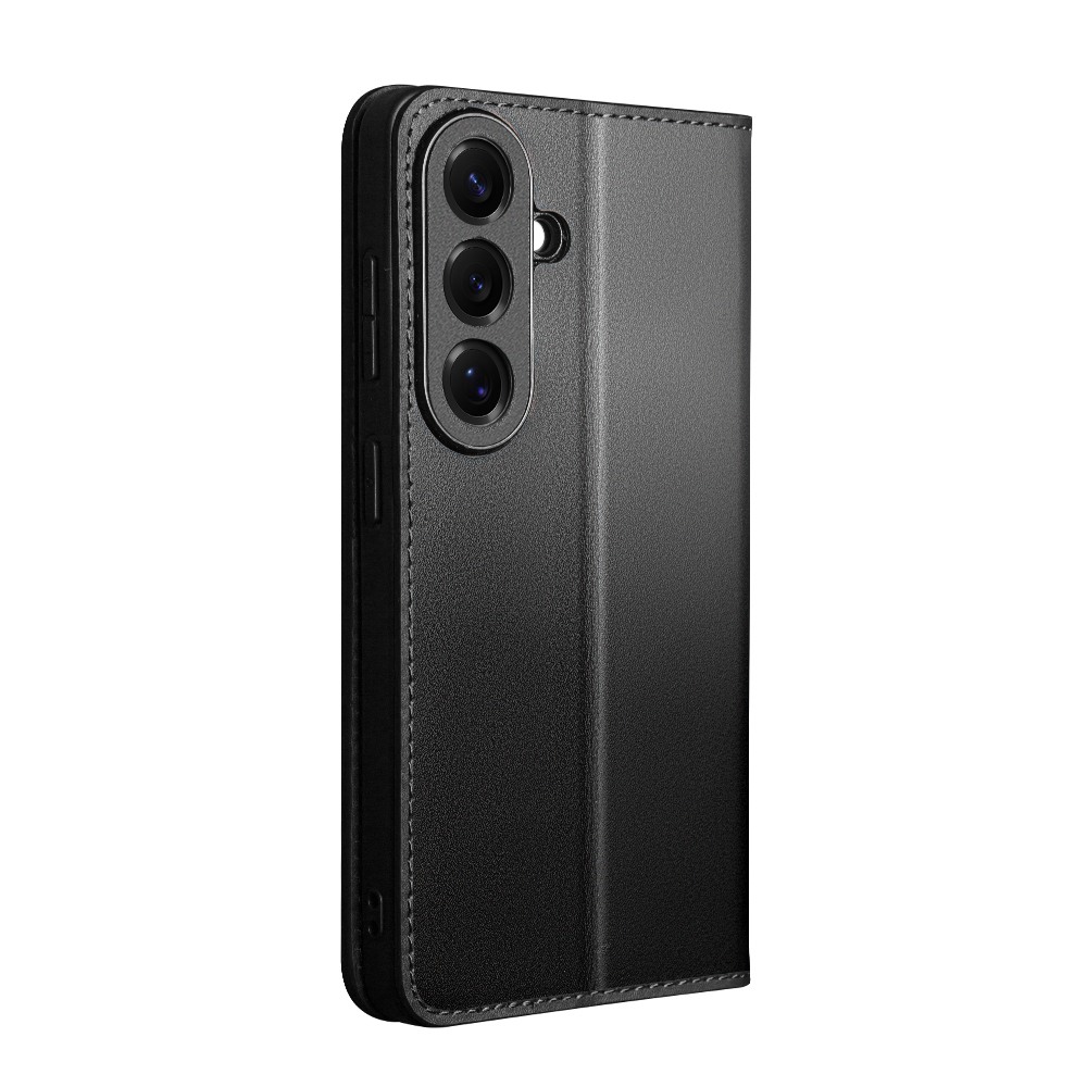 Husa din piele naturala pentru Samsung Galaxy S26 Plus  - tip carte, cu buzunare carduri si bani, stand video, textura mata si neteda, Qialino Business Wallet, Negru - Graphite Black