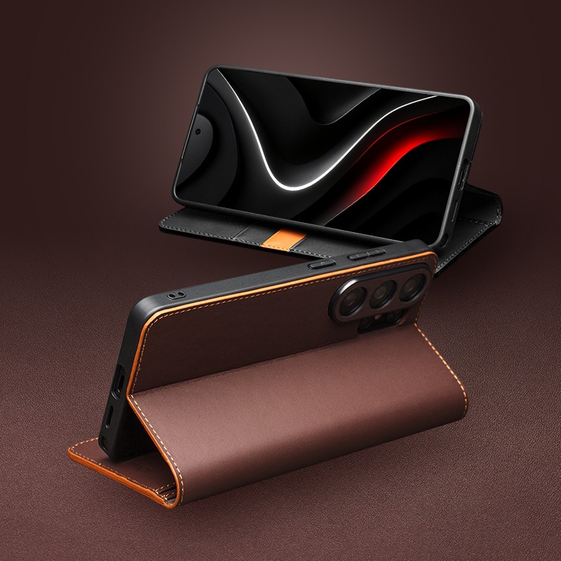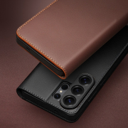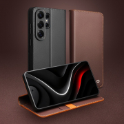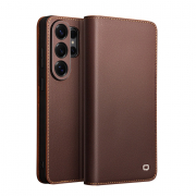 Husa din piele naturala pentru Samsung Galaxy S26 Ultra  - tip carte, cu buzunare carduri si bani, stand video, textura mata si neteda, Qialino Business Wallet, Maro - Chestnut Brown