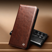 Husa pentru cu Samsung Galaxy S26 Ultra – piele naturala fina, tip carte, sloturi carduri si bani, functie stand, Qialino Classic Wallet, Maro - Espresso Brown