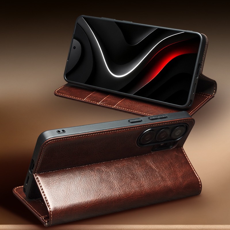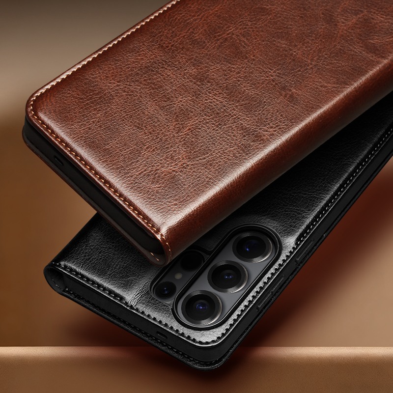 Husa Qialino Classic Wallet compatibila cu Samsung Galaxy S26 Ultra imbina protectia oferita de pielea naturala premium cu functionalitatea unui portofel complet – carduri, bancnote si functie stand, toate intr-un singur accesoriu elegant.