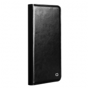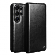 Husa pentru cu Samsung Galaxy S26 Ultra – piele naturala fina, tip carte, sloturi carduri si bani, functie stand, Qialino Classic Wallet, Negru - Black Prestige