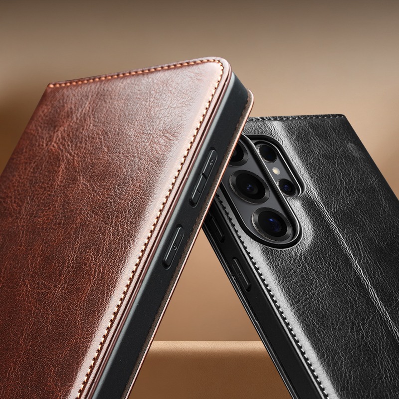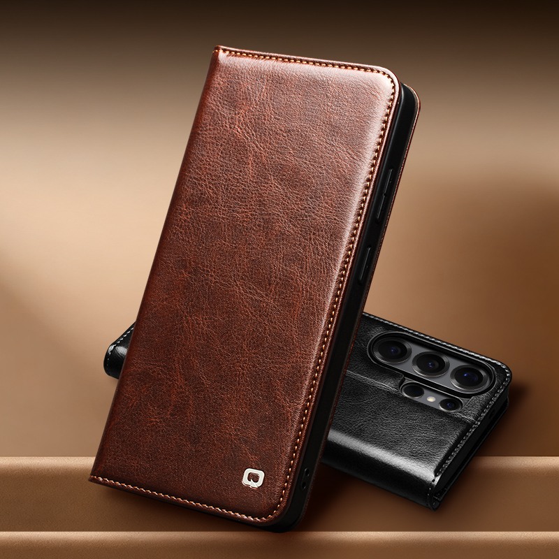 Husa Qialino Classic Wallet compatibila cu Samsung Galaxy S26 Ultra imbina protectia oferita de pielea naturala premium cu functionalitatea unui portofel complet – carduri, bancnote si functie stand, toate intr-un singur accesoriu elegant.