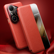 Husa pentru Huawei Pura 80 Ultra – Qialino Smart Luxury, piele naturala, slim smart cover, eleganta, culoare Rosu - Ruby Red