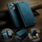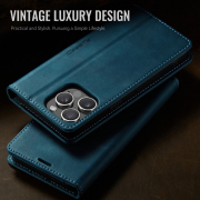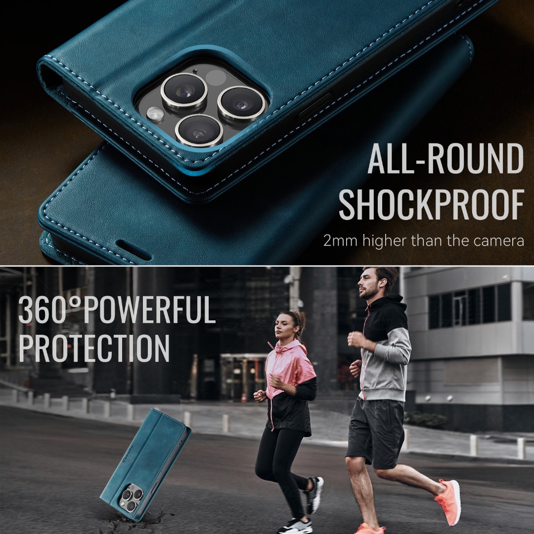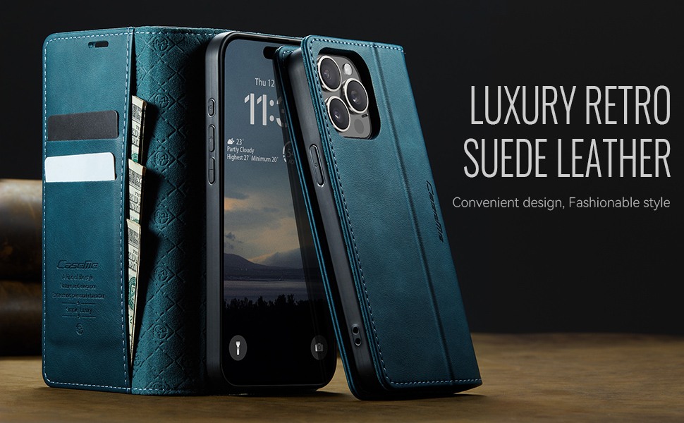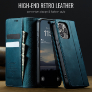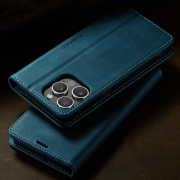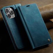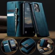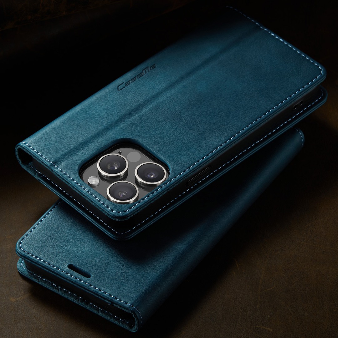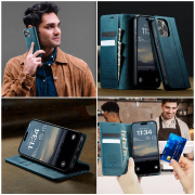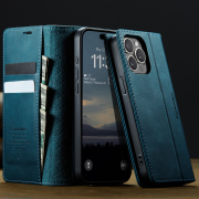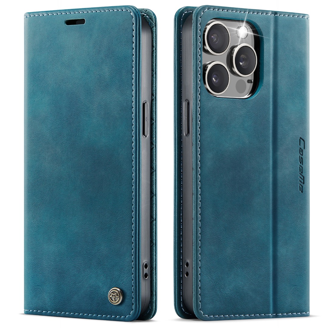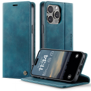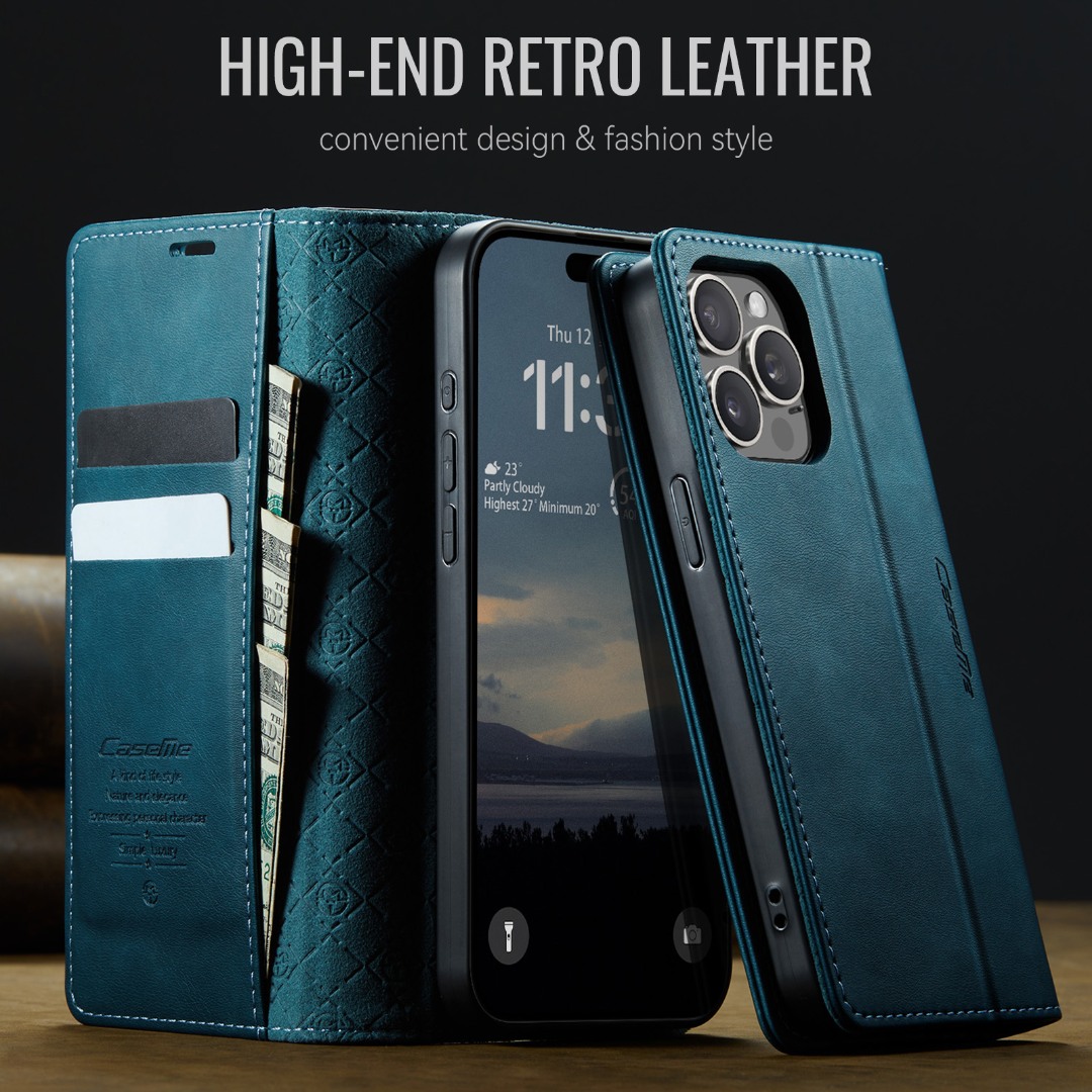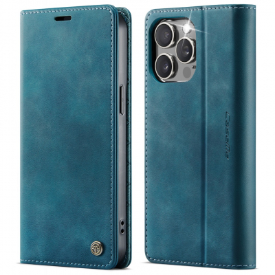 Husa pentru iPhone 14 Pro Max - Slim tip portofel, cu stand si inchidere magnetica – textura neteda, aderenta sigura, usor de curatat, design curat si minimalist, CaseMe, Teal - Albastru verzui