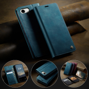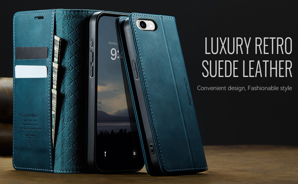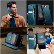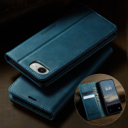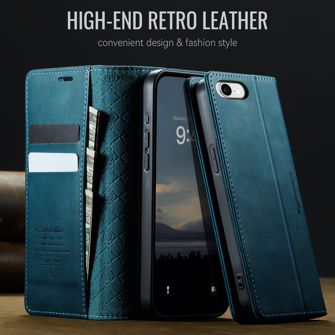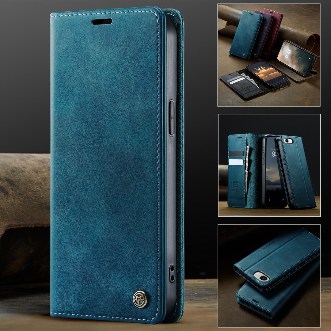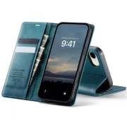 Husa pentru iPhone 16e - Slim tip portofel, cu stand si inchidere magnetica – textura neteda, aderenta sigura, usor de curatat, design curat si minimalist, CaseMe, Teal - Albastru verzui