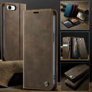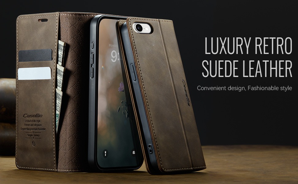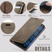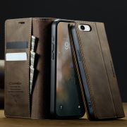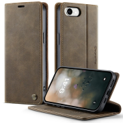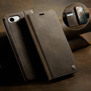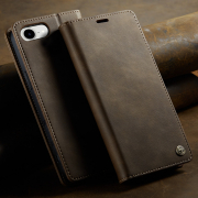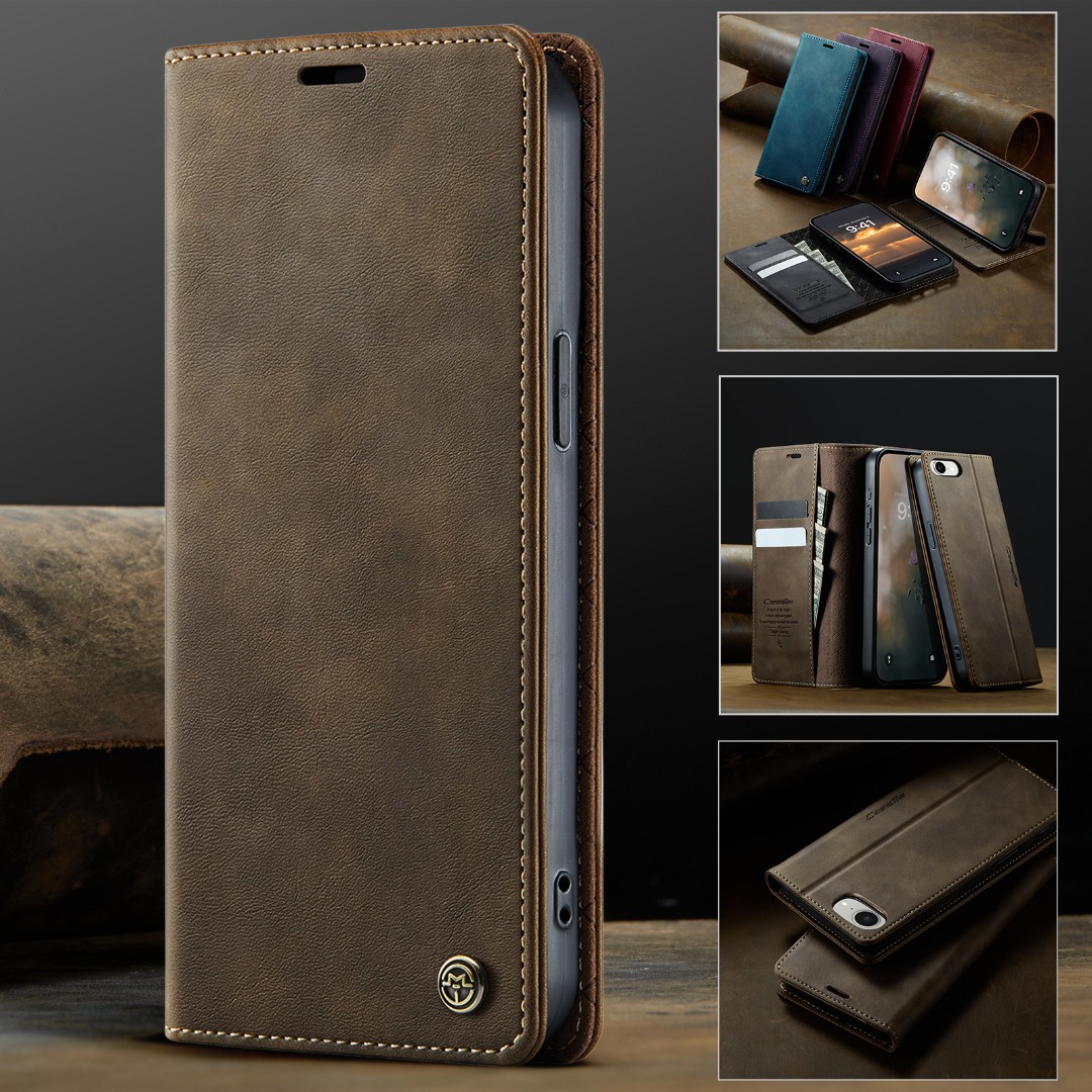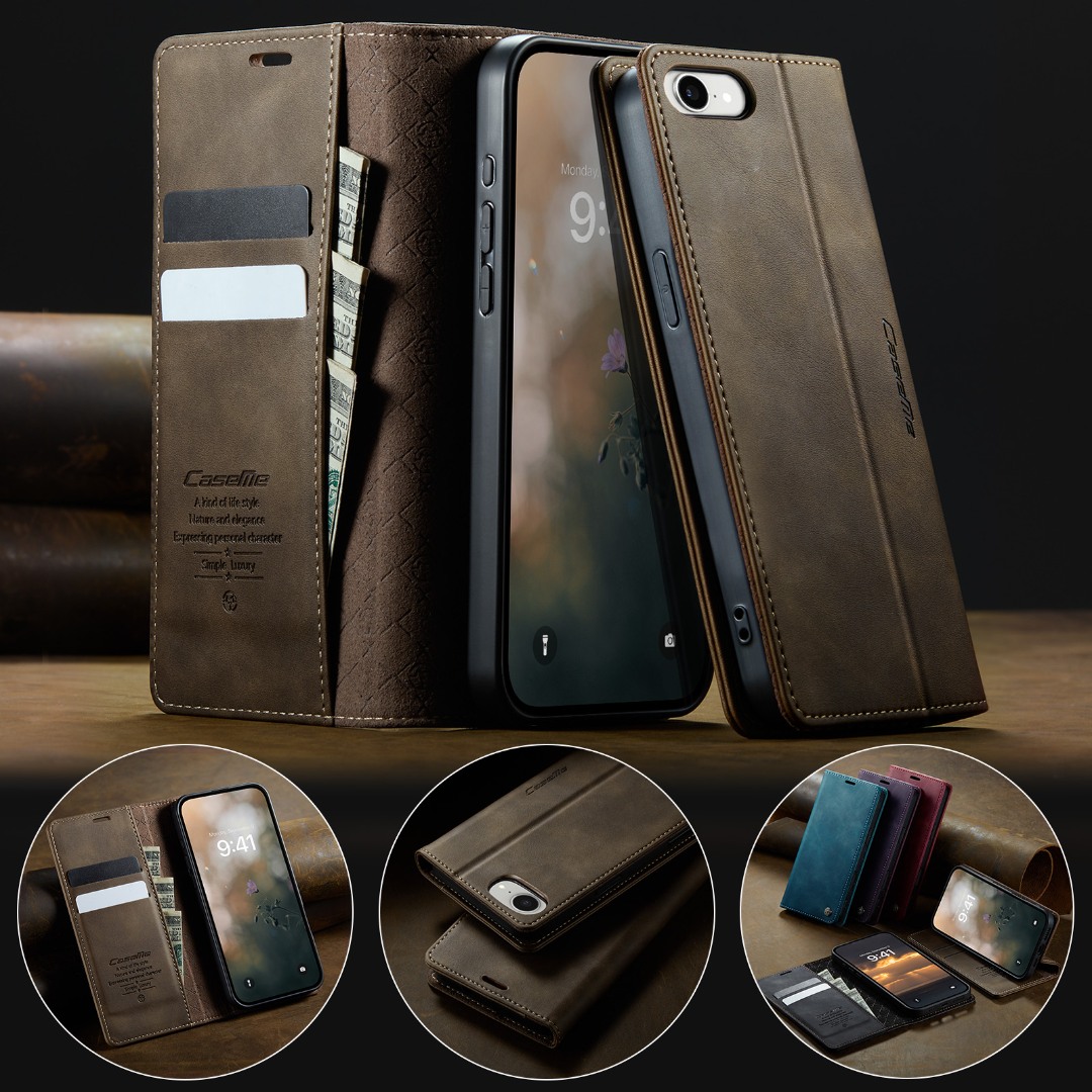 Husa pentru iPhone 16e - Slim tip portofel, cu stand si inchidere magnetica – textura neteda, aderenta sigura, usor de curatat, design curat si minimalist, CaseMe, Brun clasic