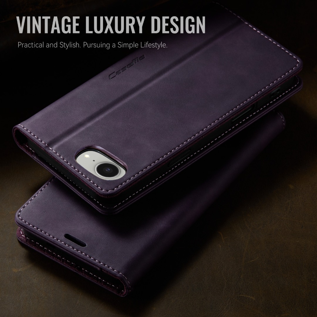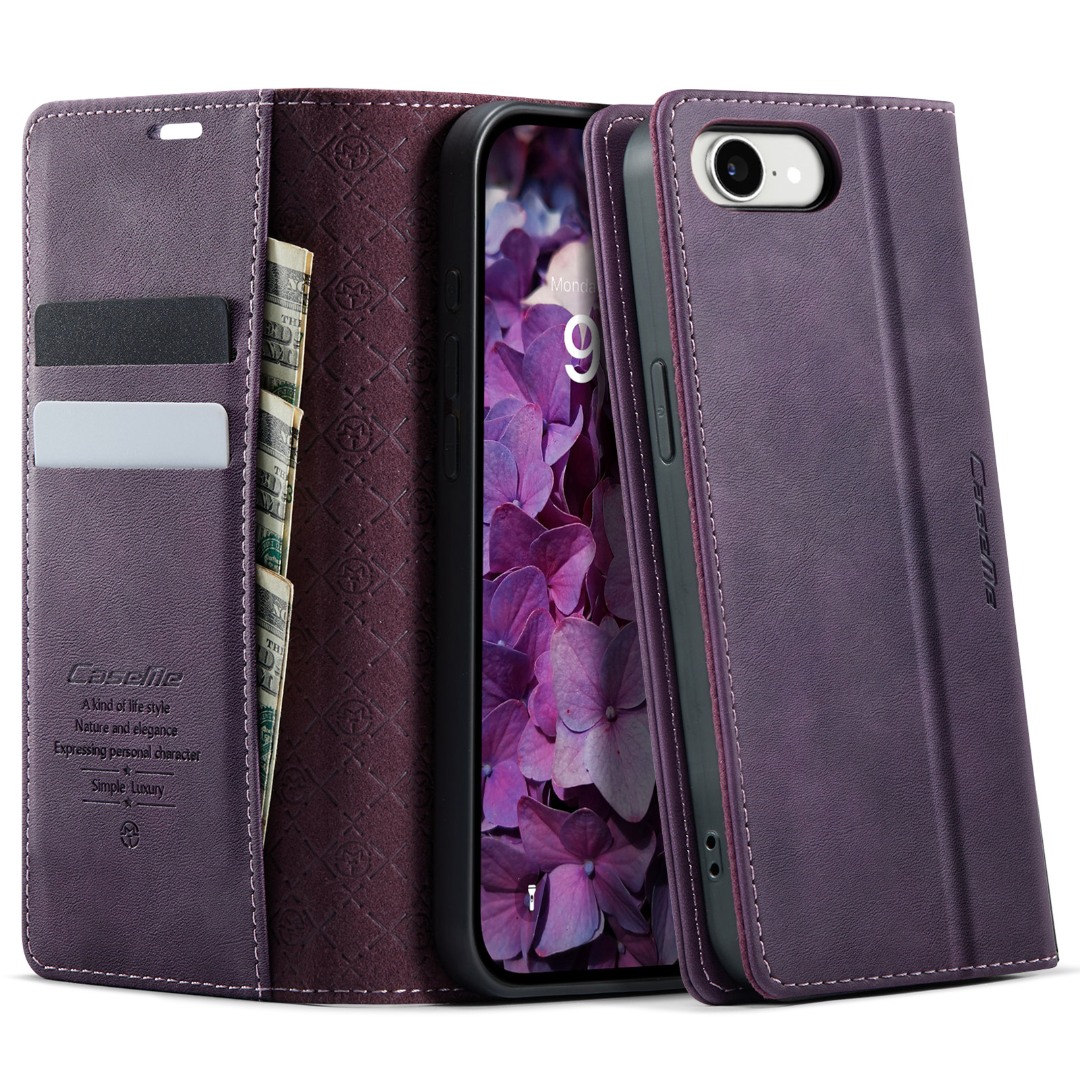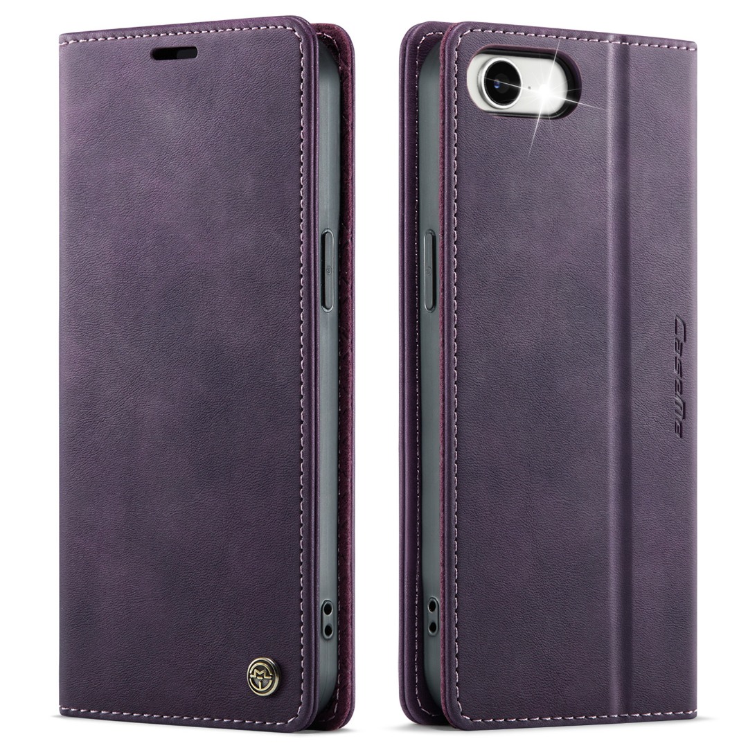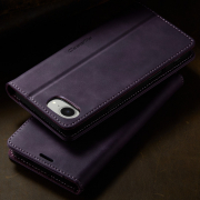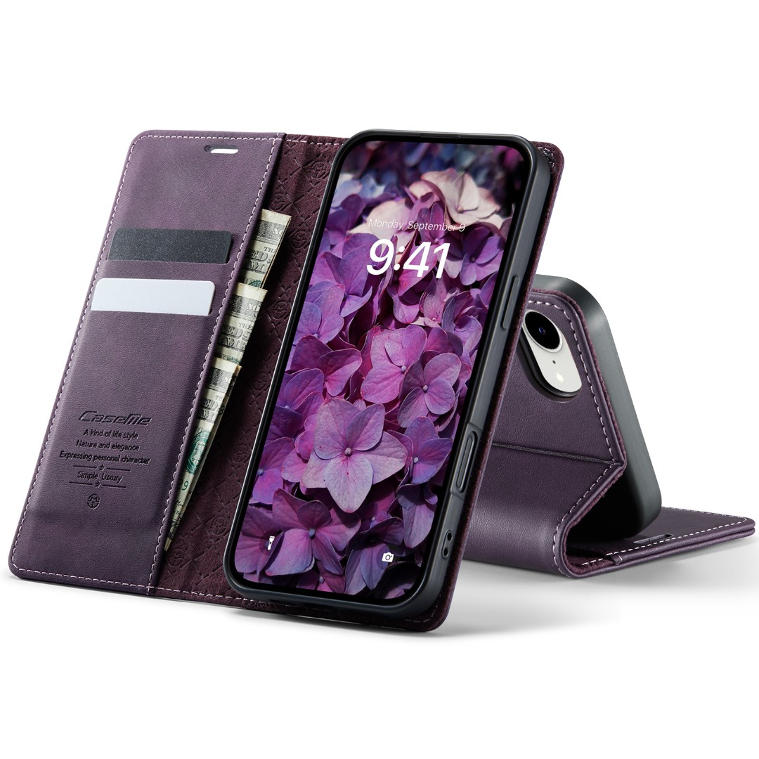 Husa pentru iPhone 16e - Slim tip portofel, cu stand si inchidere magnetica – textura neteda, aderenta sigura, usor de curatat, design curat si minimalist, CaseMe, Violet regal