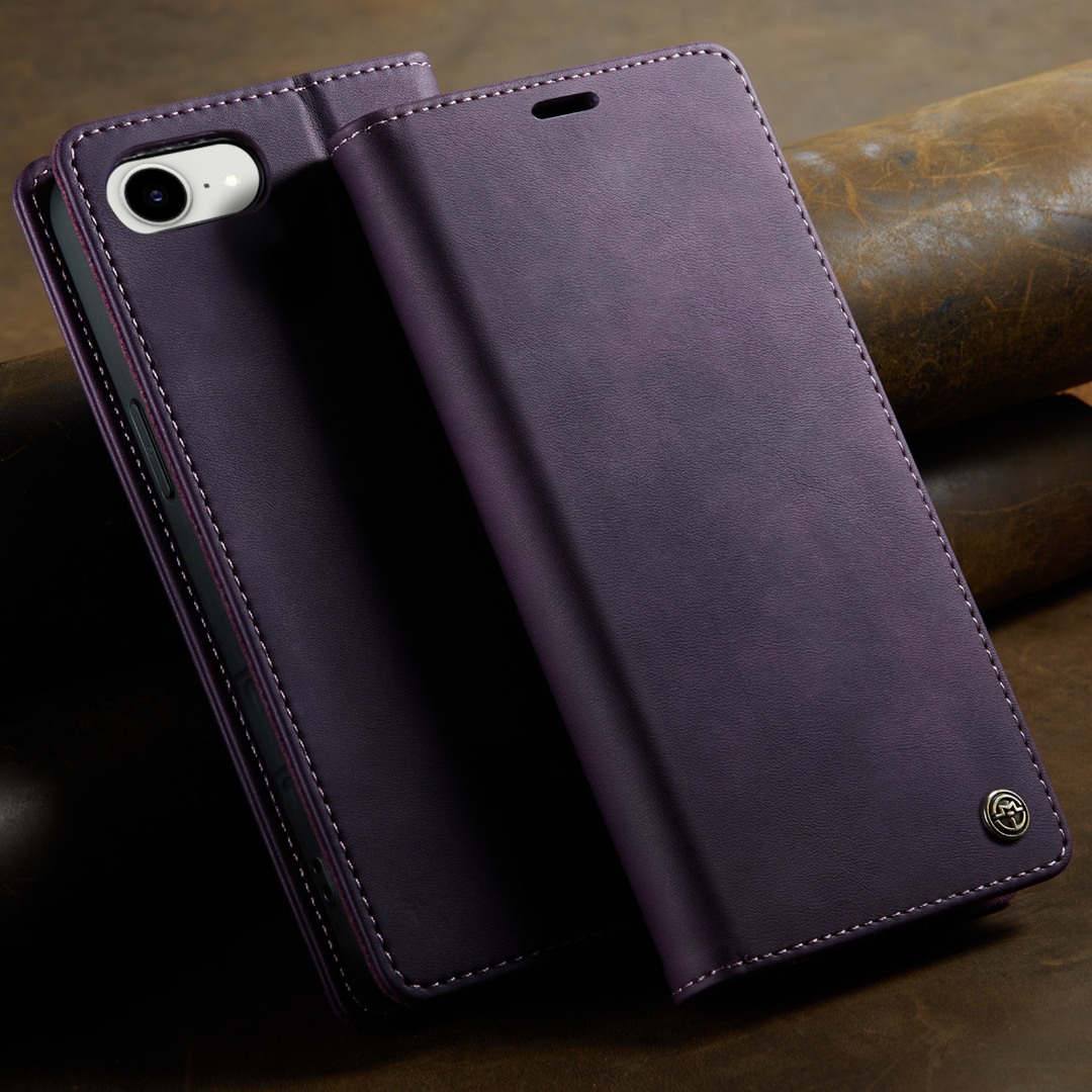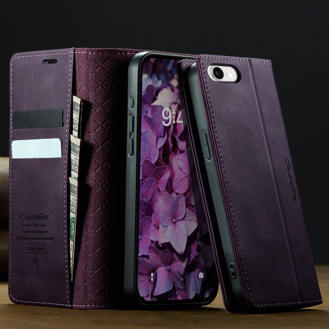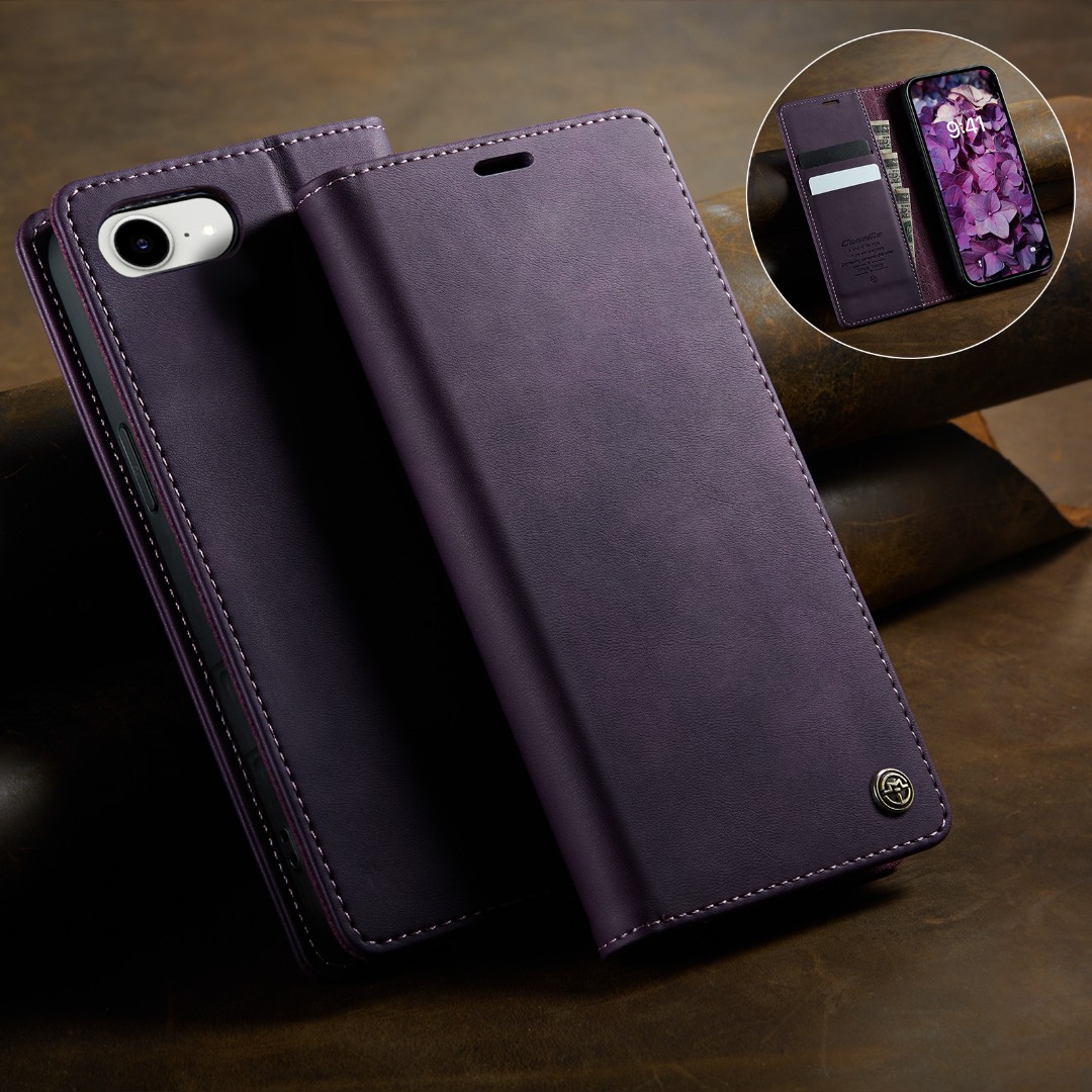 Husa pentru iPhone 16e - Slim tip portofel, cu stand si inchidere magnetica – textura neteda, aderenta sigura, usor de curatat, design curat si minimalist, CaseMe, Violet regal