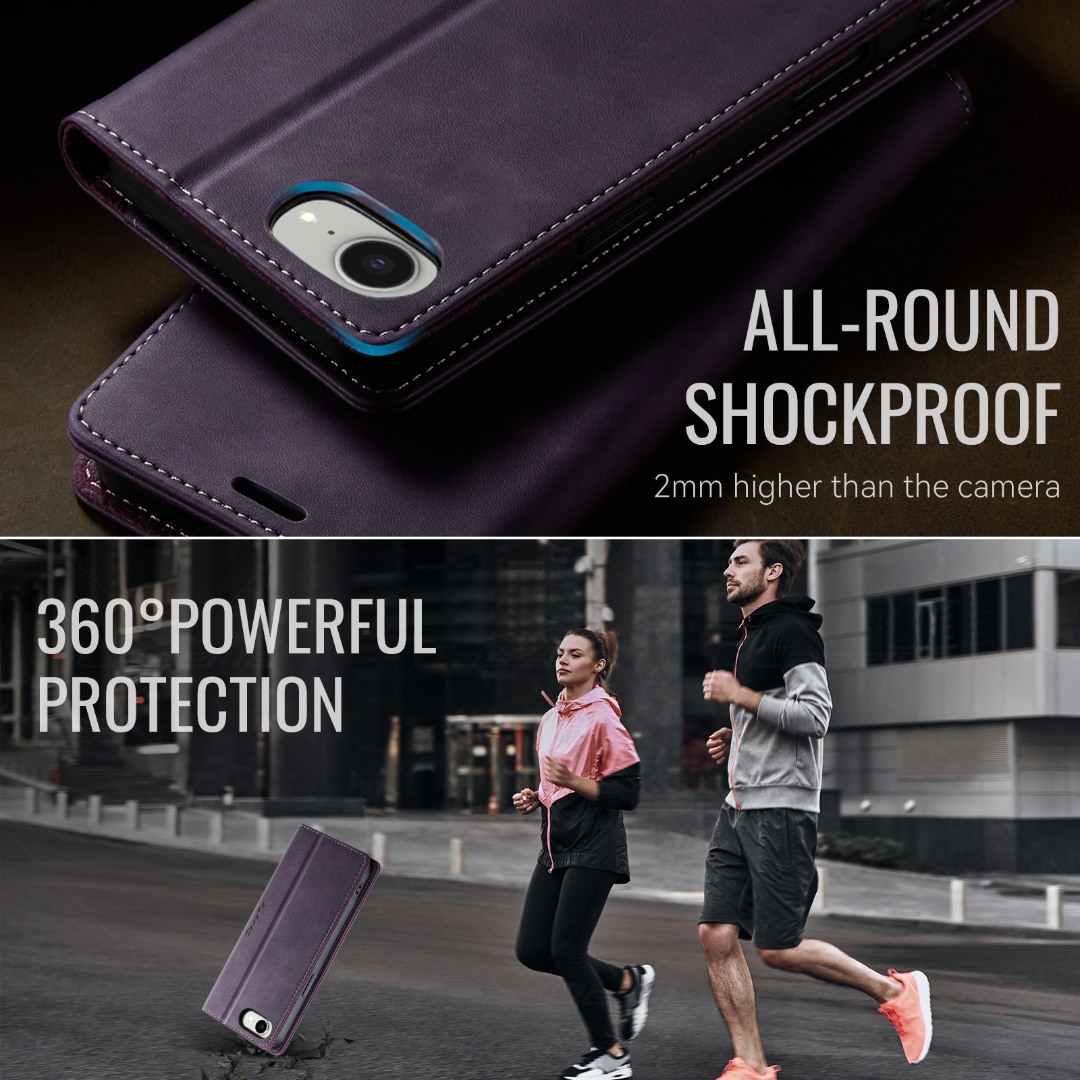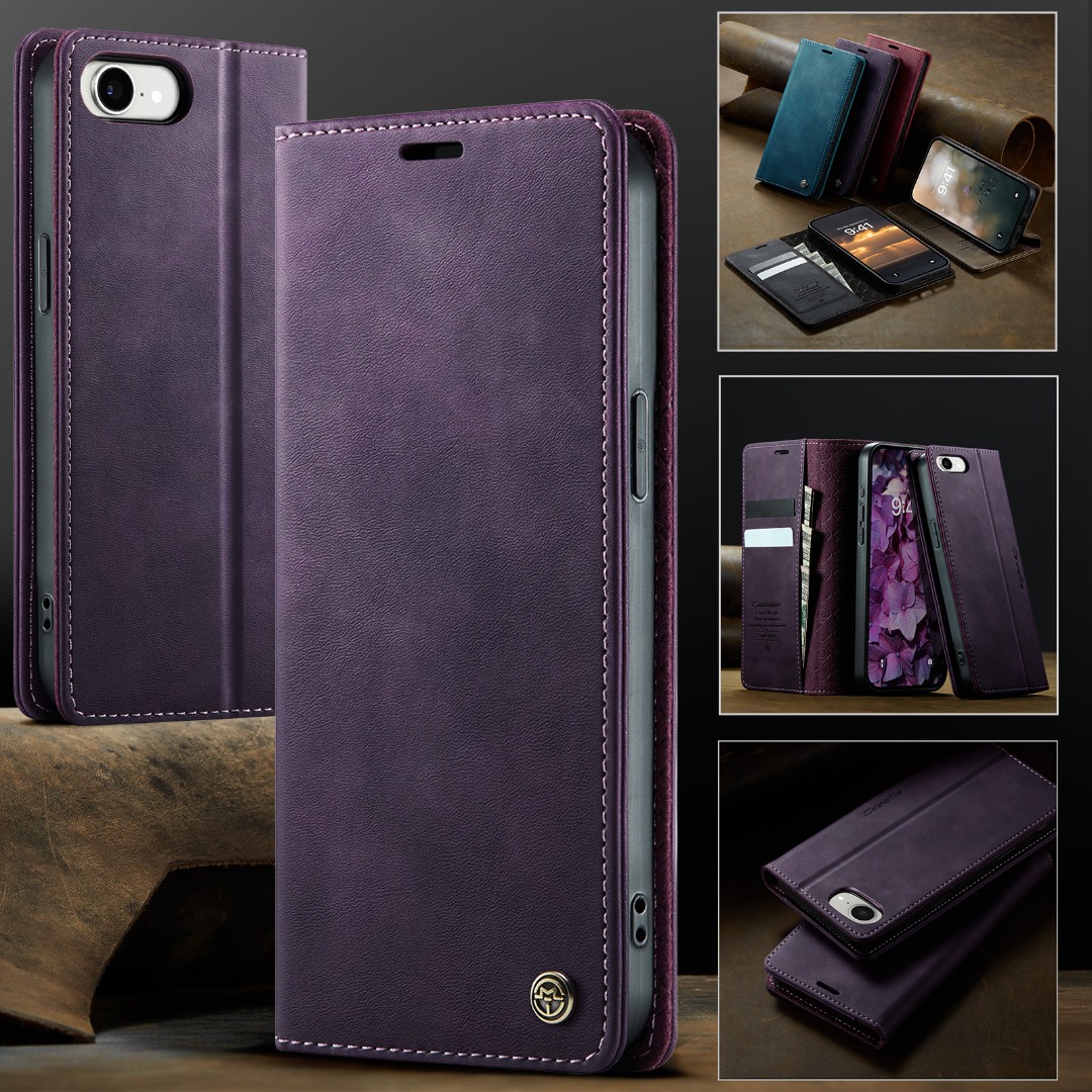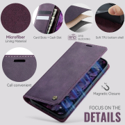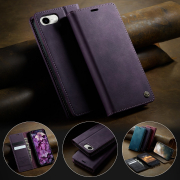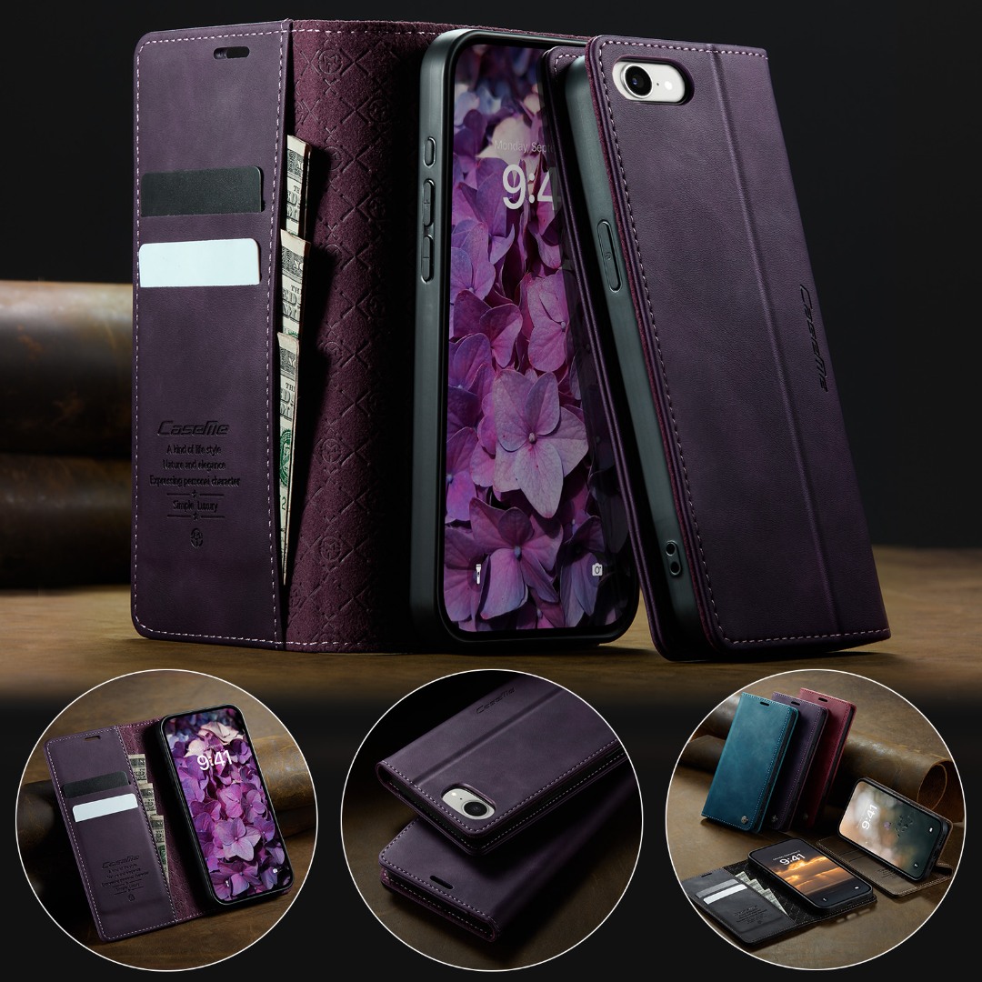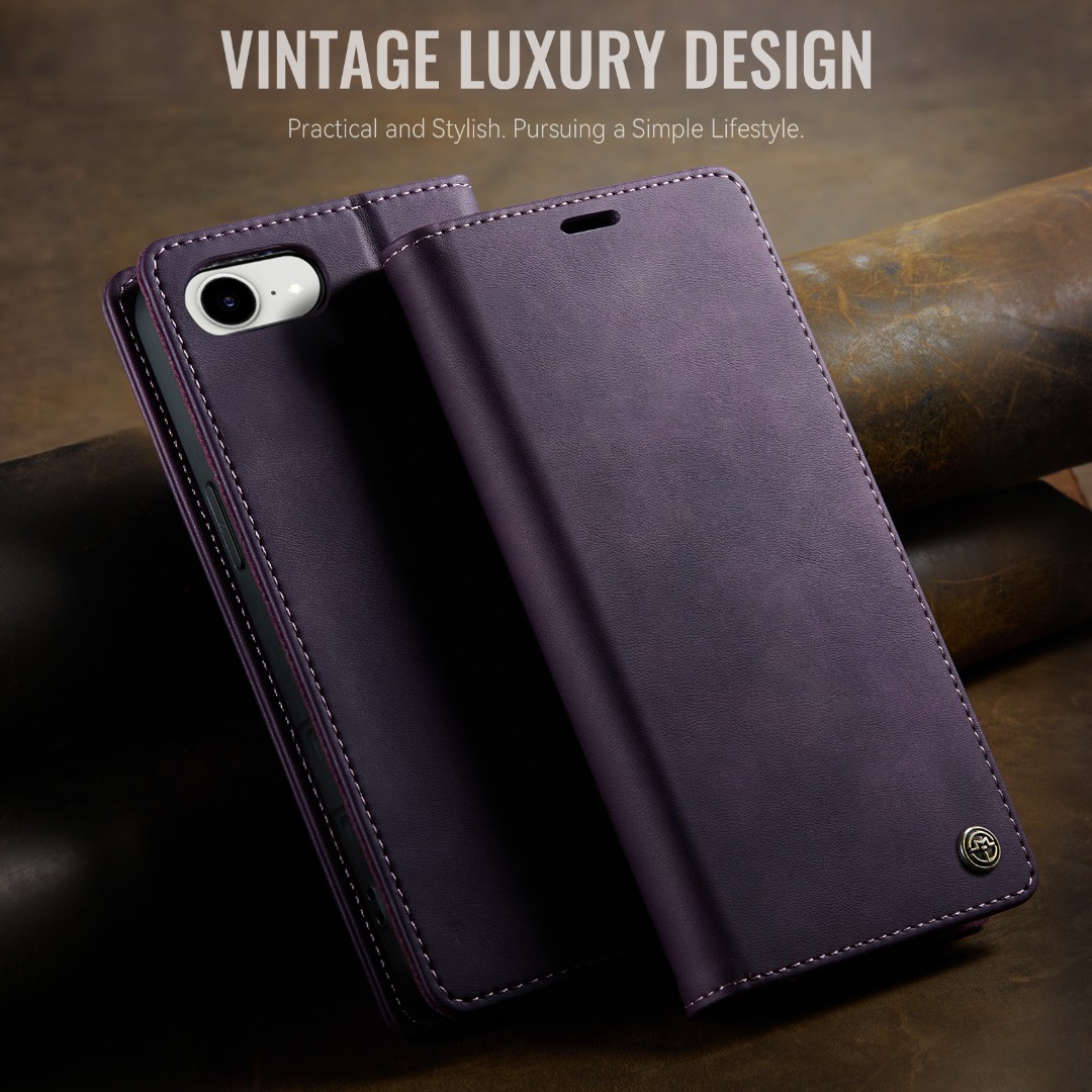 Husa pentru iPhone 16e - Slim tip portofel, cu stand si inchidere magnetica – textura neteda, aderenta sigura, usor de curatat, design curat si minimalist, CaseMe, Violet regal