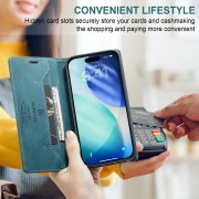 Husa practica si eleganta ce ofera posibilitatea introducerii de carduri bancare si bancnote in buzunarasele interioare.