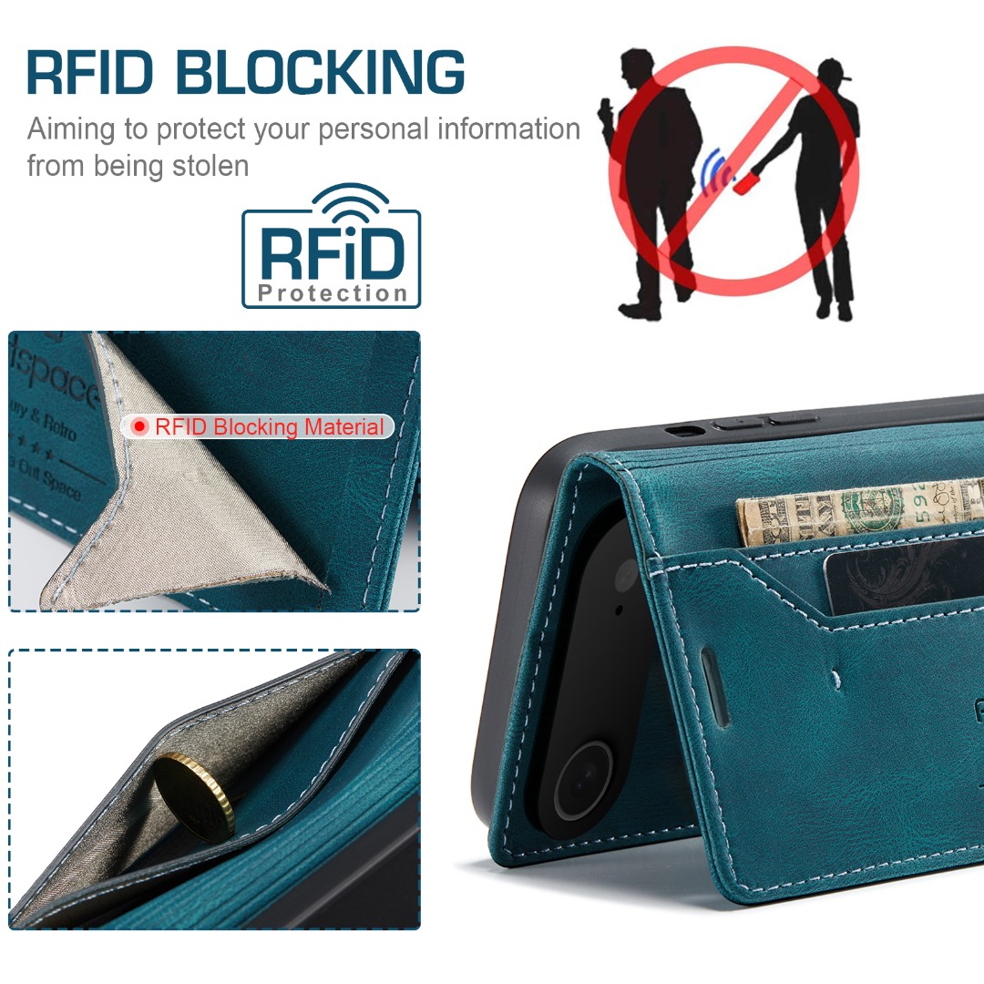 Compartimentele pentru carduri sunt prevazute cu protectie RFID, ajutand la prevenirea furtului de date prin scanare neautorizata.