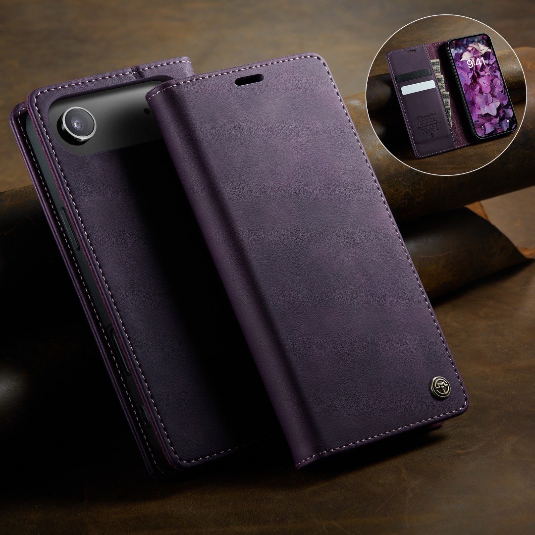 Husa pentru iPhone Air - Slim tip portofel, cu stand si inchidere magnetica – textura neteda, aderenta sigura, usor de curatat, design curat si minimalist, CaseMe, Violet regal
