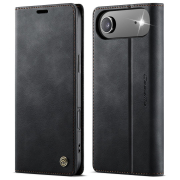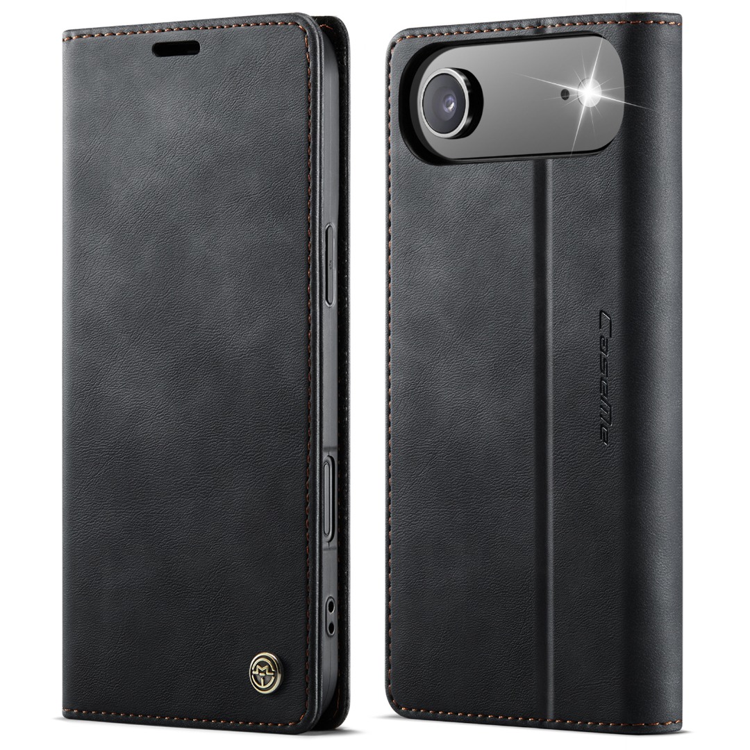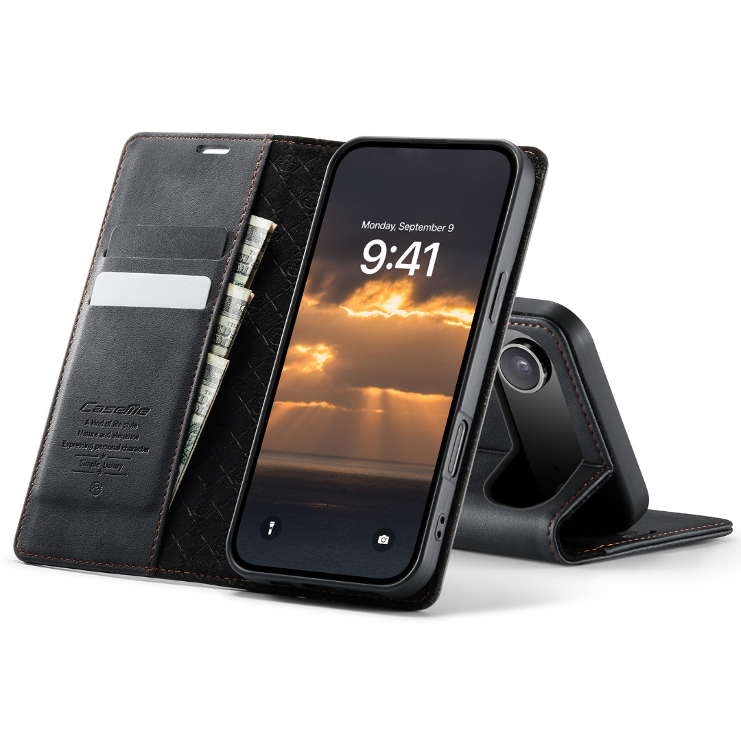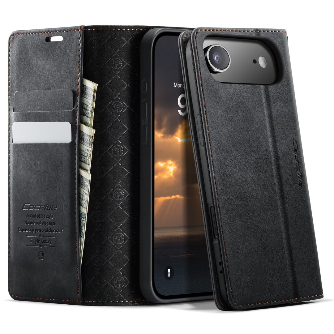 Husa pentru iPhone Air - Slim tip portofel, cu stand si inchidere magnetica – textura neteda, aderenta sigura, usor de curatat, design curat si minimalist, CaseMe, Negru carbon