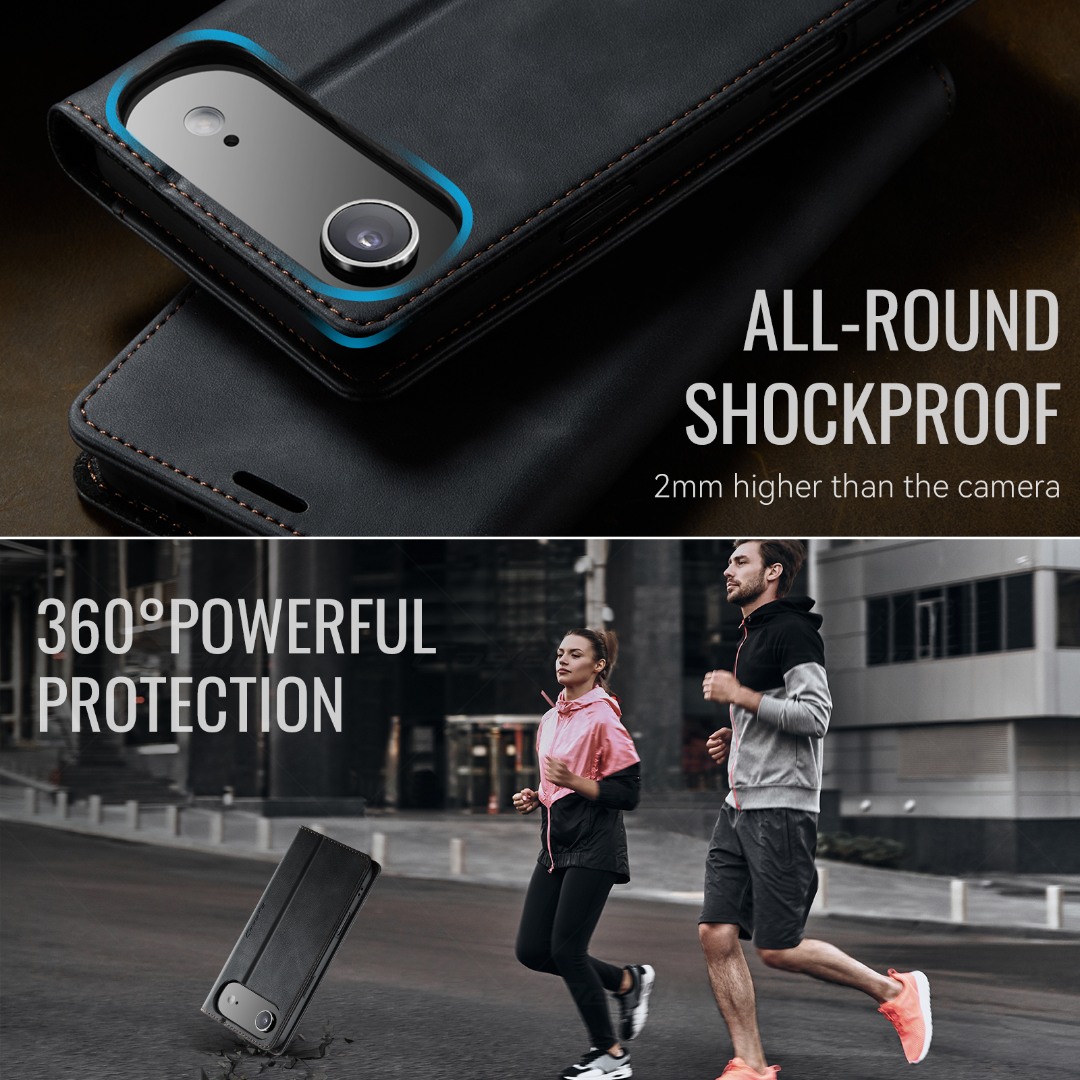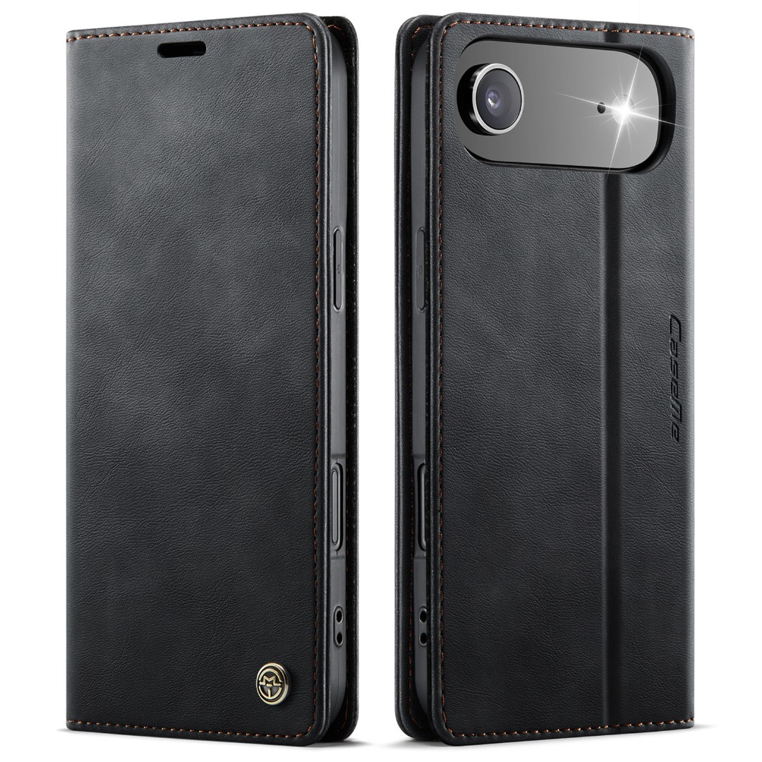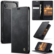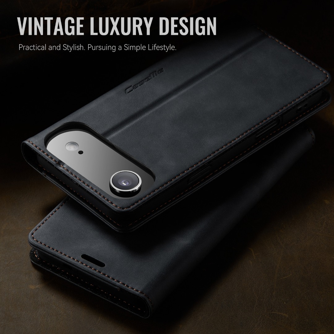 Husa pentru iPhone Air - Slim tip portofel, cu stand si inchidere magnetica – textura neteda, aderenta sigura, usor de curatat, design curat si minimalist, CaseMe, Negru carbon