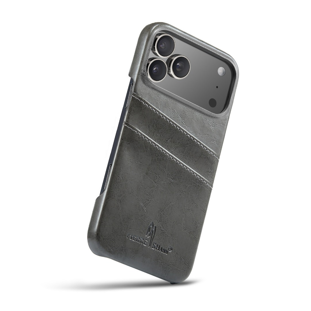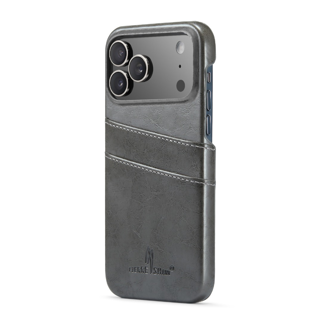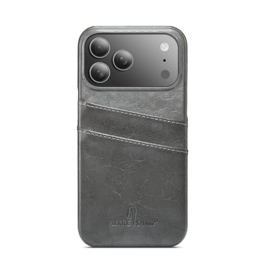 Husa pentru iPhone 17 Pro, slim back cover, din piele fina cu textura vintage, cu slot pentru carduri, design modern si practic, CaseMe, culoare Gri