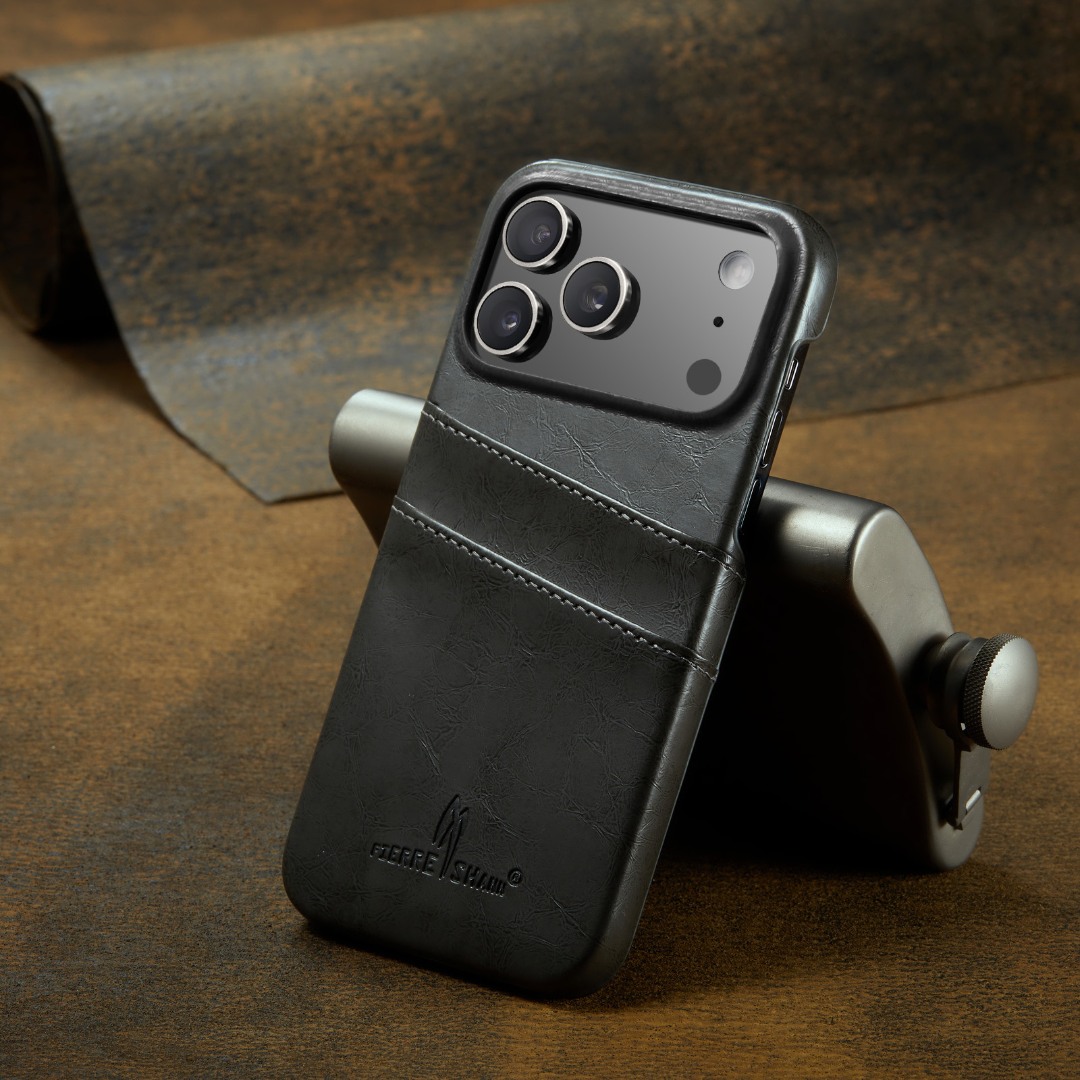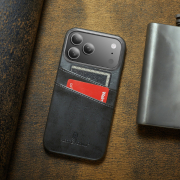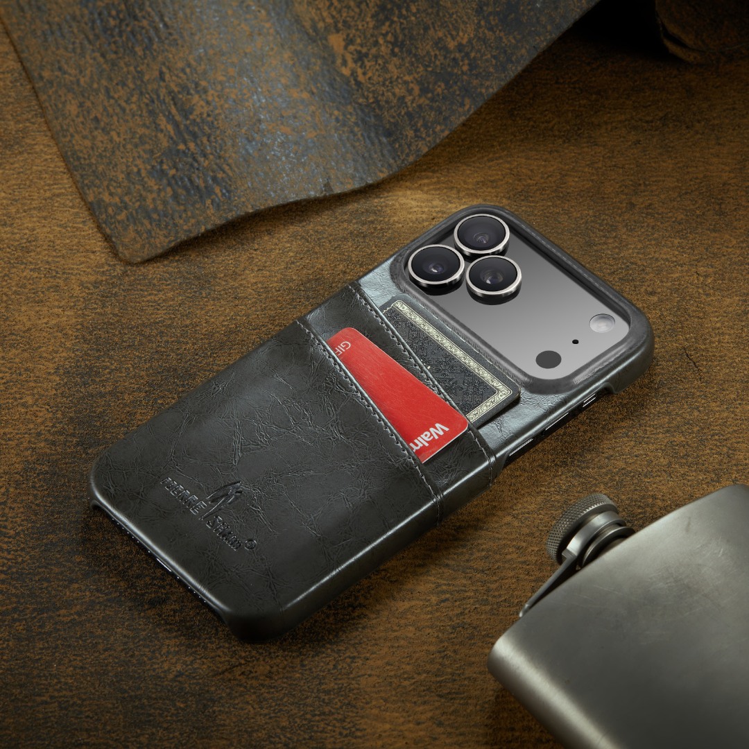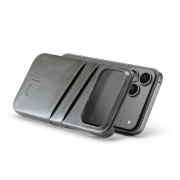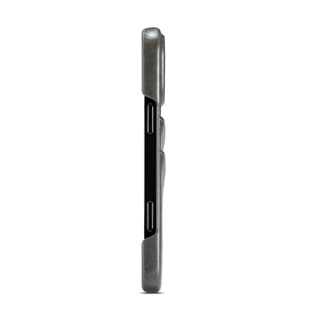 Husa pentru iPhone 17 Pro, slim back cover, din piele fina cu textura vintage, cu slot pentru carduri, design modern si practic, CaseMe, culoare Gri