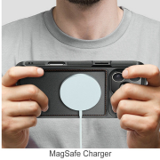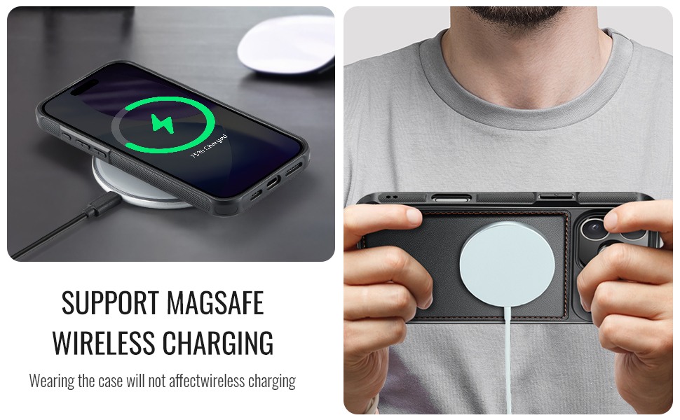 - compatibila cu MagSafe: Magnetii integrati permit aliniere perfecta cu accesoriile MagSafe – incarcatoare wireless, suporturi auto si portofele magnetice. Incarcarea wireless functioneaza fara a scoate husa