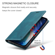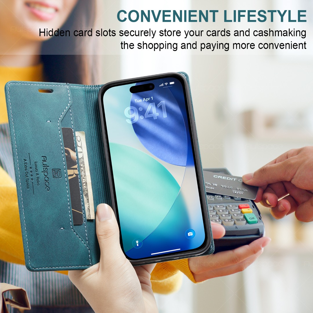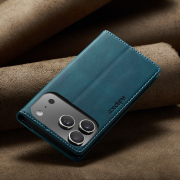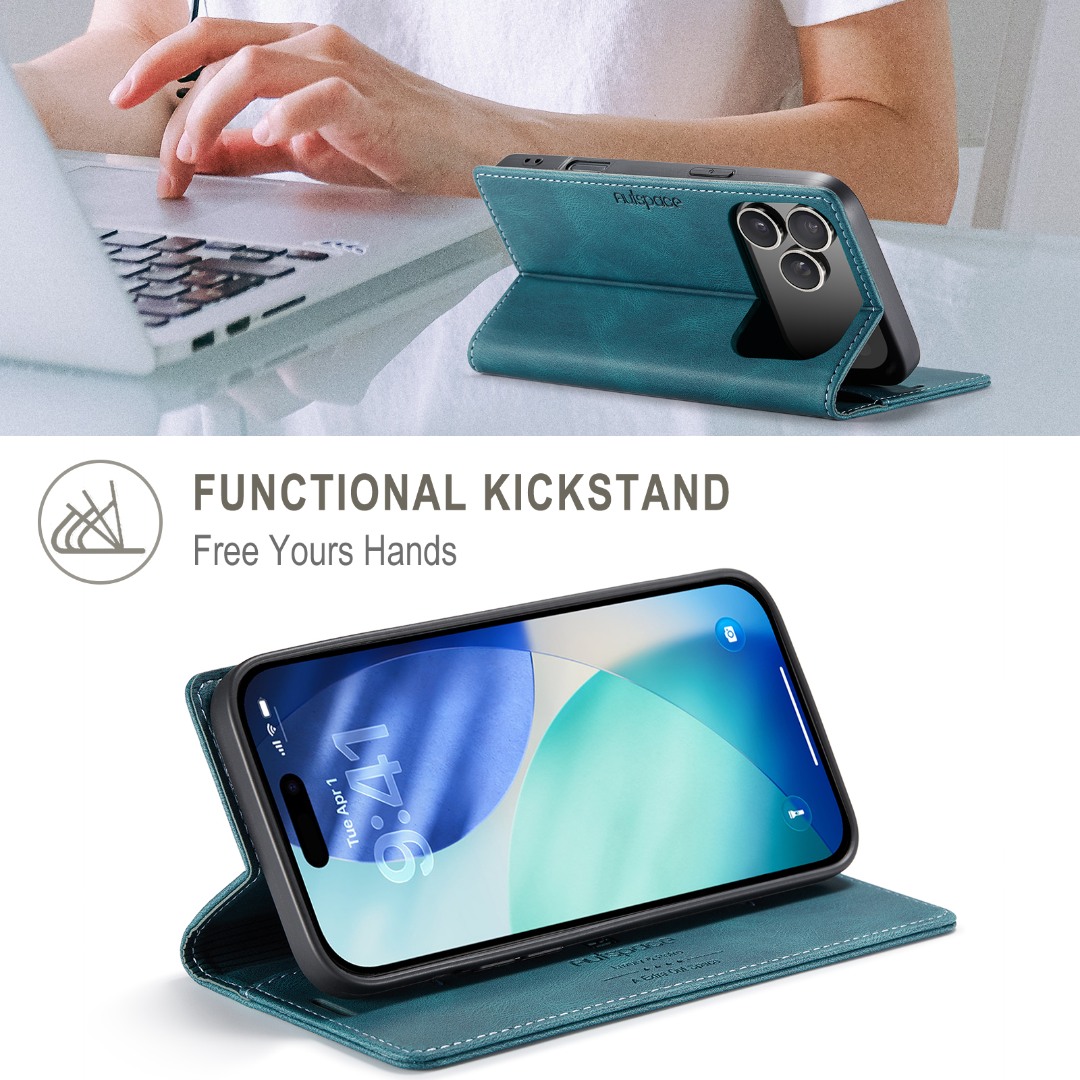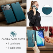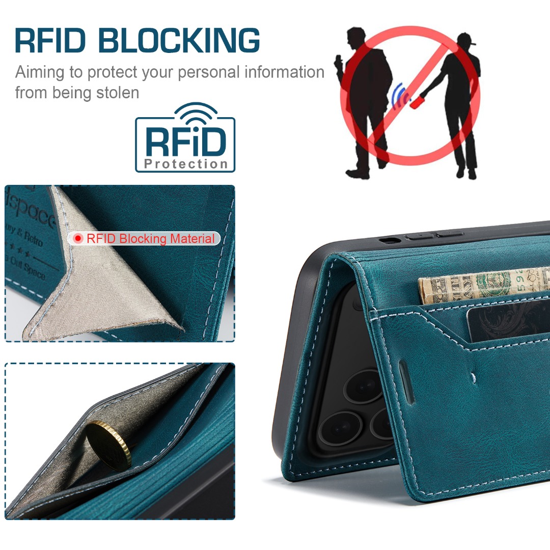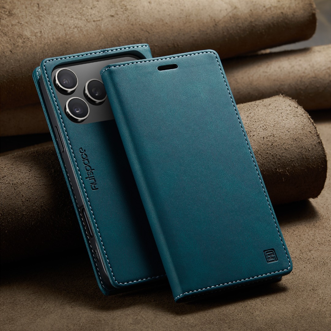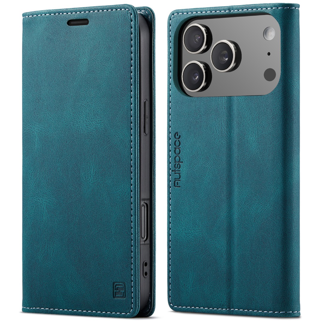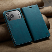 Husa pentru iPhone 17 Pro Max - Slim, piele moale cu textura aderenta tip piele intoarsa, portofel cu protectie RFID, functie stand pentru vizionare video, inchidere magnetica, CaseMe Retro,, Albastru - Ocean Teal