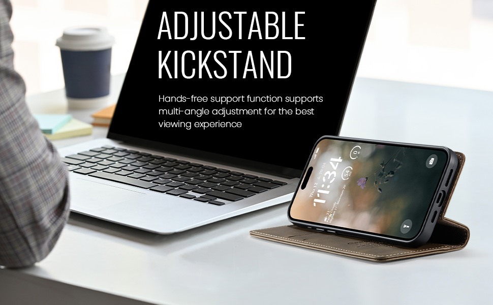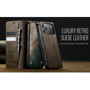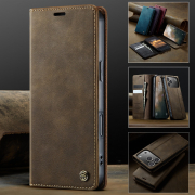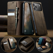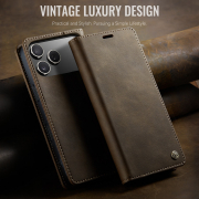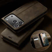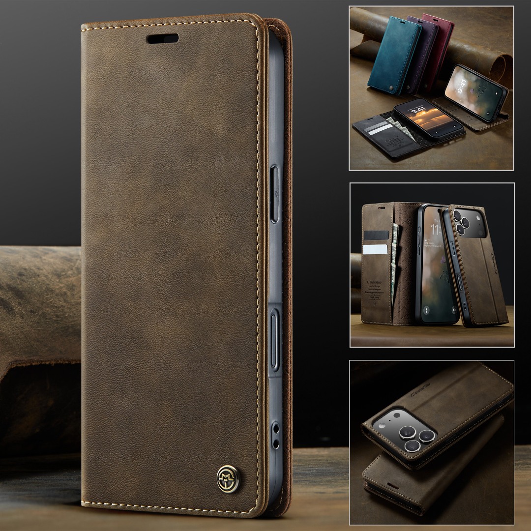 Husa pentru iPhone 17 Pro Max - Slim tip portofel, cu stand si inchidere magnetica – textura neteda, aderenta sigura, usor de curatat, design curat si minimalist, CaseMe, Brun clasic