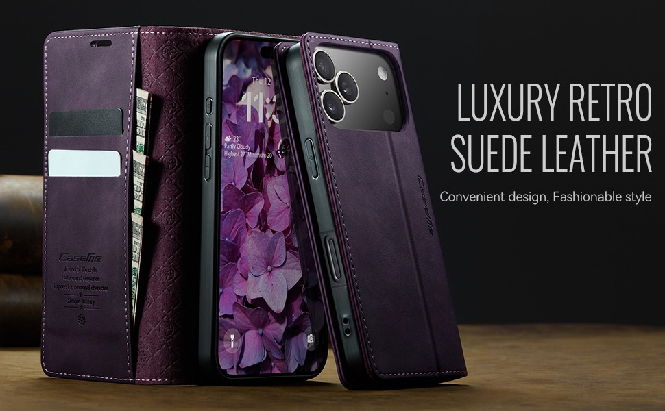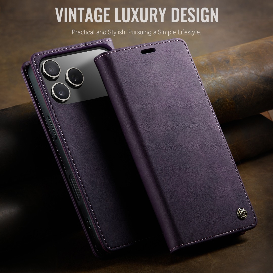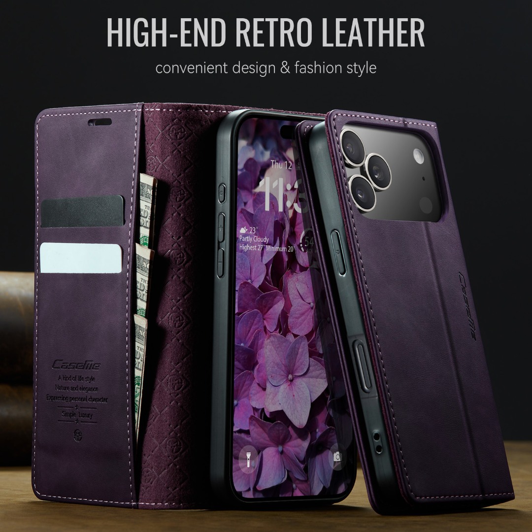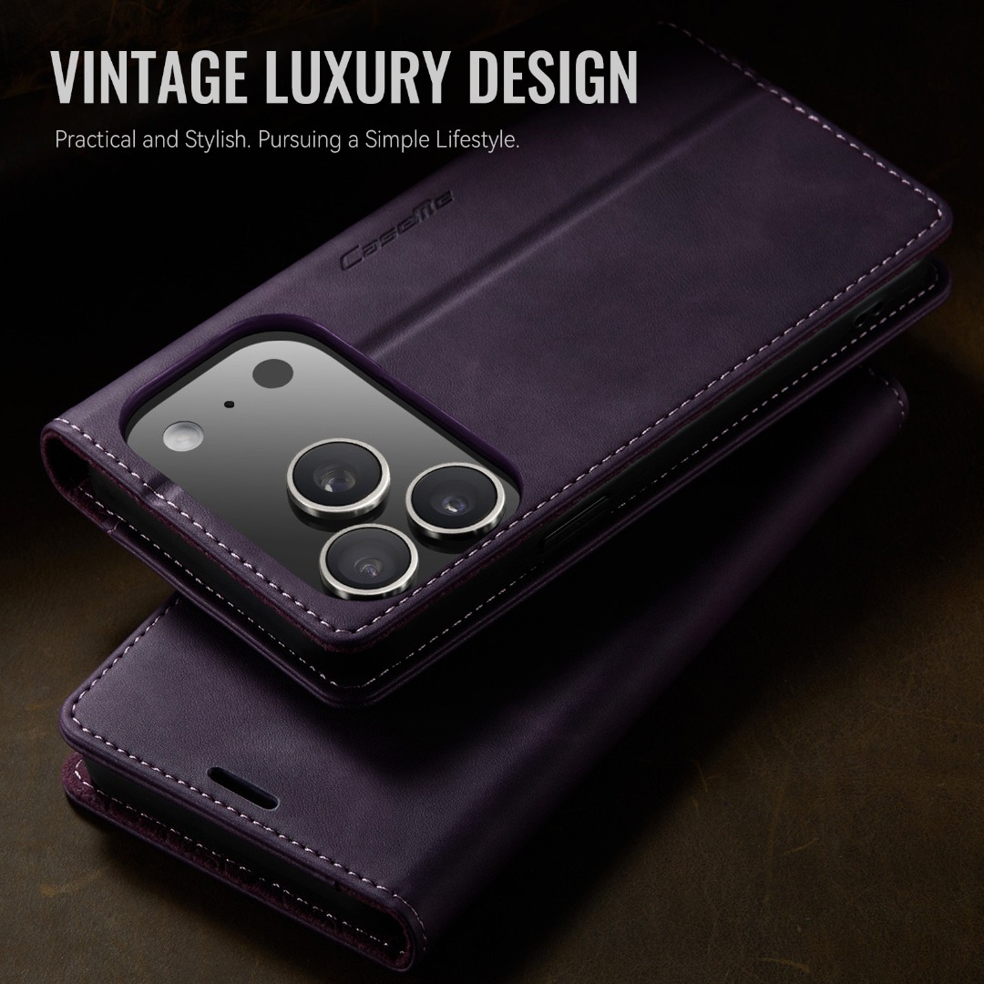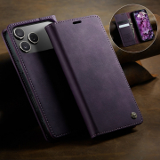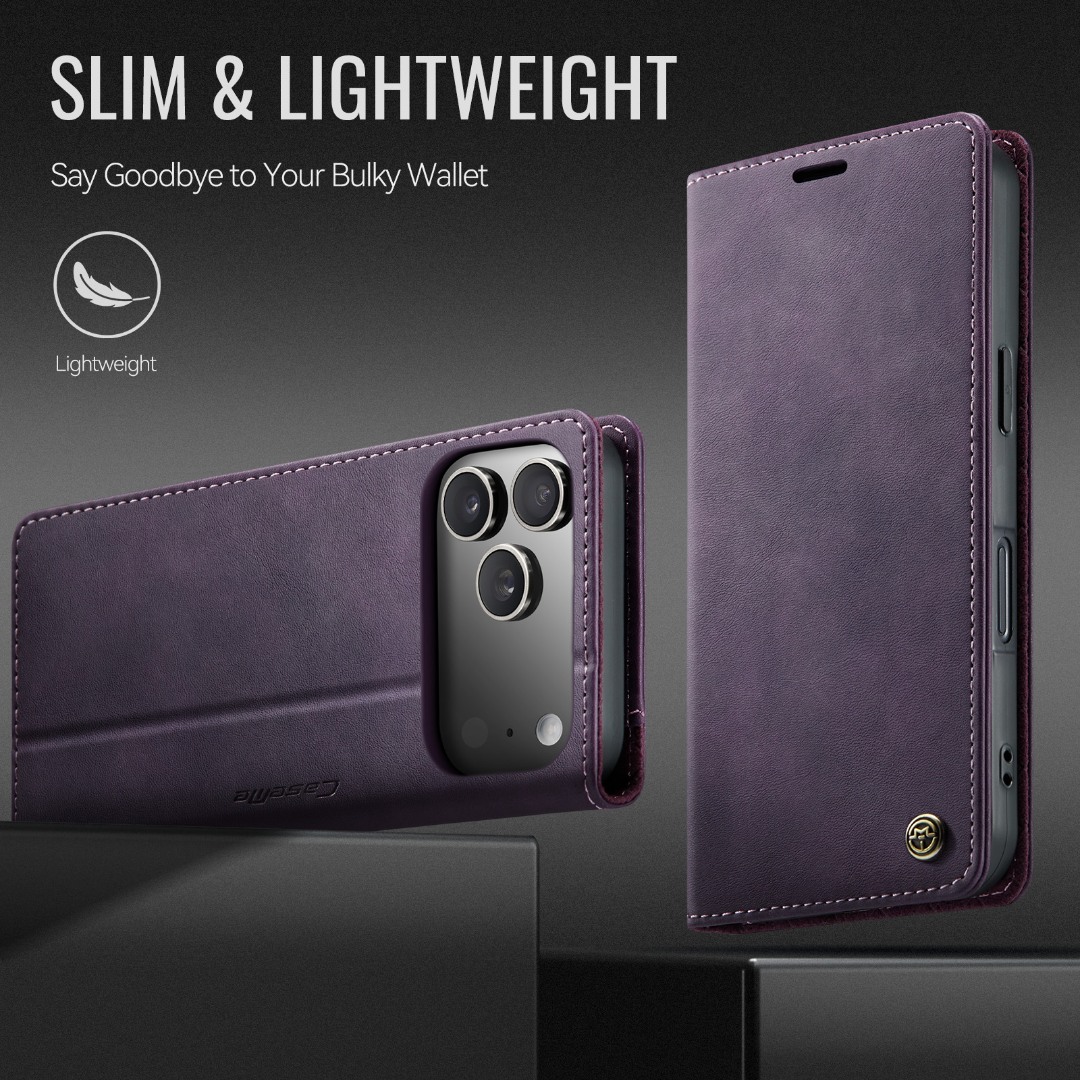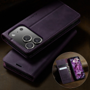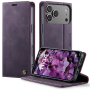 Husa pentru iPhone 17 Pro Max - Slim tip portofel, cu stand si inchidere magnetica – textura neteda, aderenta sigura, usor de curatat, design curat si minimalist, CaseMe, Violet regal