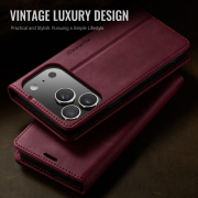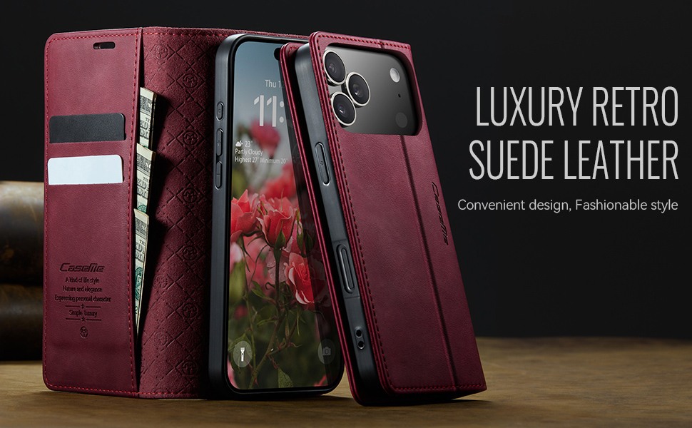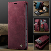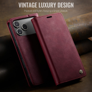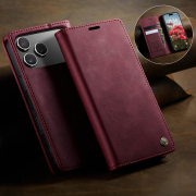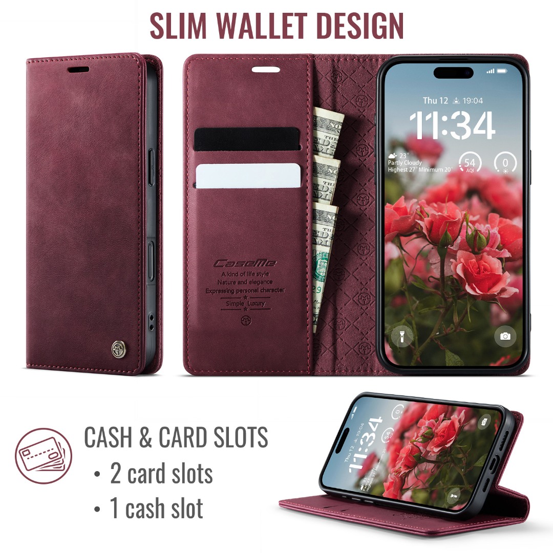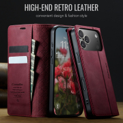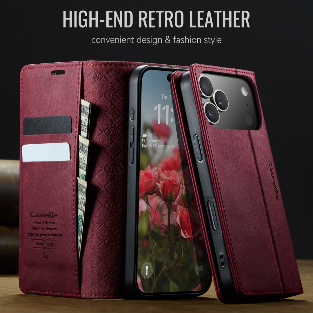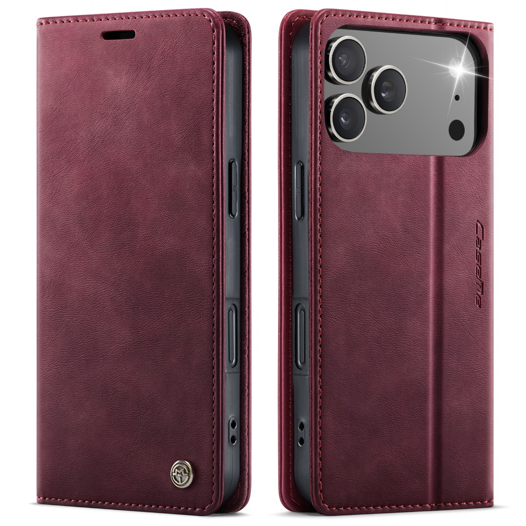 Husa pentru iPhone 17 Pro Max - Slim tip portofel, cu stand si inchidere magnetica – textura neteda, aderenta sigura, usor de curatat, design curat si minimalist, CaseMe, Rosu burgundy