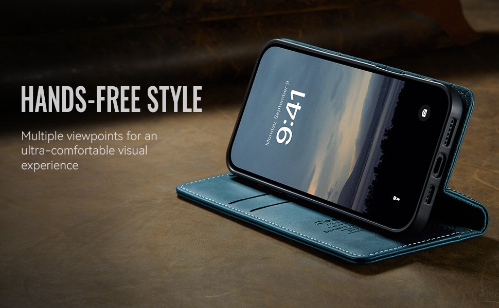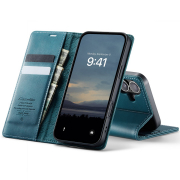 Husa pentru iPhone 17 - Slim tip portofel, cu stand si inchidere magnetica – textura neteda, aderenta sigura, usor de curatat, design curat si minimalist, CaseMe, Teal - Albastru verzui