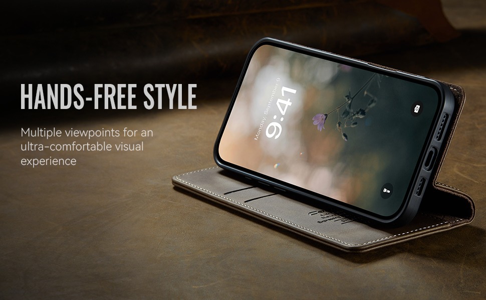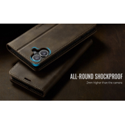 Husa pentru iPhone 17 - Slim tip portofel, cu stand si inchidere magnetica – textura neteda, aderenta sigura, usor de curatat, design curat si minimalist, CaseMe, Brun clasic