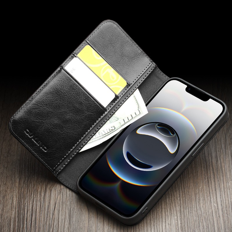 Husa Qialino Classic Wallet compatibila cu iPhone 17e imbina protectia oferita de pielea naturala premium cu functionalitatea unui portofel complet – carduri, bancnote si functie stand, toate intr-un singur accesoriu elegant.