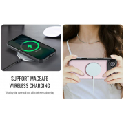 - compatibila cu MagSafe: Magnetii integrati permit aliniere perfecta cu accesoriile MagSafe – incarcatoare wireless, suporturi auto si portofele magnetice. Incarcarea wireless functioneaza fara a scoate husa
