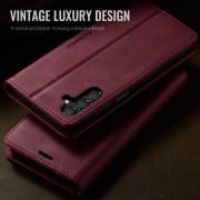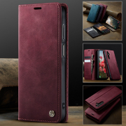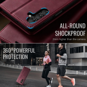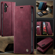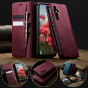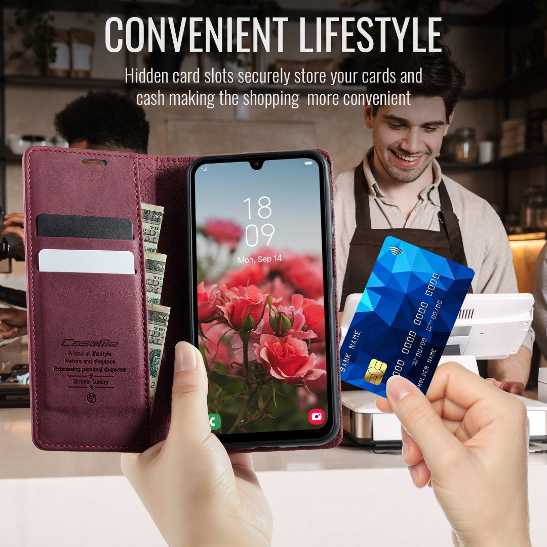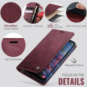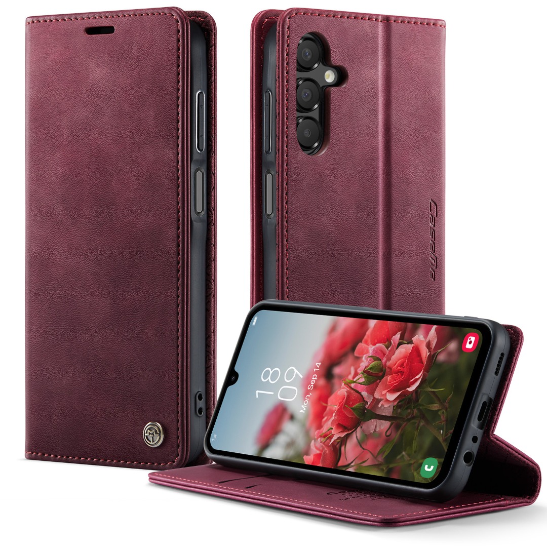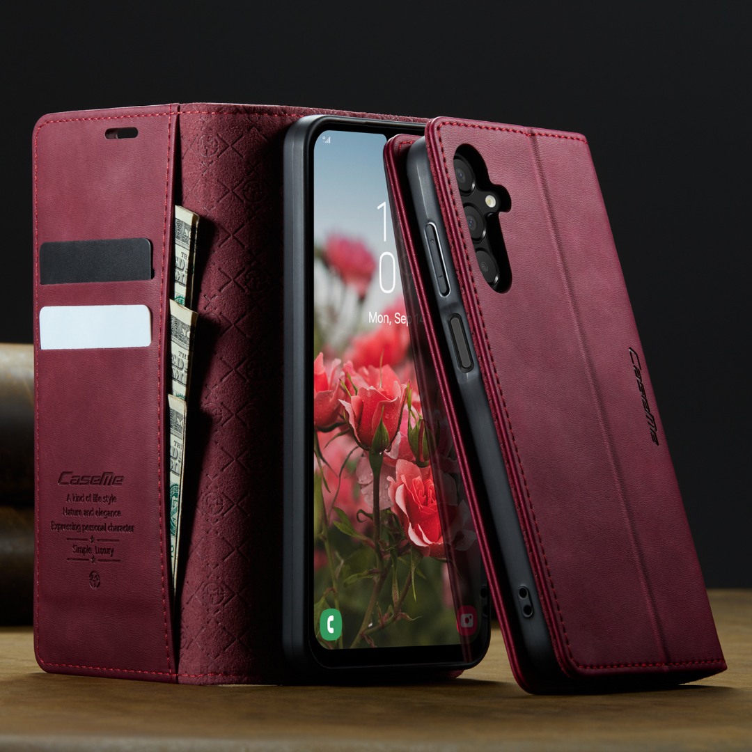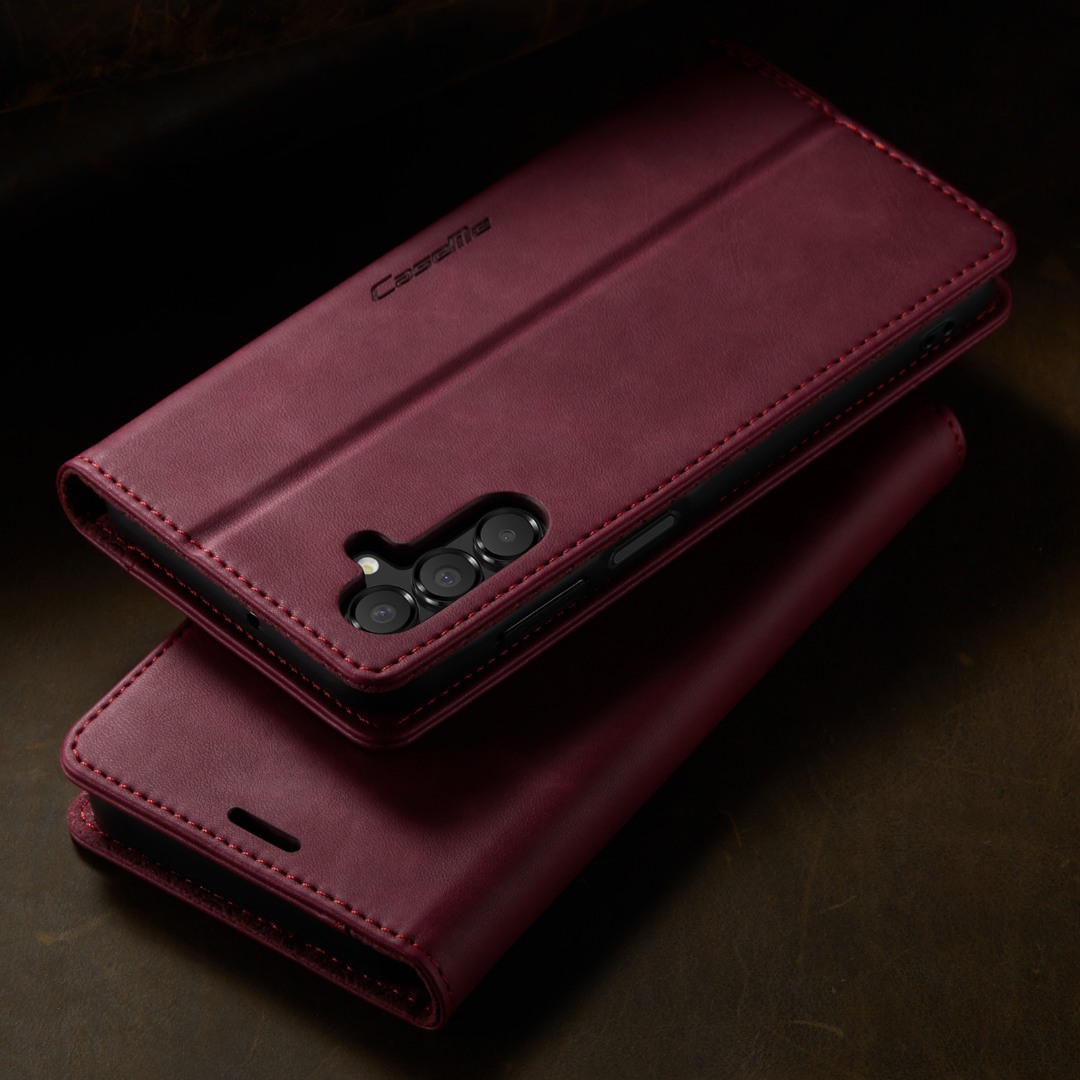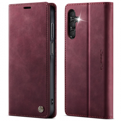 Husa pentru Samsung Galaxy A15 - Slim tip portofel, cu stand si inchidere magnetica – textura neteda, aderenta sigura, usor de curatat, design curat si minimalist, CaseMe, Rosu burgundy