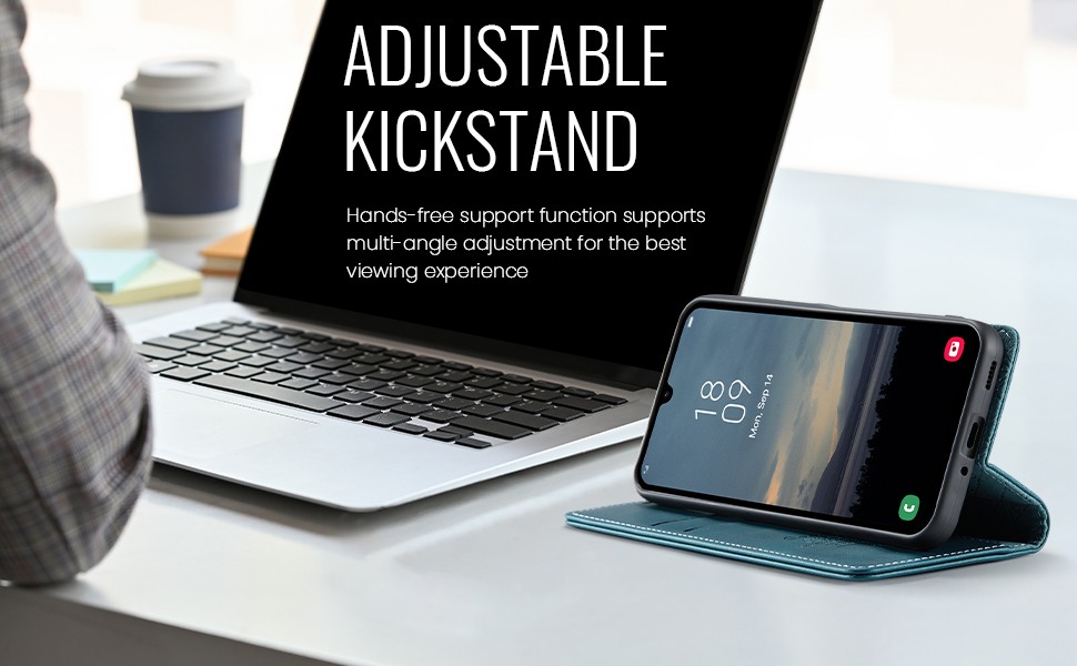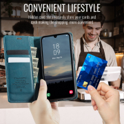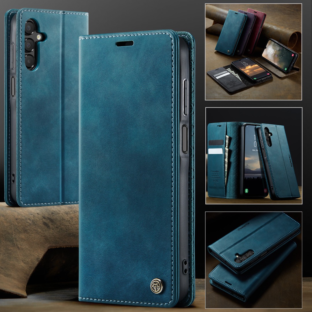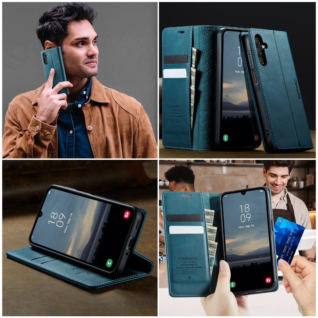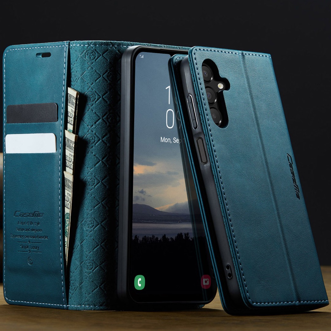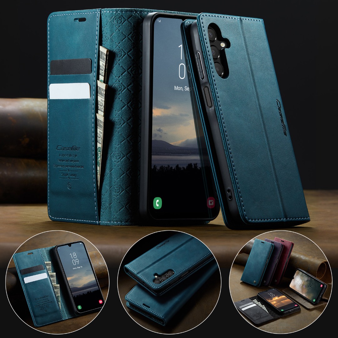 Husa pentru Samsung Galaxy A16 - Slim tip portofel, cu stand si inchidere magnetica – textura neteda, aderenta sigura, usor de curatat, design curat si minimalist, CaseMe, Teal - Albastru verzui