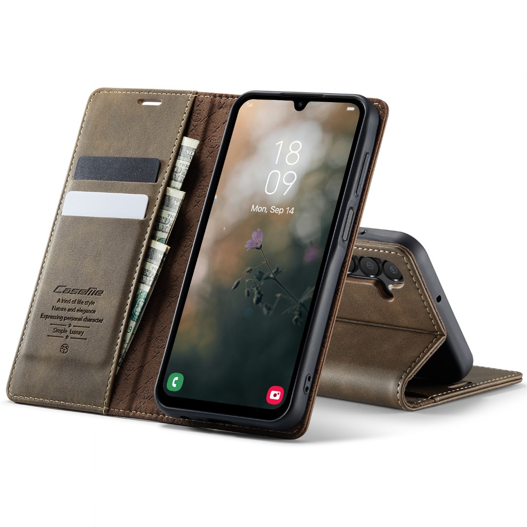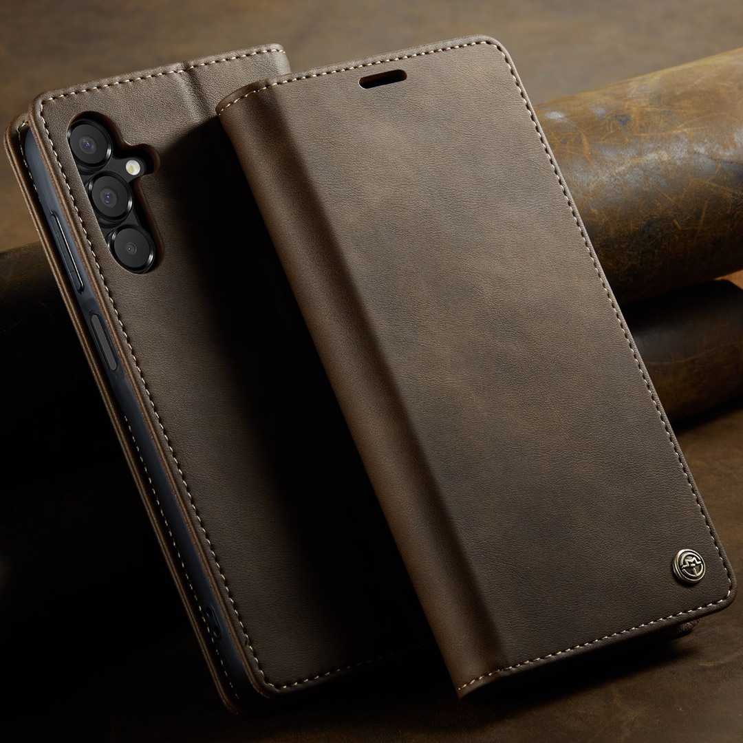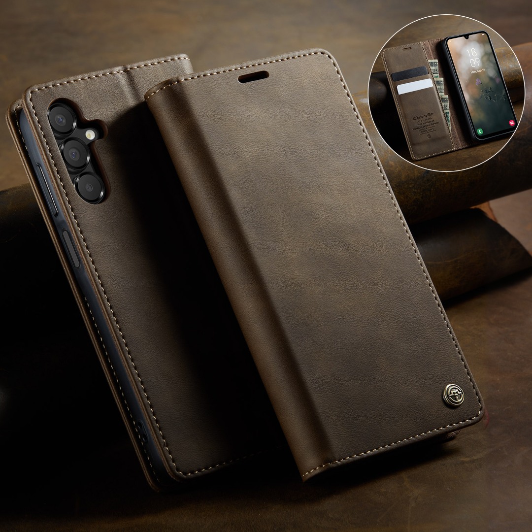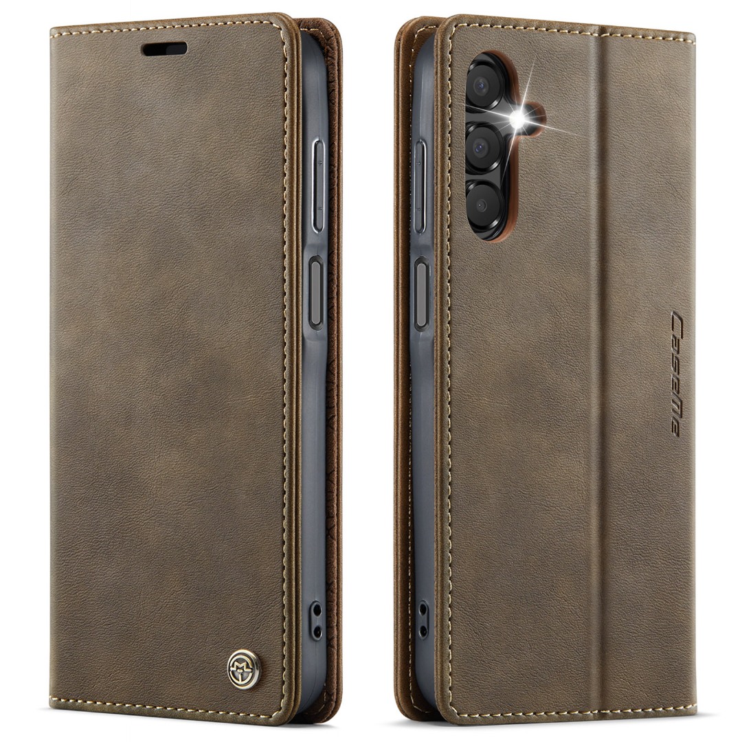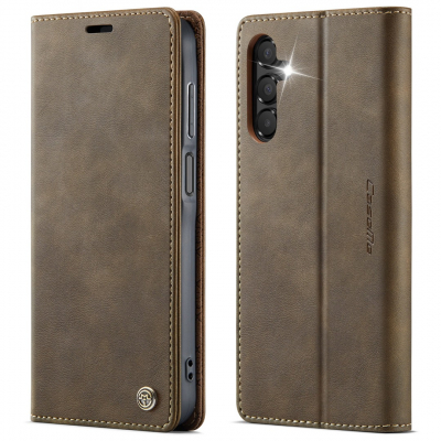 Husa pentru Samsung Galaxy A16 - Slim tip portofel, cu stand si inchidere magnetica – textura neteda, aderenta sigura, usor de curatat, design curat si minimalist, CaseMe, Brun clasic