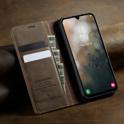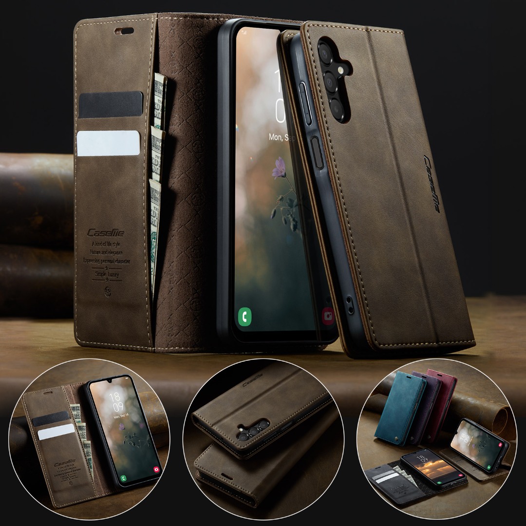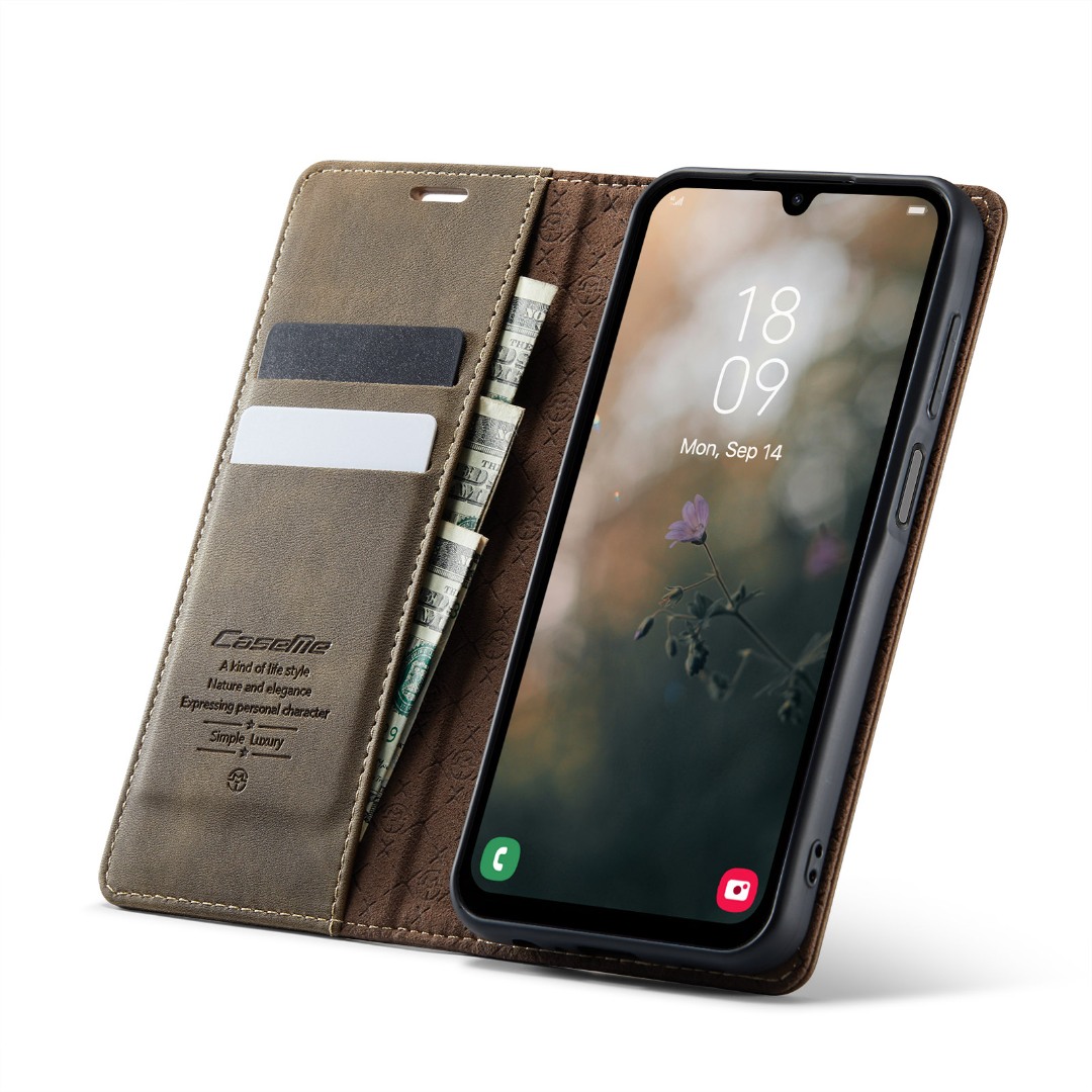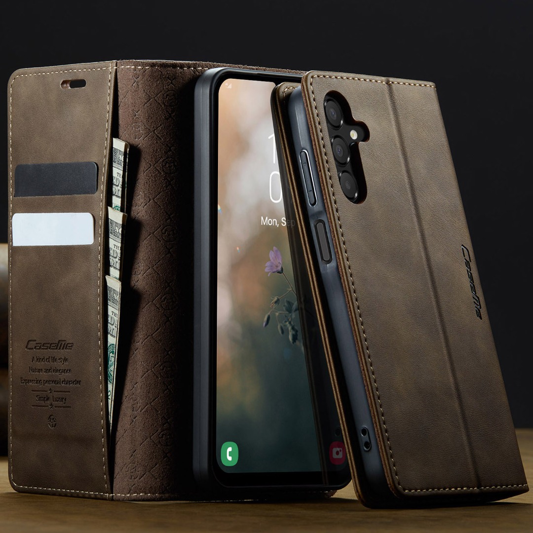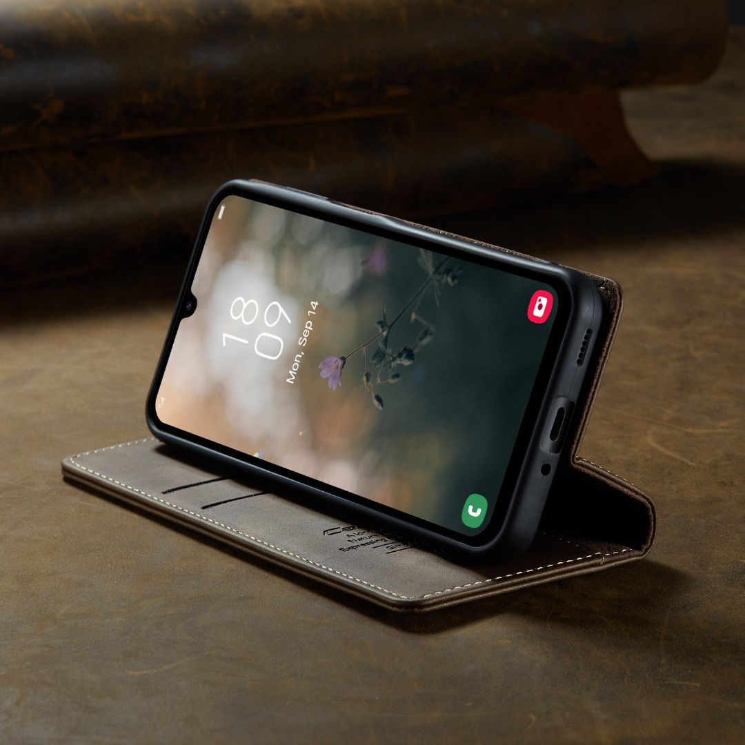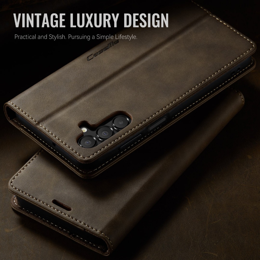 Husa pentru Samsung Galaxy A16 - Slim tip portofel, cu stand si inchidere magnetica – textura neteda, aderenta sigura, usor de curatat, design curat si minimalist, CaseMe, Brun clasic
