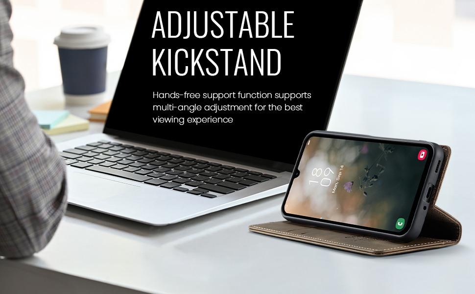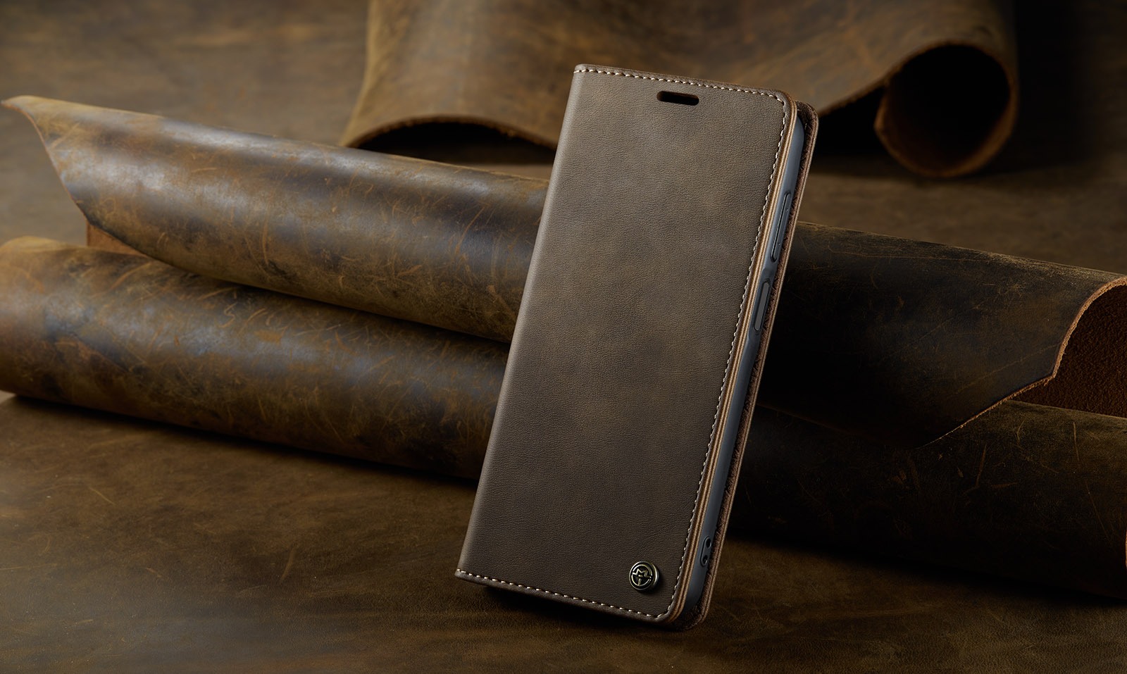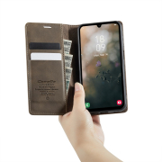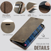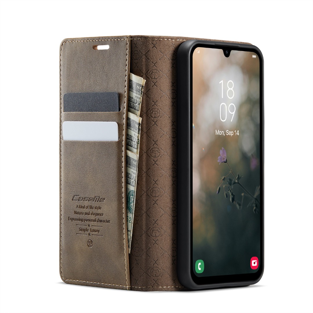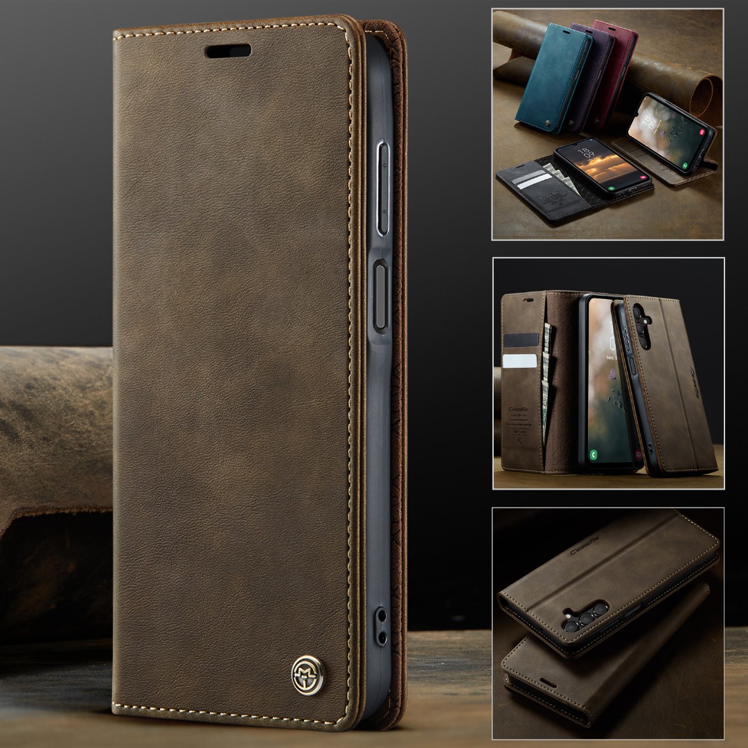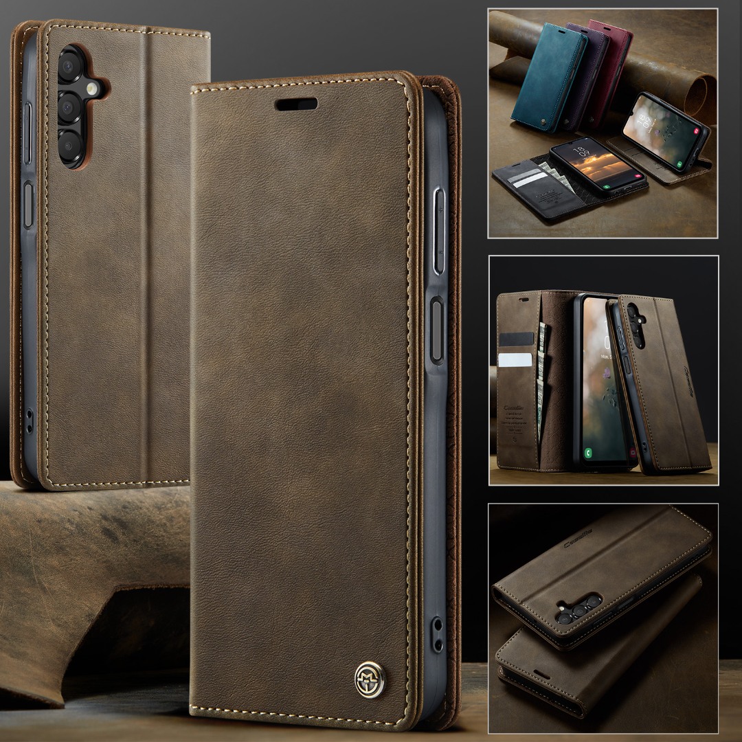 Husa pentru Samsung Galaxy A16 - Slim tip portofel, cu stand si inchidere magnetica – textura neteda, aderenta sigura, usor de curatat, design curat si minimalist, CaseMe, Brun clasic