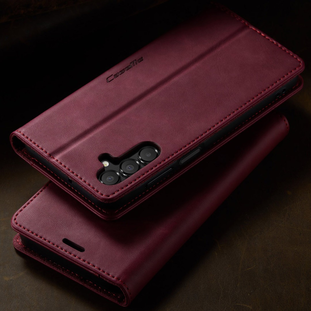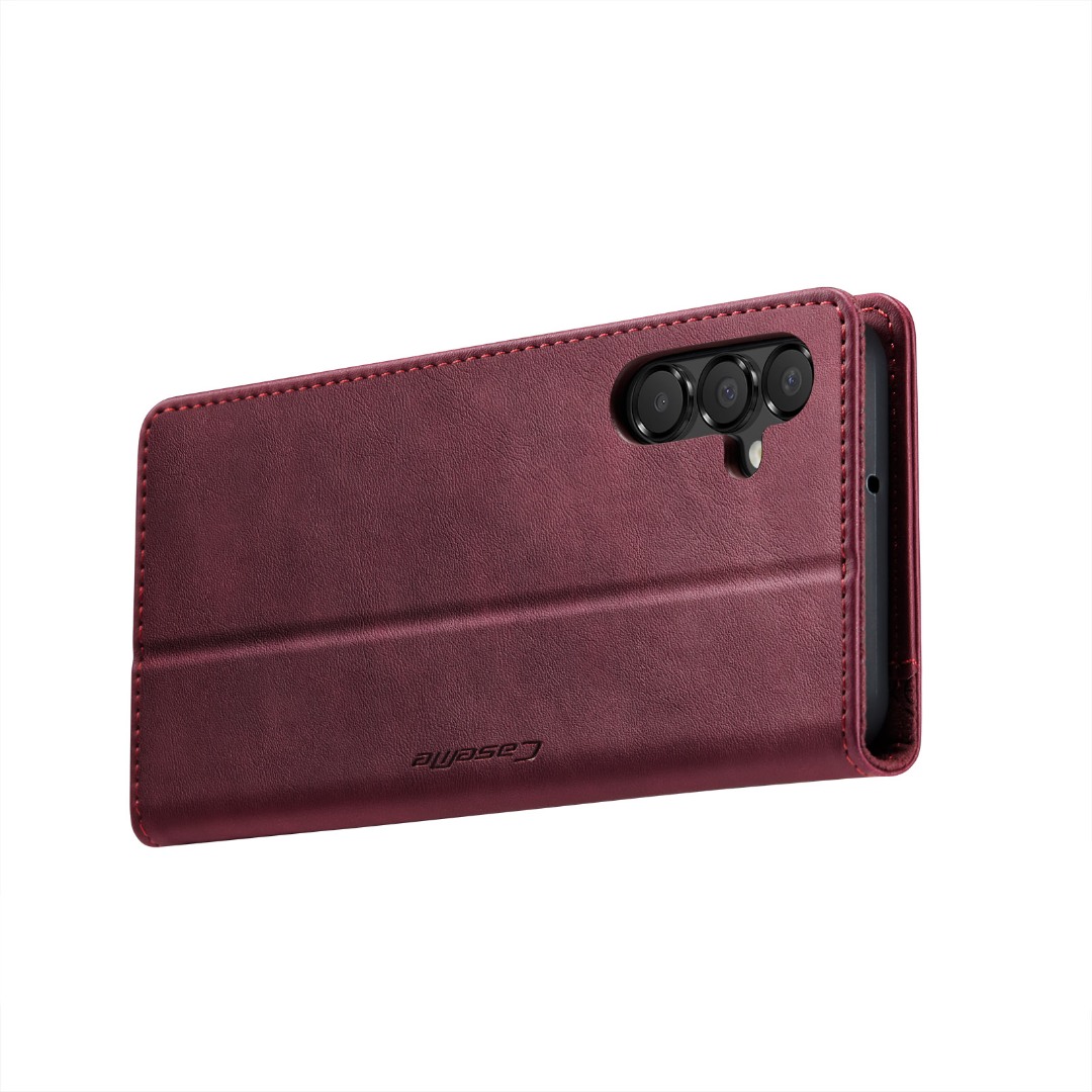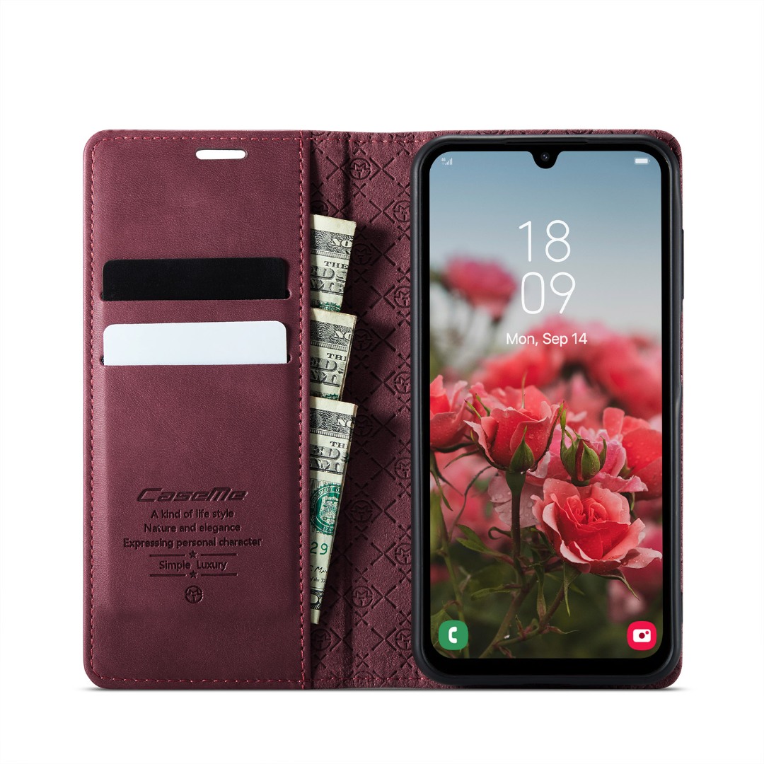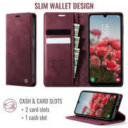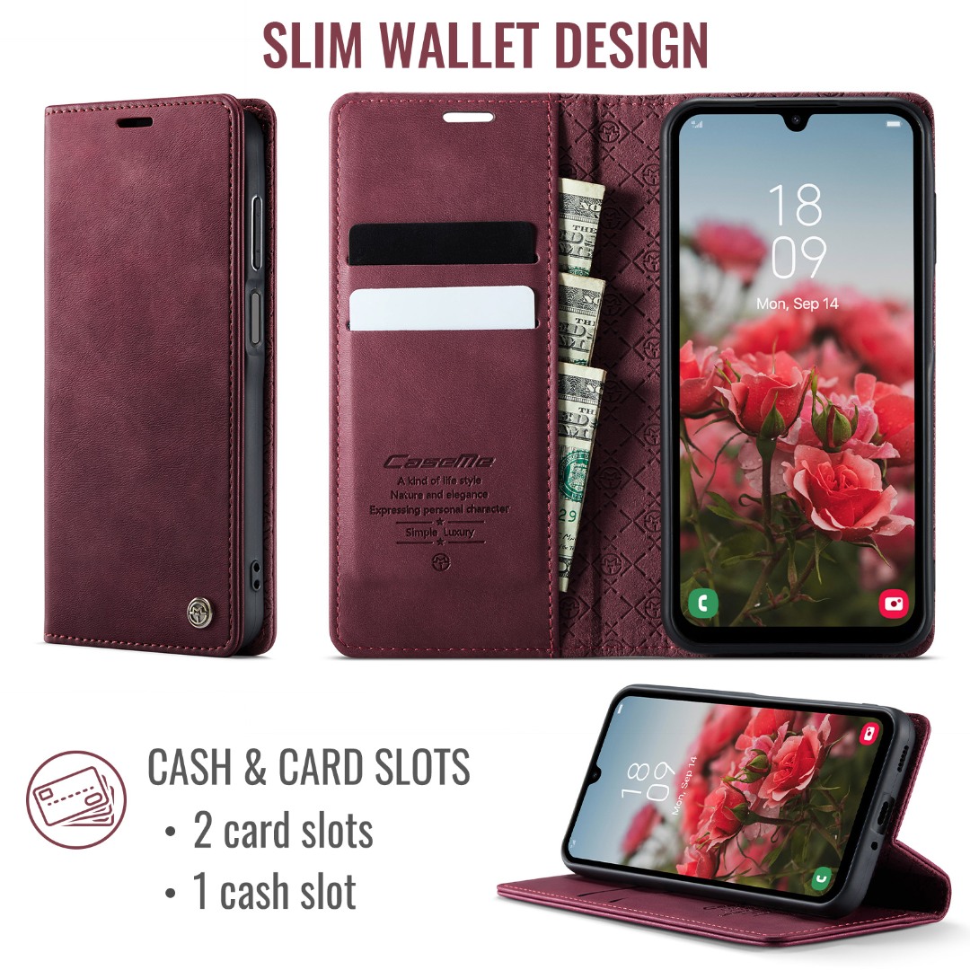 Husa pentru Samsung Galaxy A16 - Slim tip portofel, cu stand si inchidere magnetica – textura neteda, aderenta sigura, usor de curatat, design curat si minimalist, CaseMe, Rosu burgundy