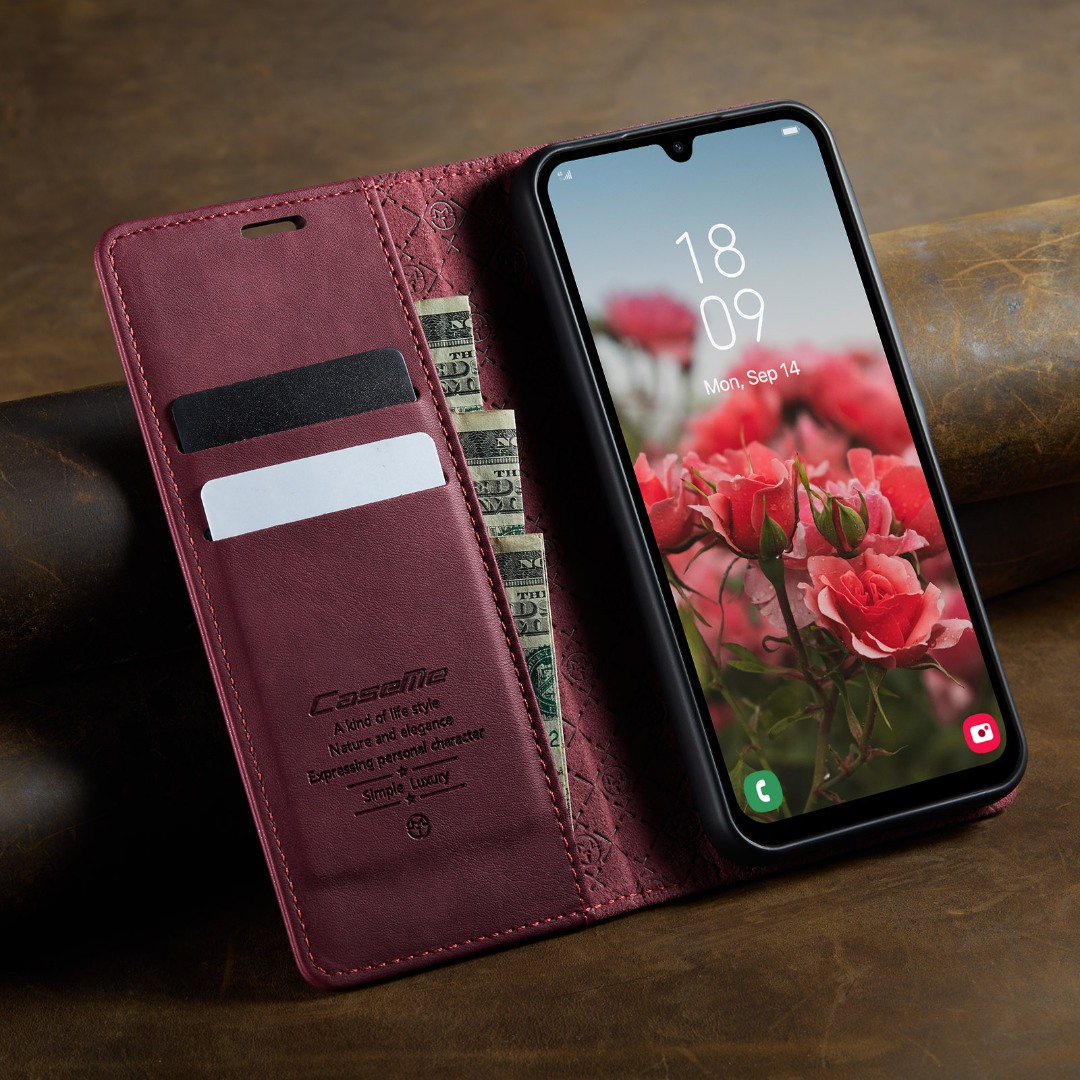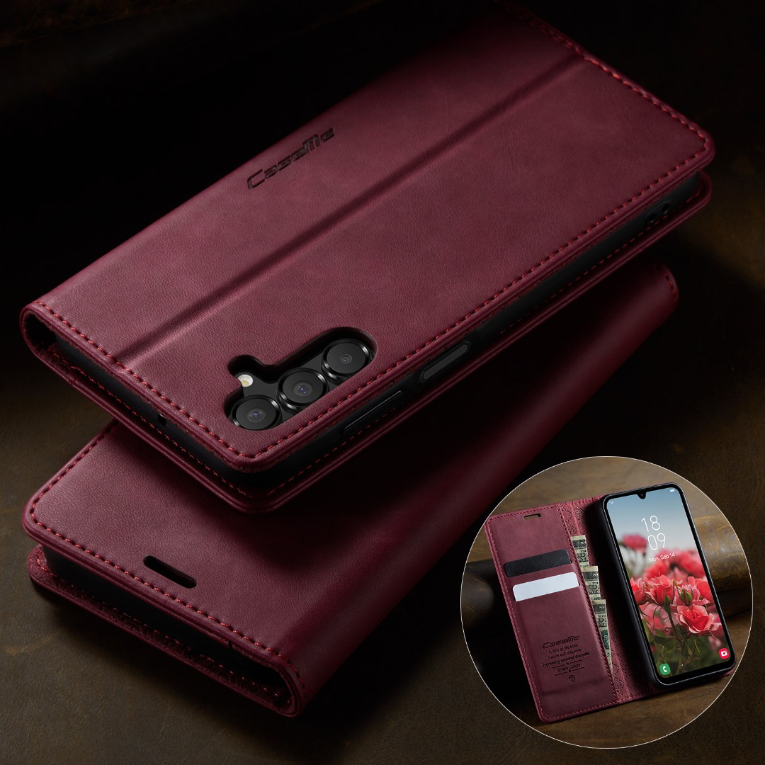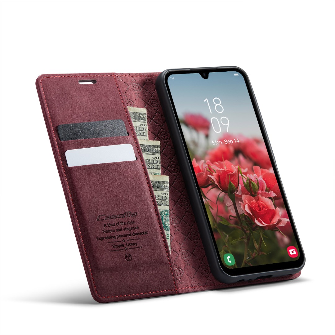 Husa pentru Samsung Galaxy A16 - Slim tip portofel, cu stand si inchidere magnetica – textura neteda, aderenta sigura, usor de curatat, design curat si minimalist, CaseMe, Rosu burgundy