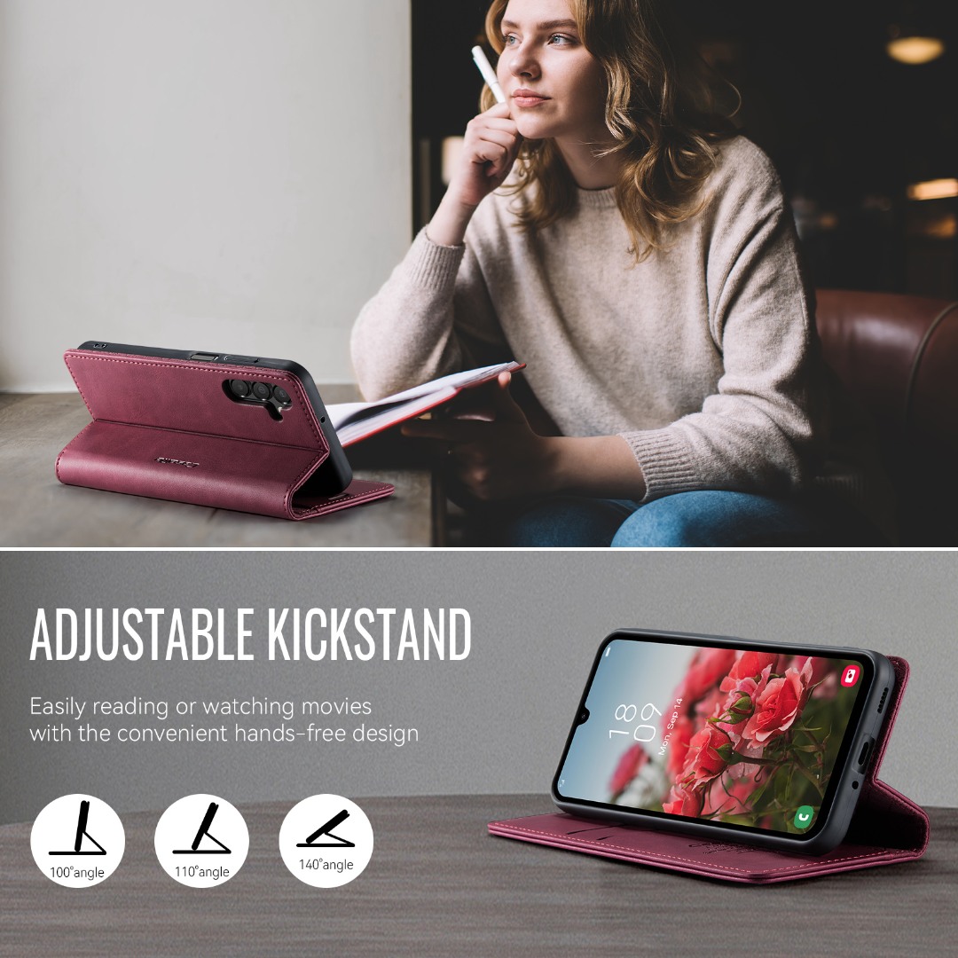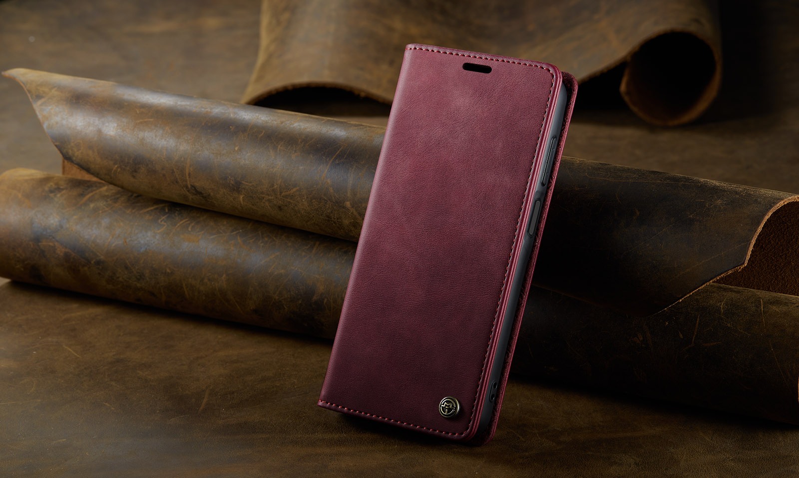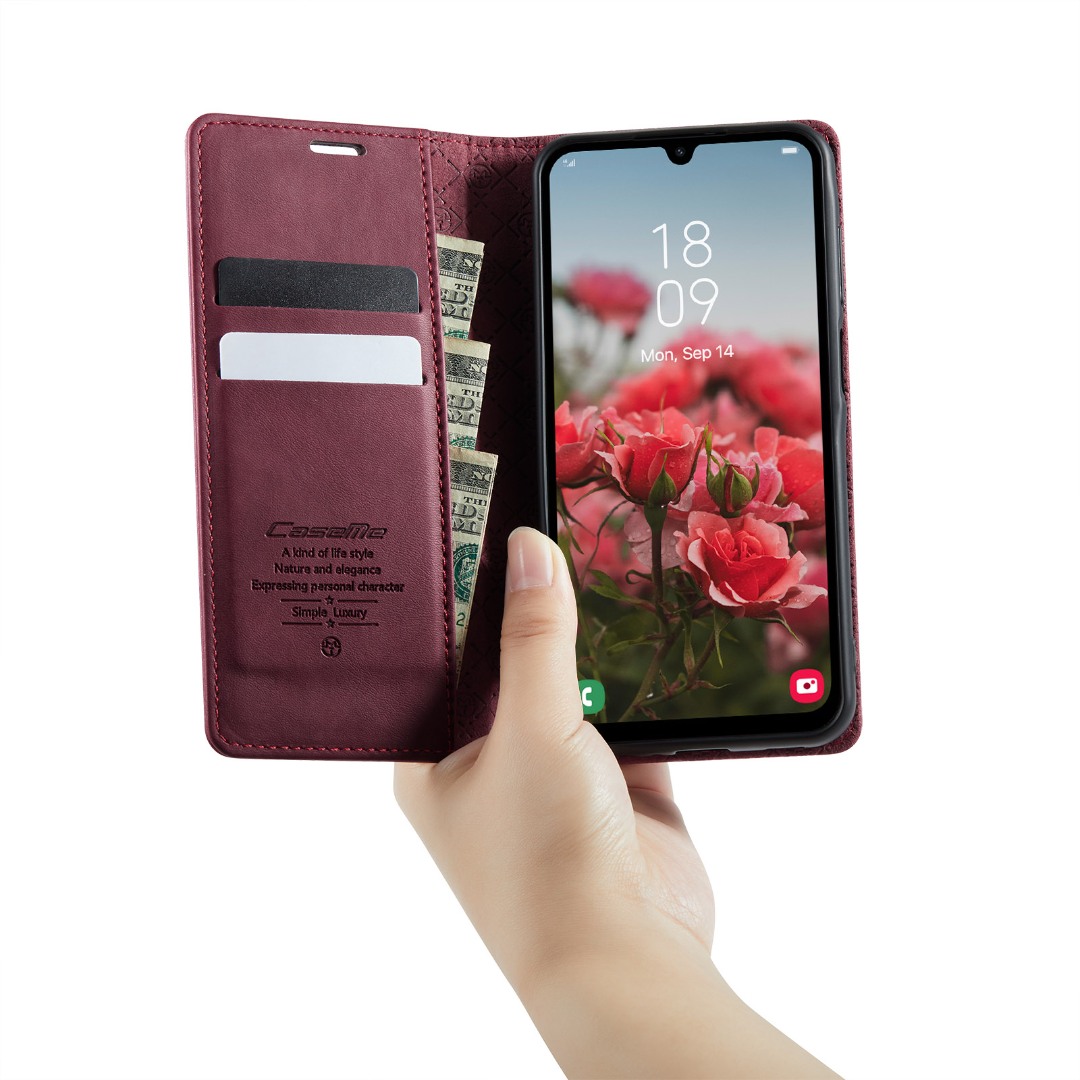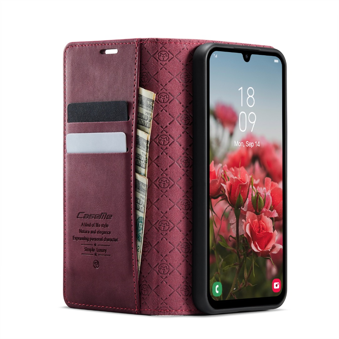 Husa pentru Samsung Galaxy A16 - Slim tip portofel, cu stand si inchidere magnetica – textura neteda, aderenta sigura, usor de curatat, design curat si minimalist, CaseMe, Rosu burgundy