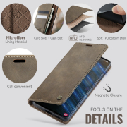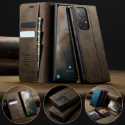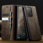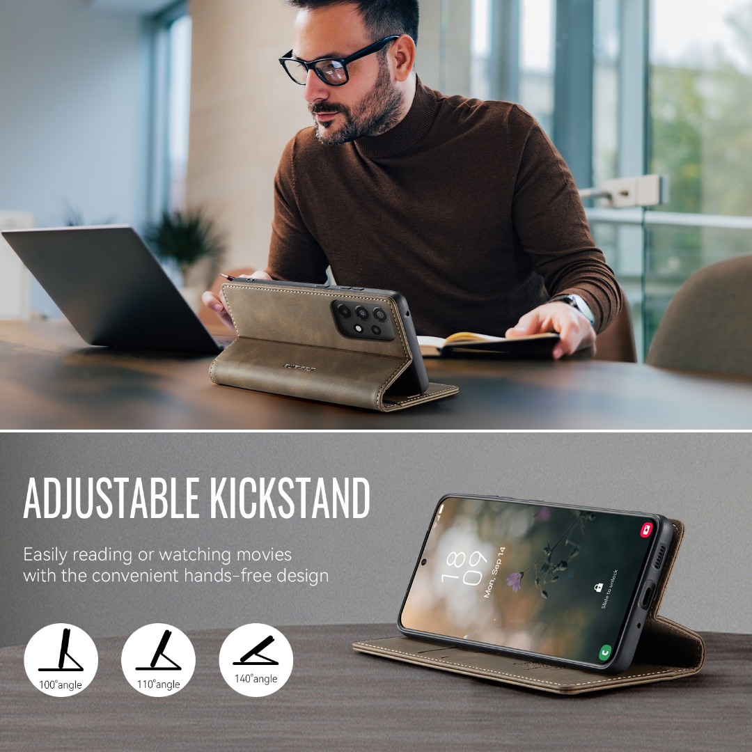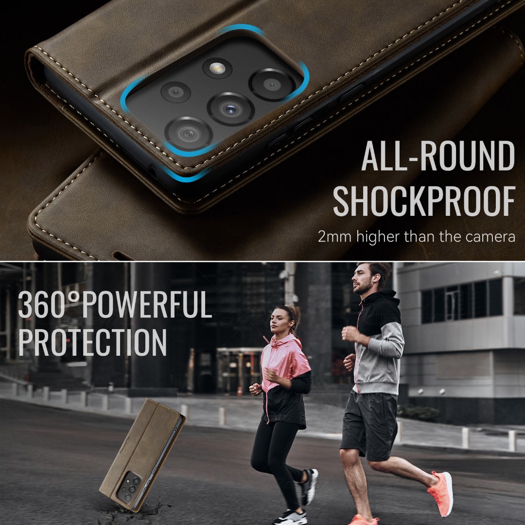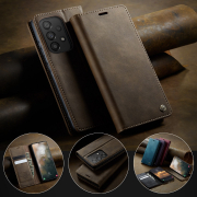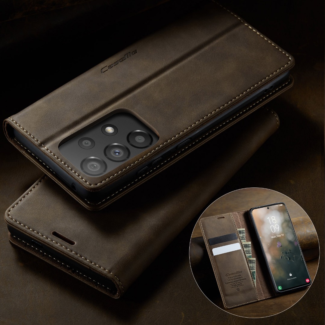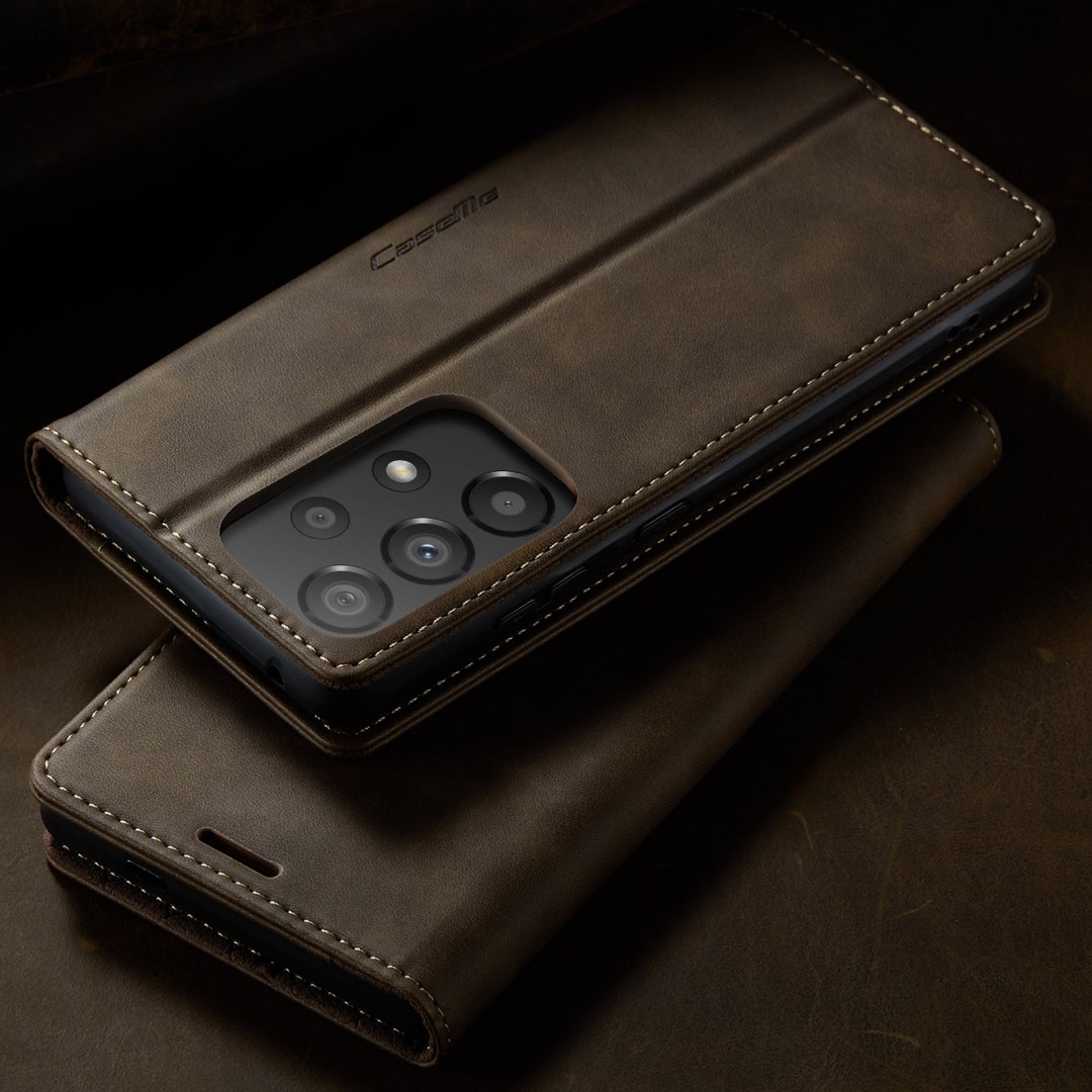 Husa pentru Samsung Galaxy A33 - Slim tip portofel, cu stand si inchidere magnetica – textura neteda, aderenta sigura, usor de curatat, design curat si minimalist, CaseMe, Brun clasic