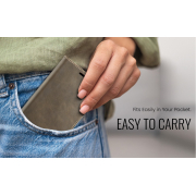 Include 2 sloturi pentru carduri si un compartiment separat pentru bancnote – ideal pentru cei care vor sa renunte la portofelul clasic.