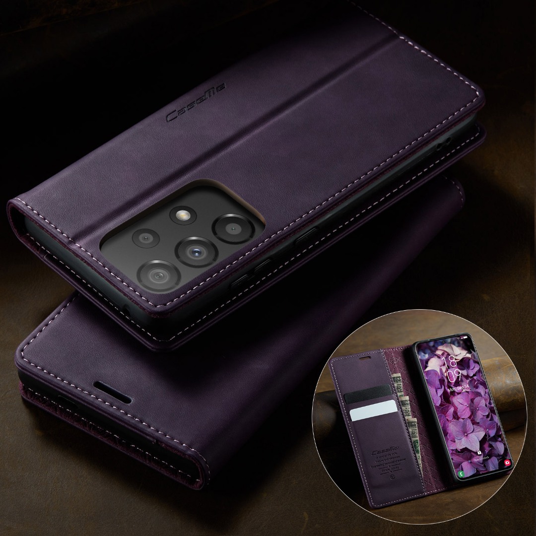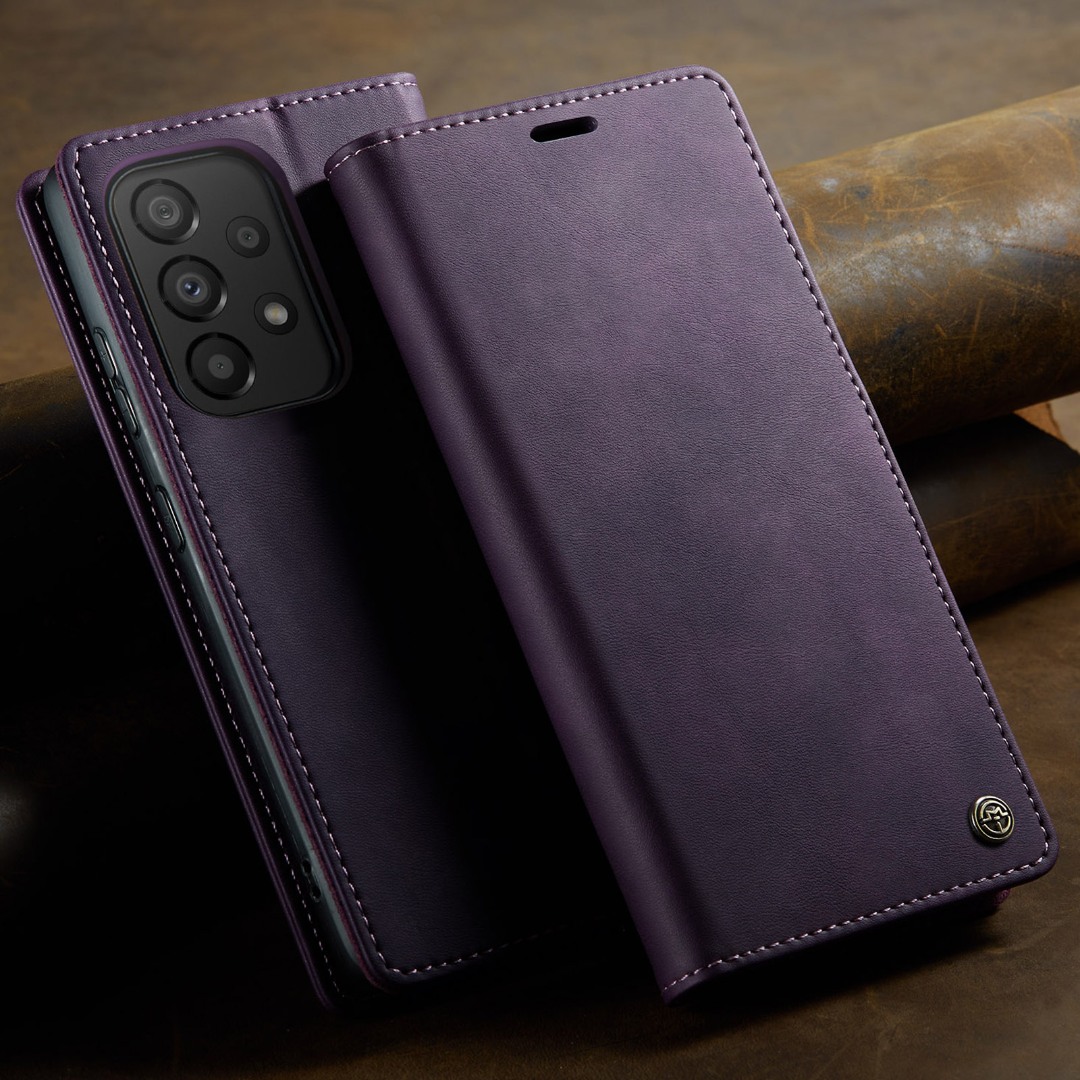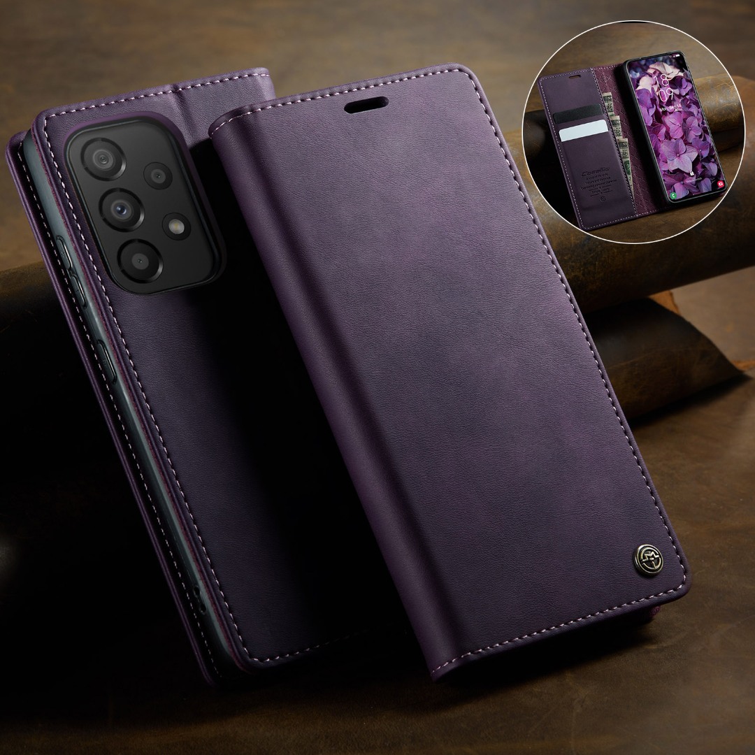 Husa pentru Samsung Galaxy A33 - Slim tip portofel, cu stand si inchidere magnetica – textura neteda, aderenta sigura, usor de curatat, design curat si minimalist, CaseMe, Violet regal