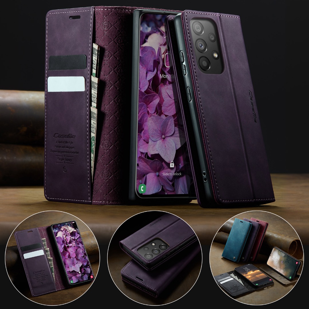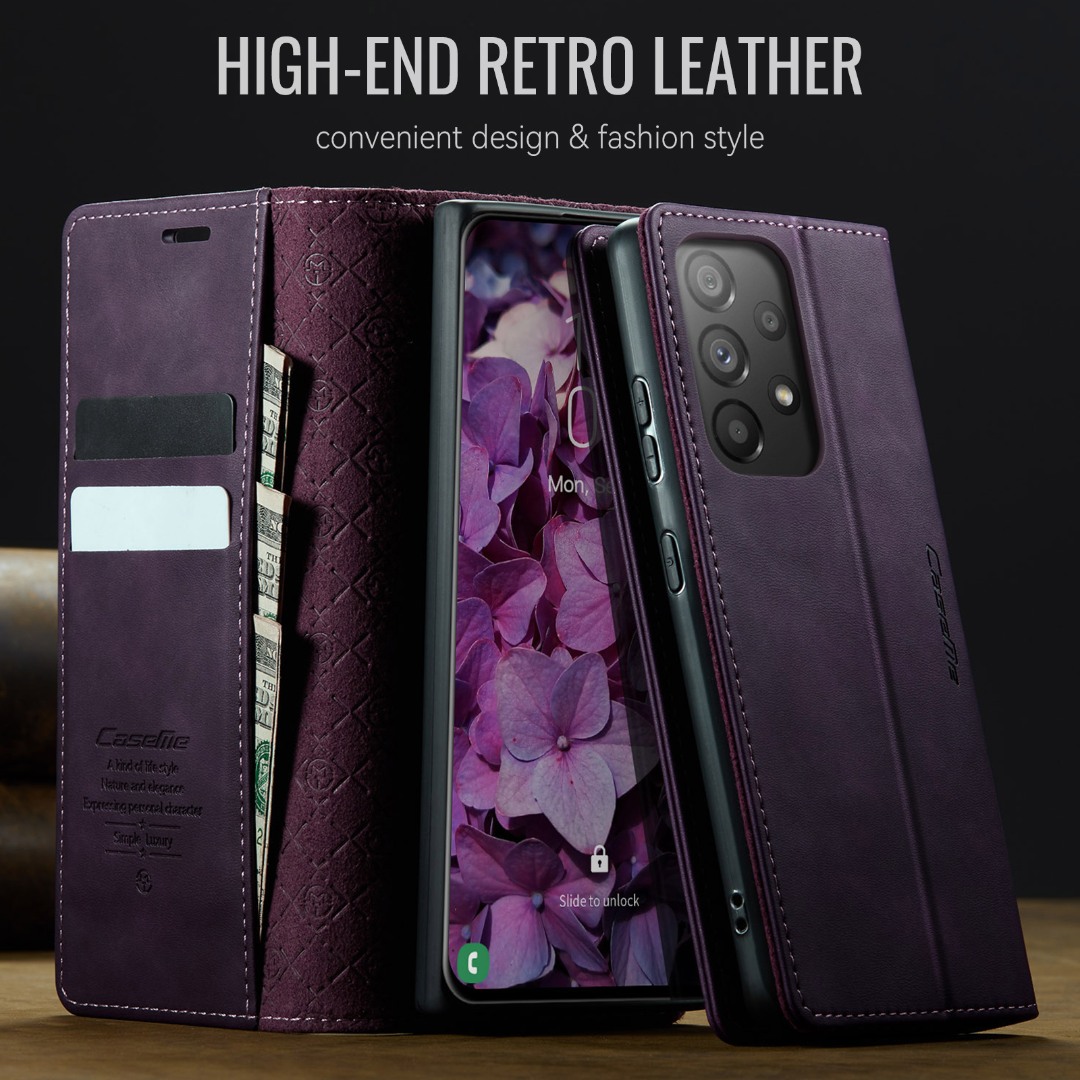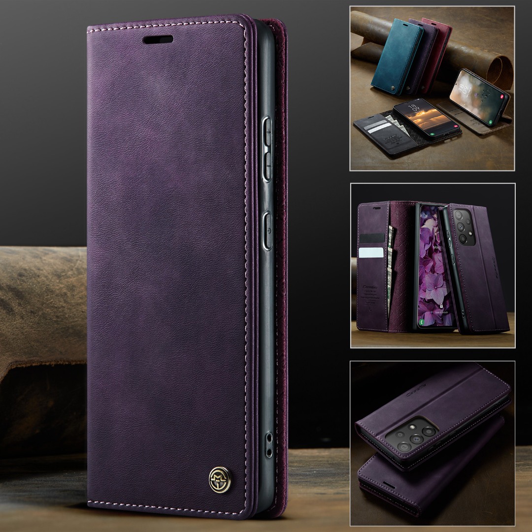Husa pentru Samsung Galaxy A33 - Slim tip portofel, cu stand si inchidere magnetica – textura neteda, aderenta sigura, usor de curatat, design curat si minimalist, CaseMe, Violet regal