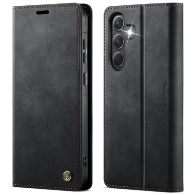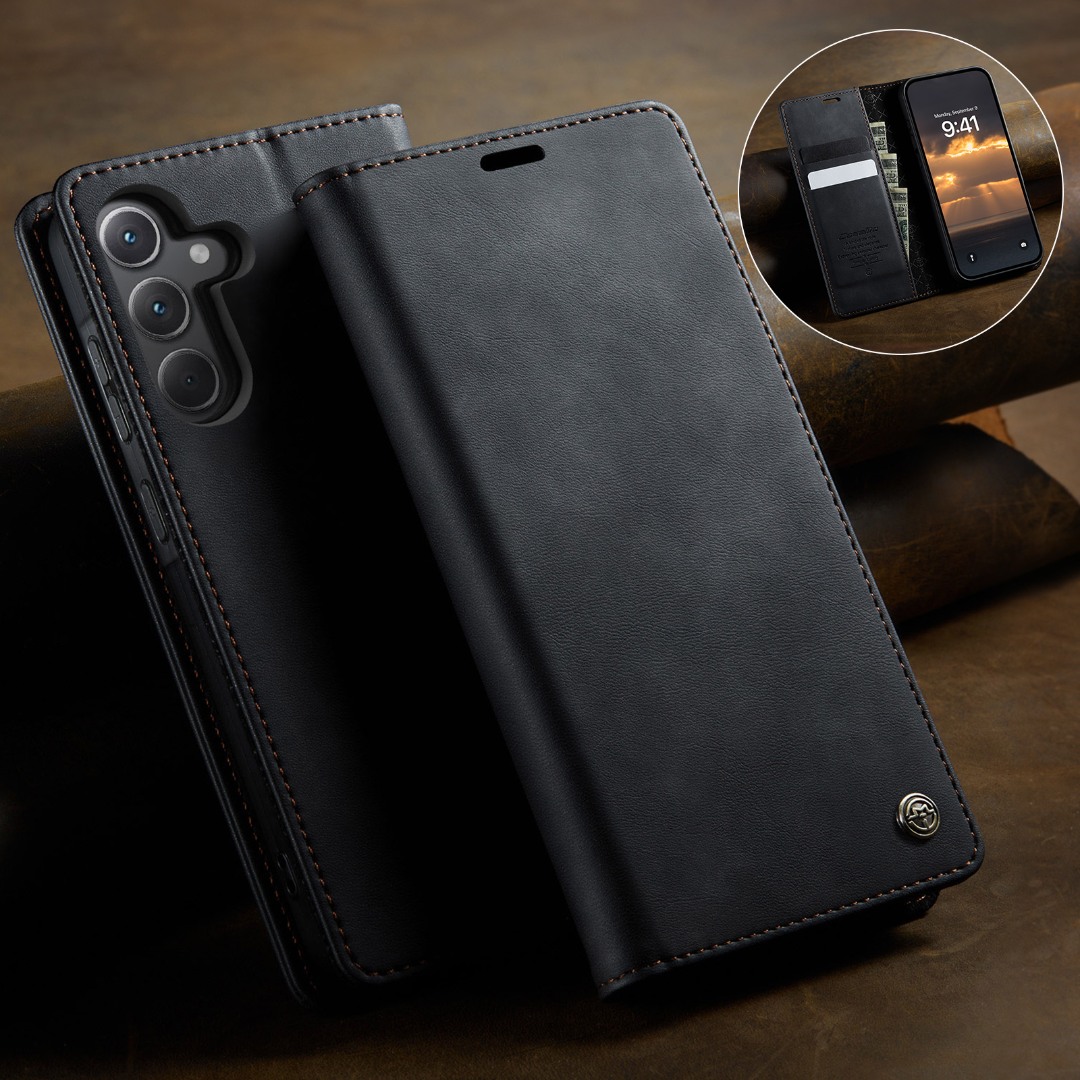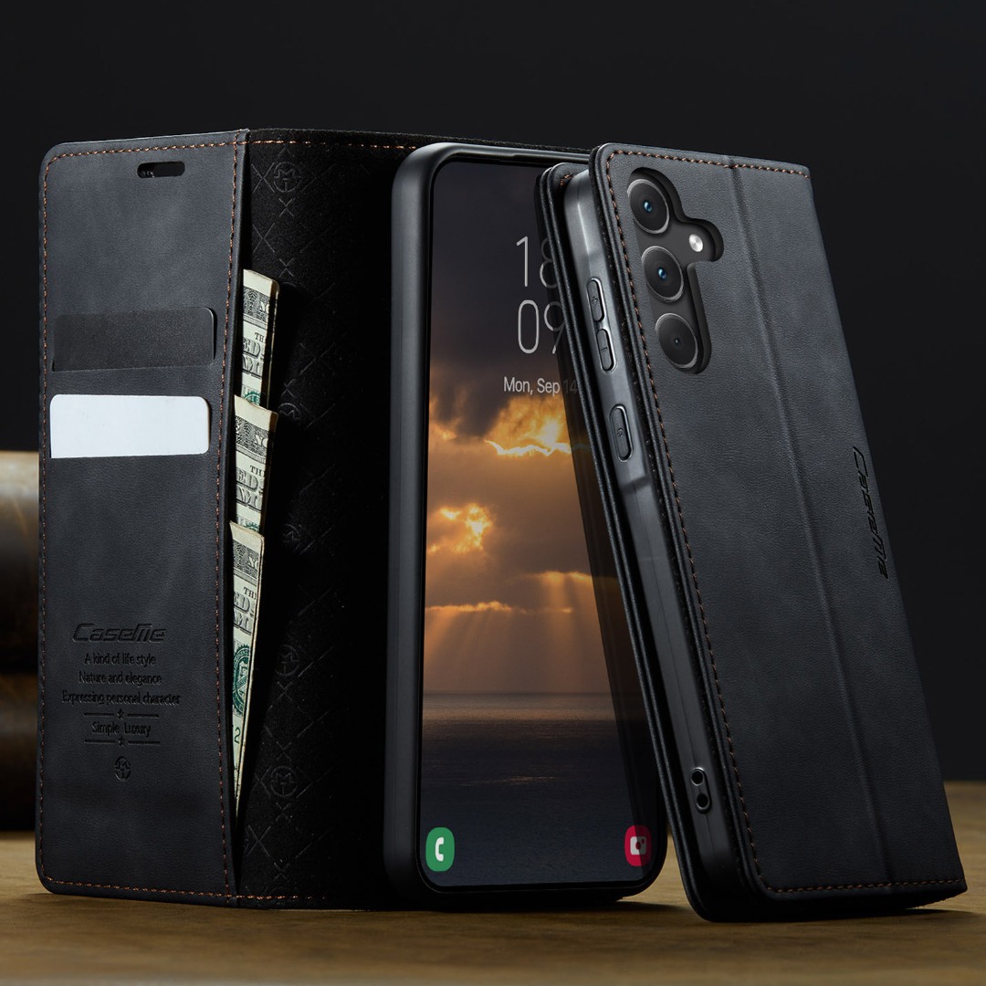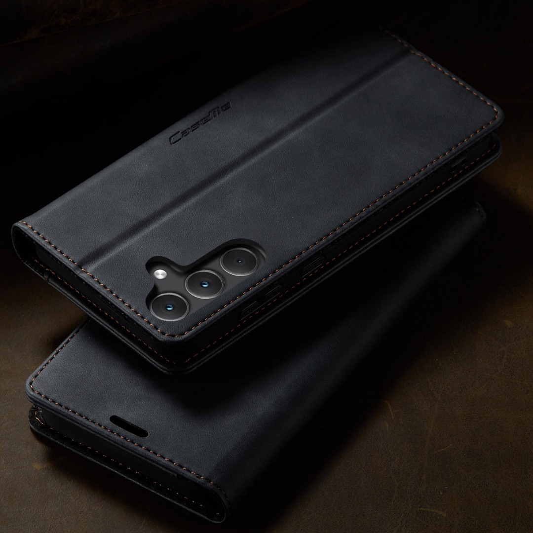 Husa pentru Samsung Galaxy A36 - Slim tip portofel, cu stand si inchidere magnetica – textura neteda, aderenta sigura, usor de curatat, design curat si minimalist, CaseMe, Negru carbon