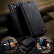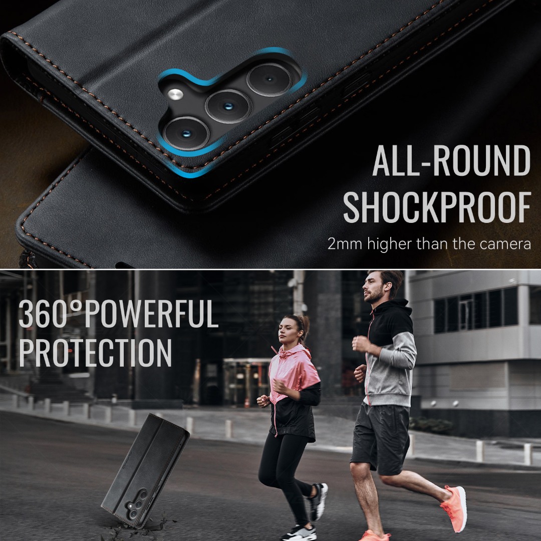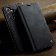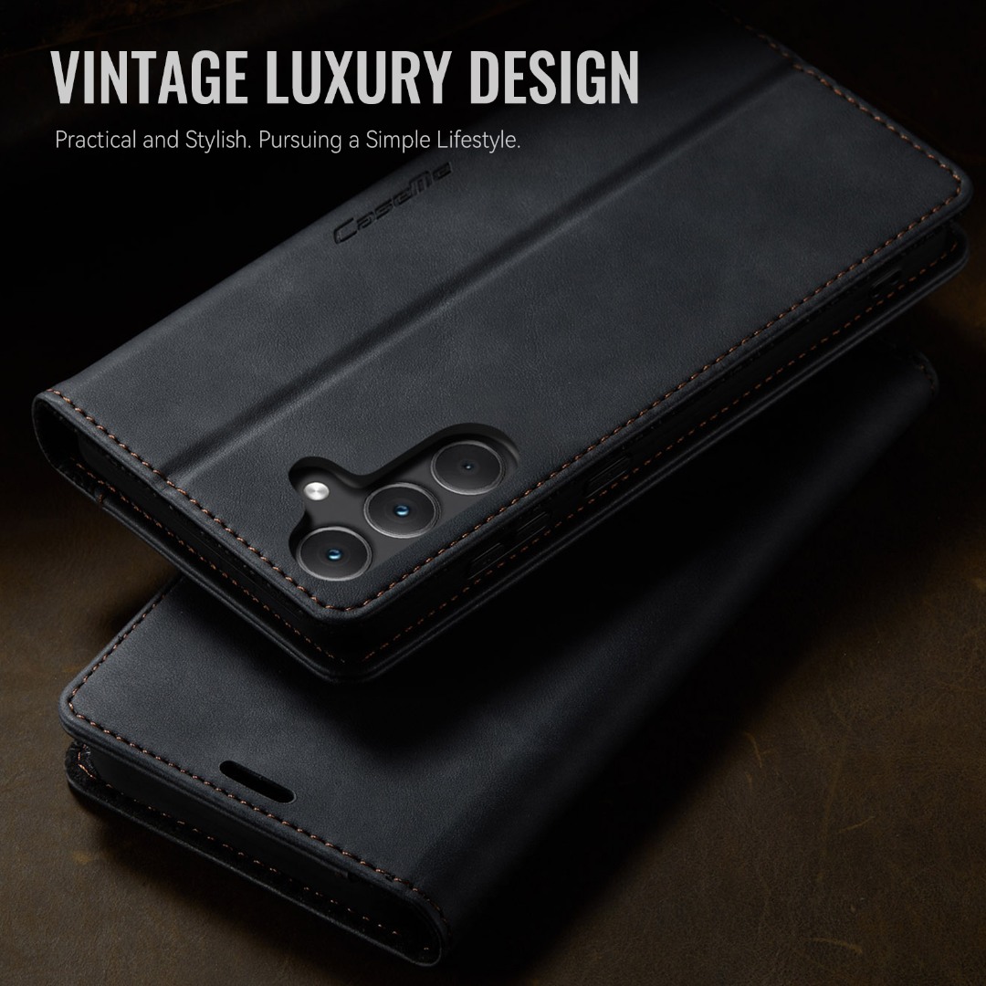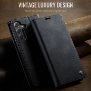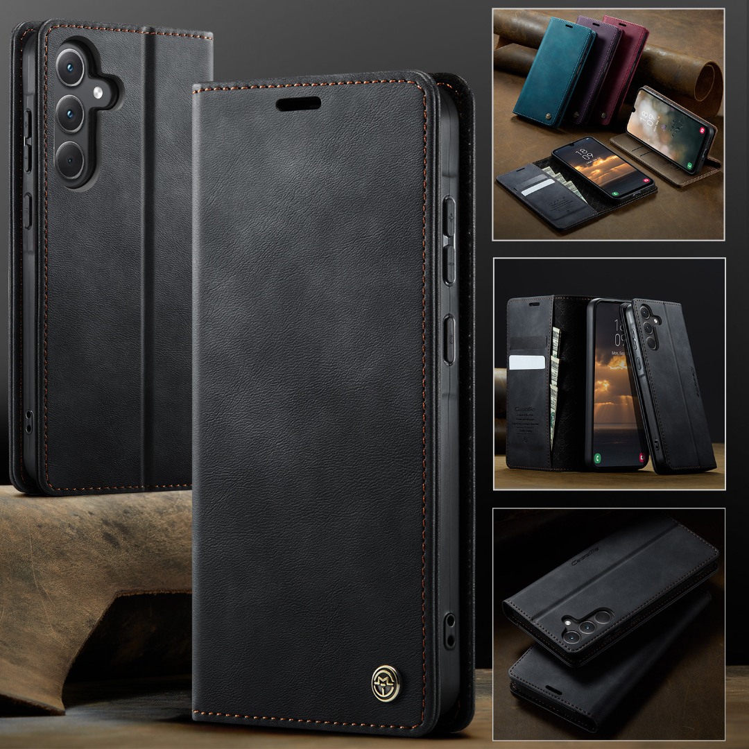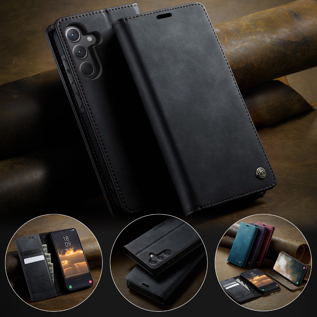Husa pentru Samsung Galaxy A36 - Slim tip portofel, cu stand si inchidere magnetica – textura neteda, aderenta sigura, usor de curatat, design curat si minimalist, CaseMe, Negru carbon
