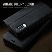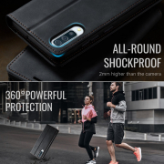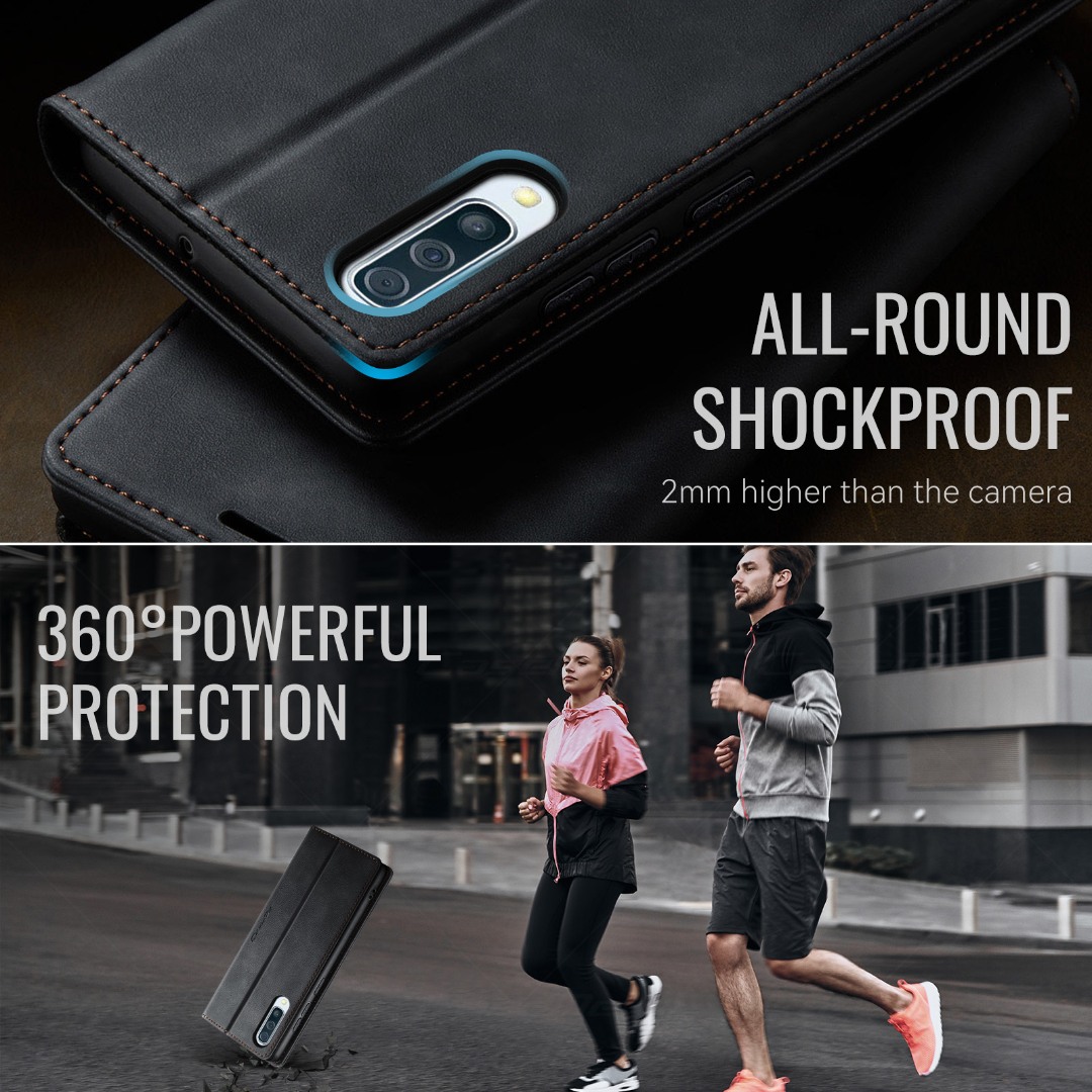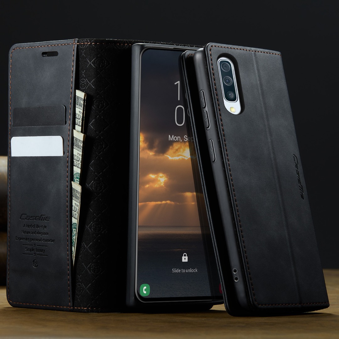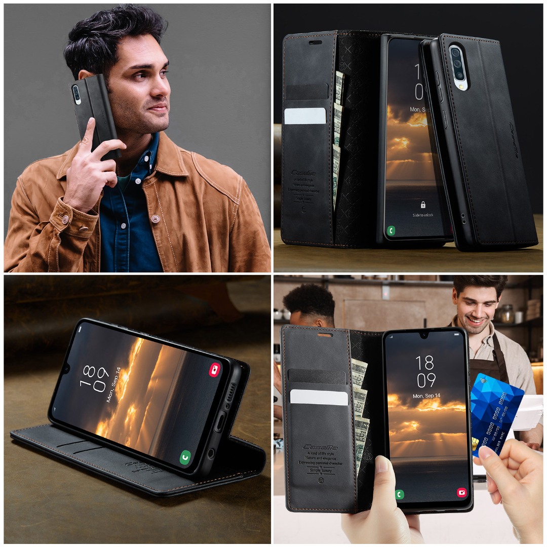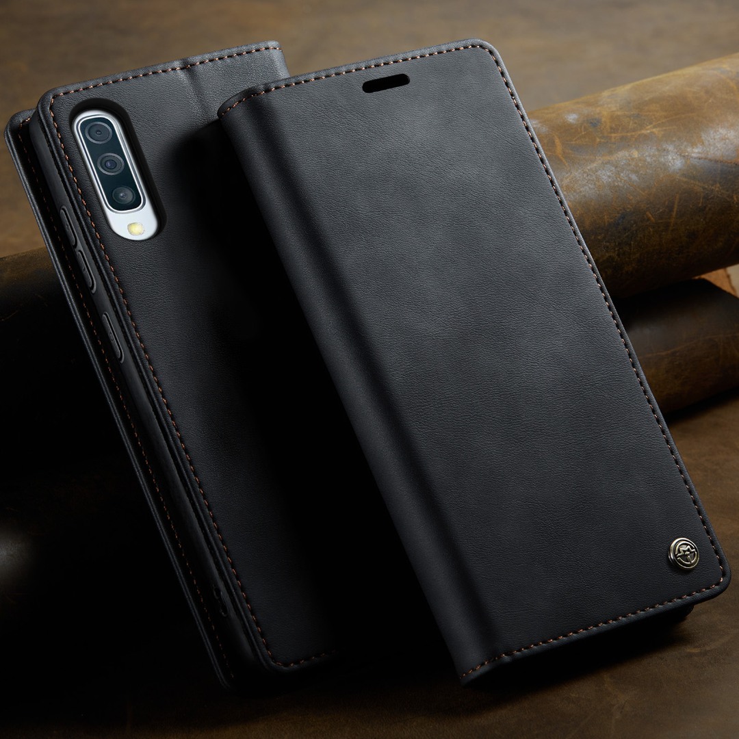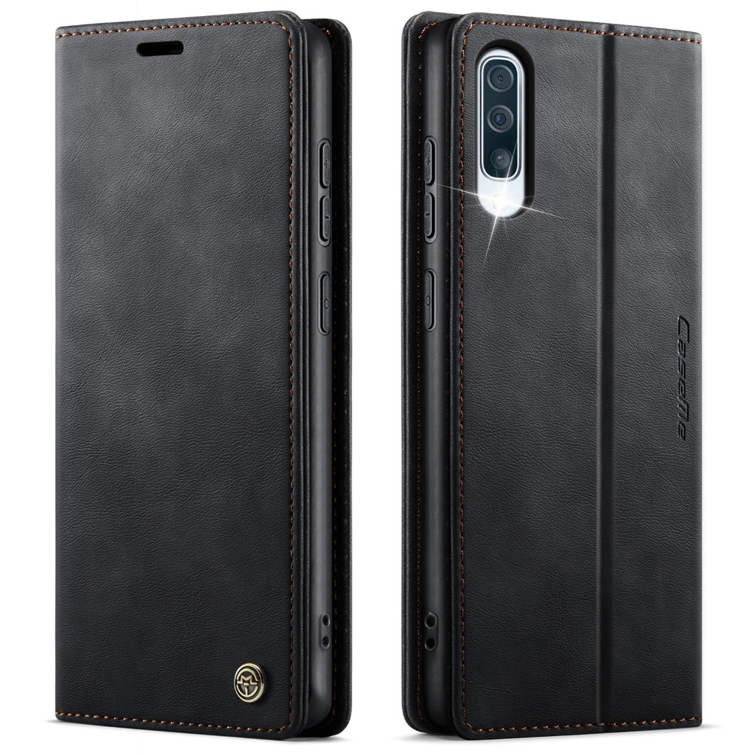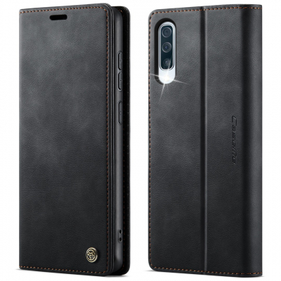 Husa pentru Samsung Galaxy A50 / A30S - Slim tip portofel, cu stand si inchidere magnetica – textura neteda, aderenta sigura, usor de curatat, design curat si minimalist, CaseMe, Negru carbon