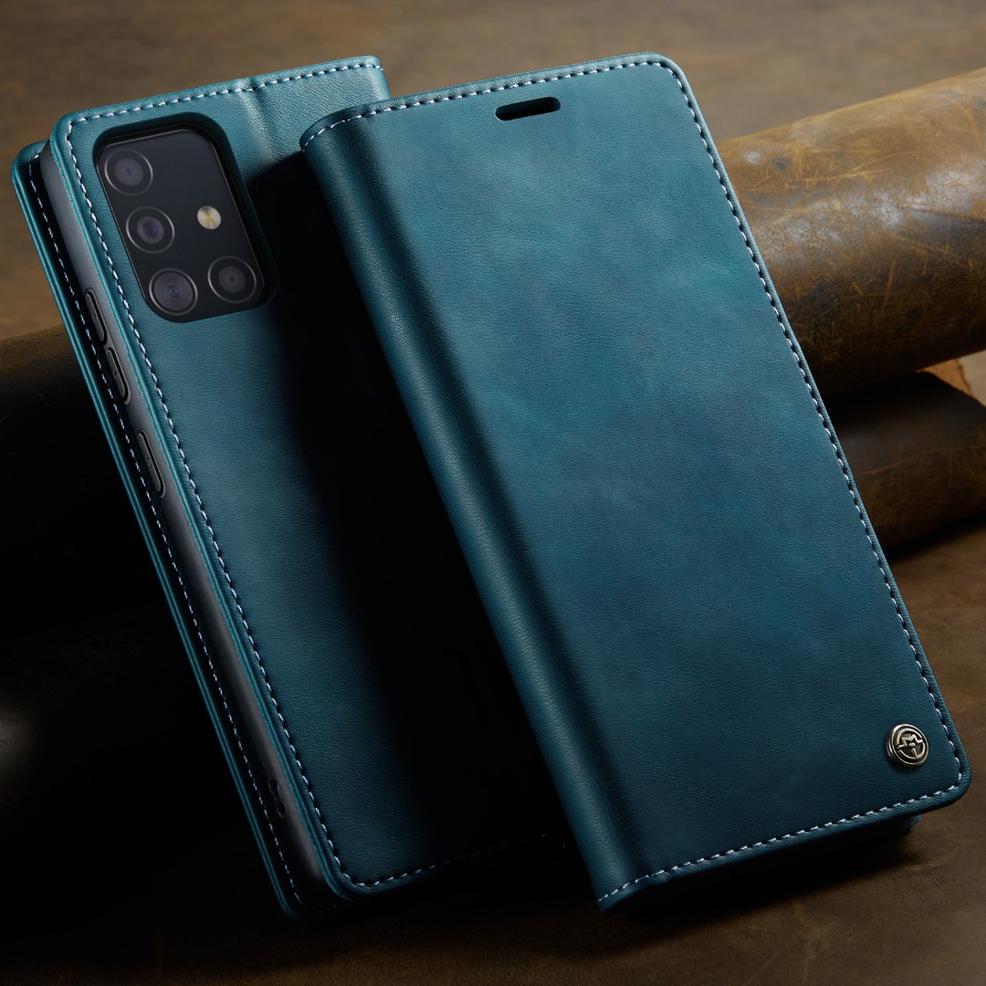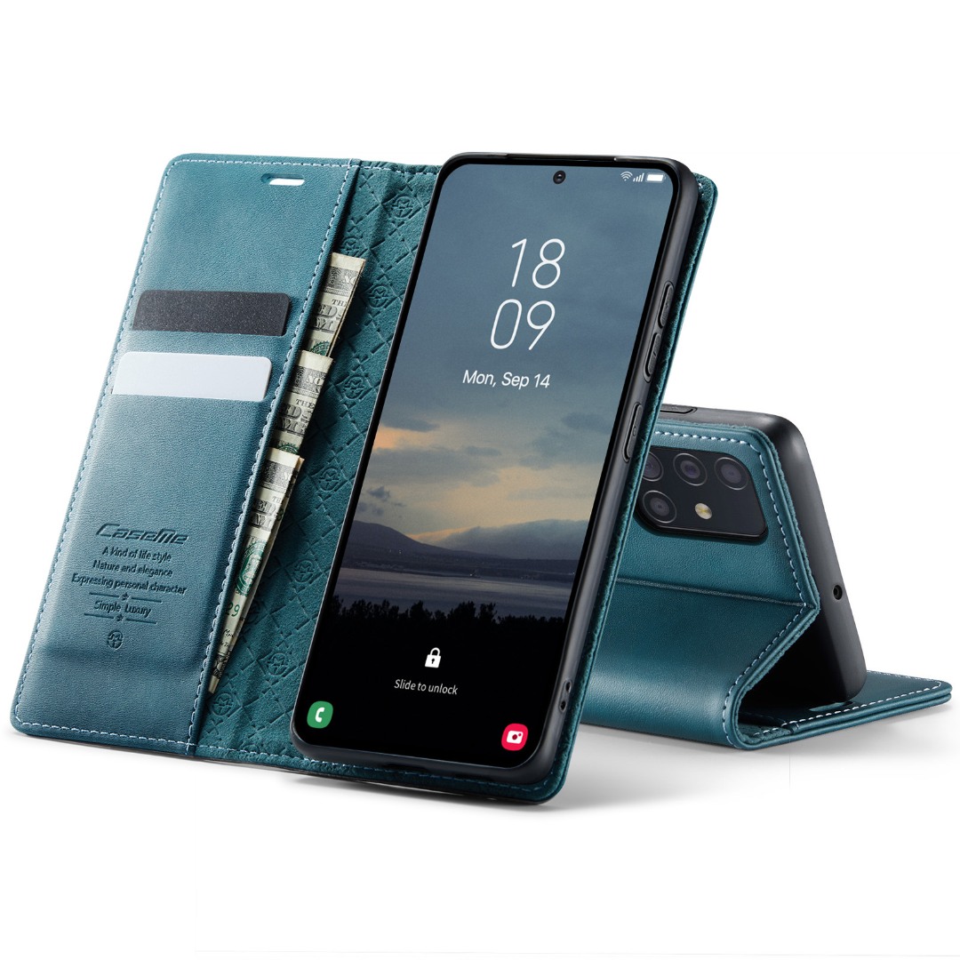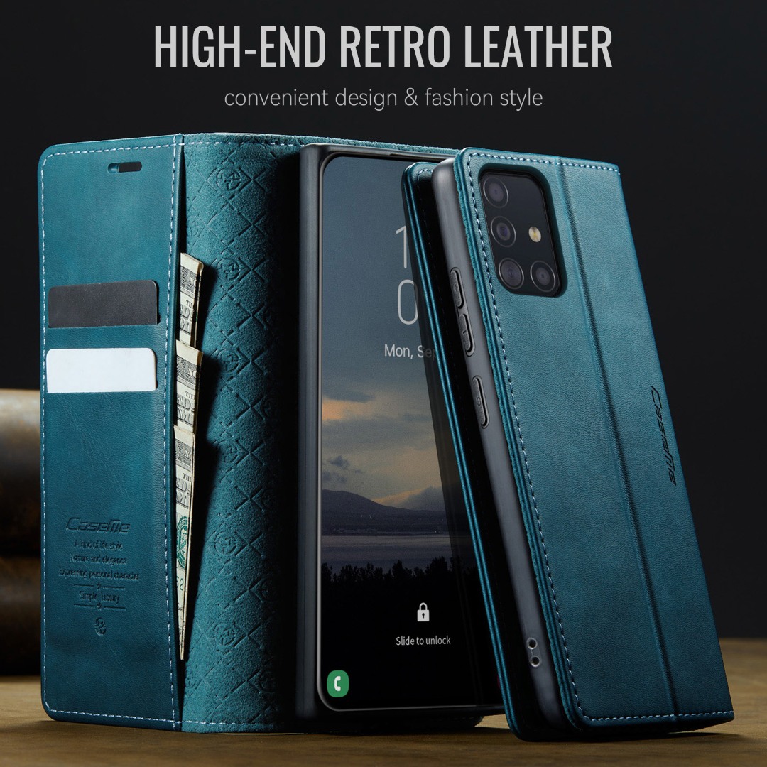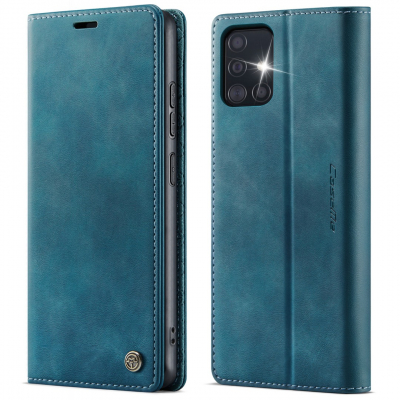 Husa pentru Samsung Galaxy A51 - Slim tip portofel, cu stand si inchidere magnetica – textura neteda, aderenta sigura, usor de curatat, design curat si minimalist, CaseMe, Teal - Albastru verzui