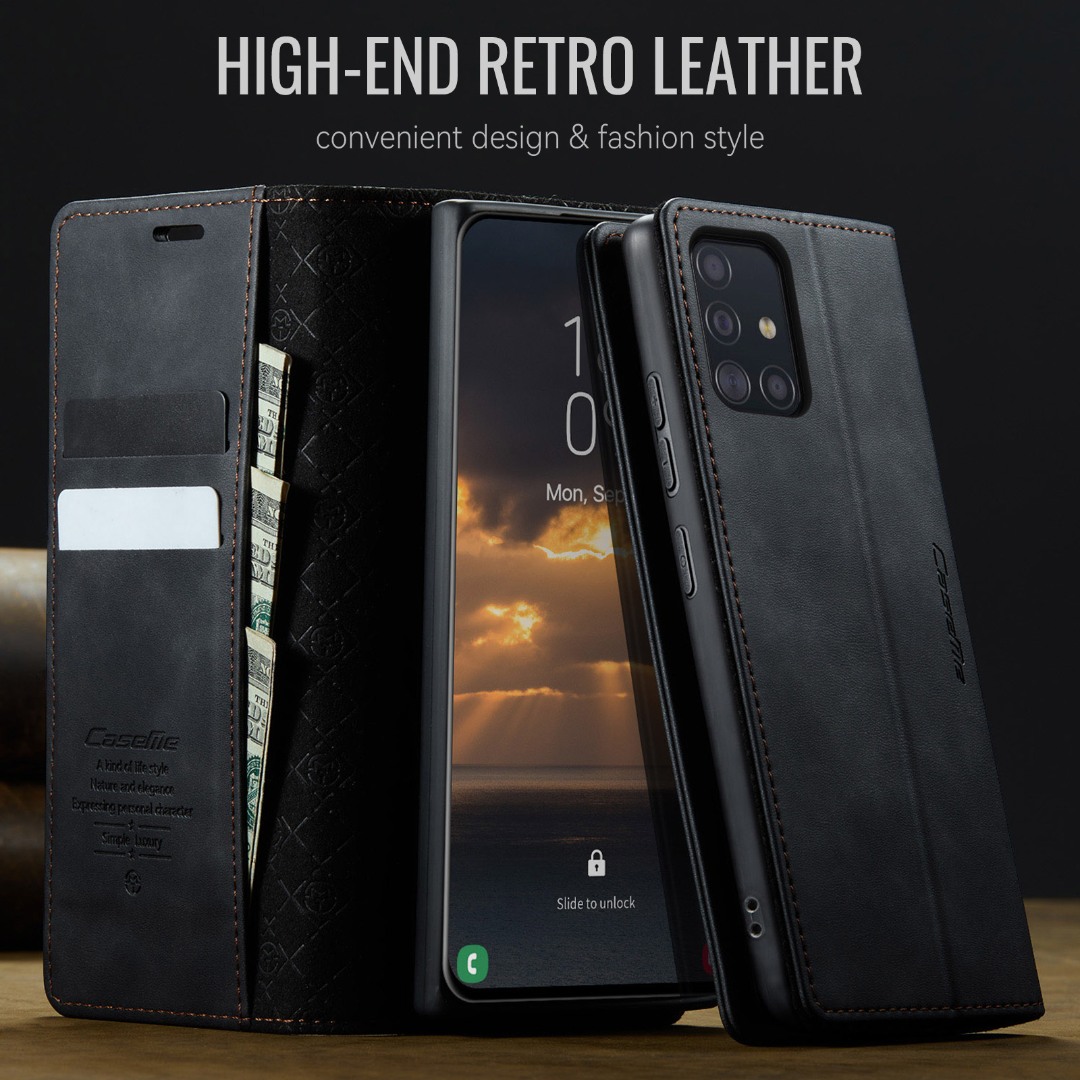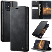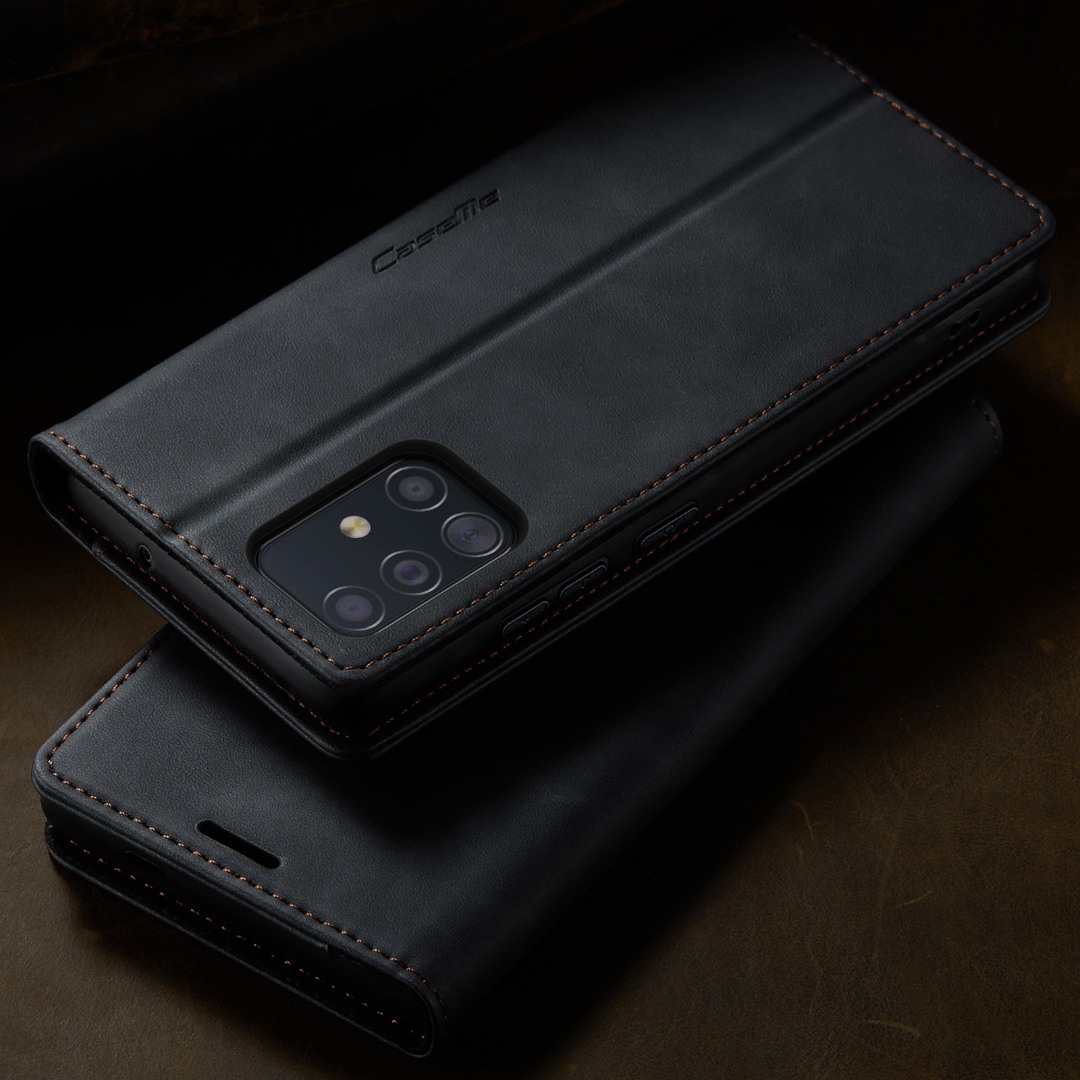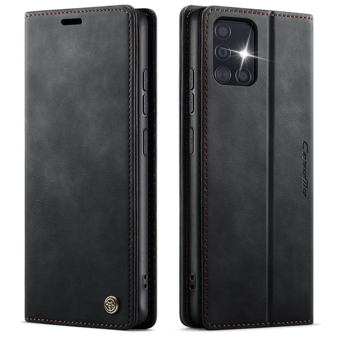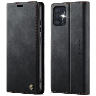 Husa pentru Samsung Galaxy A51 - Slim tip portofel, cu stand si inchidere magnetica – textura neteda, aderenta sigura, usor de curatat, design curat si minimalist, CaseMe, Negru carbon
