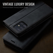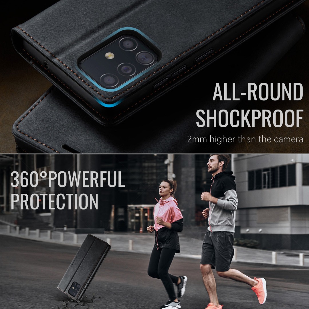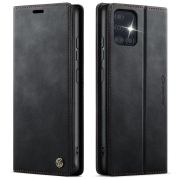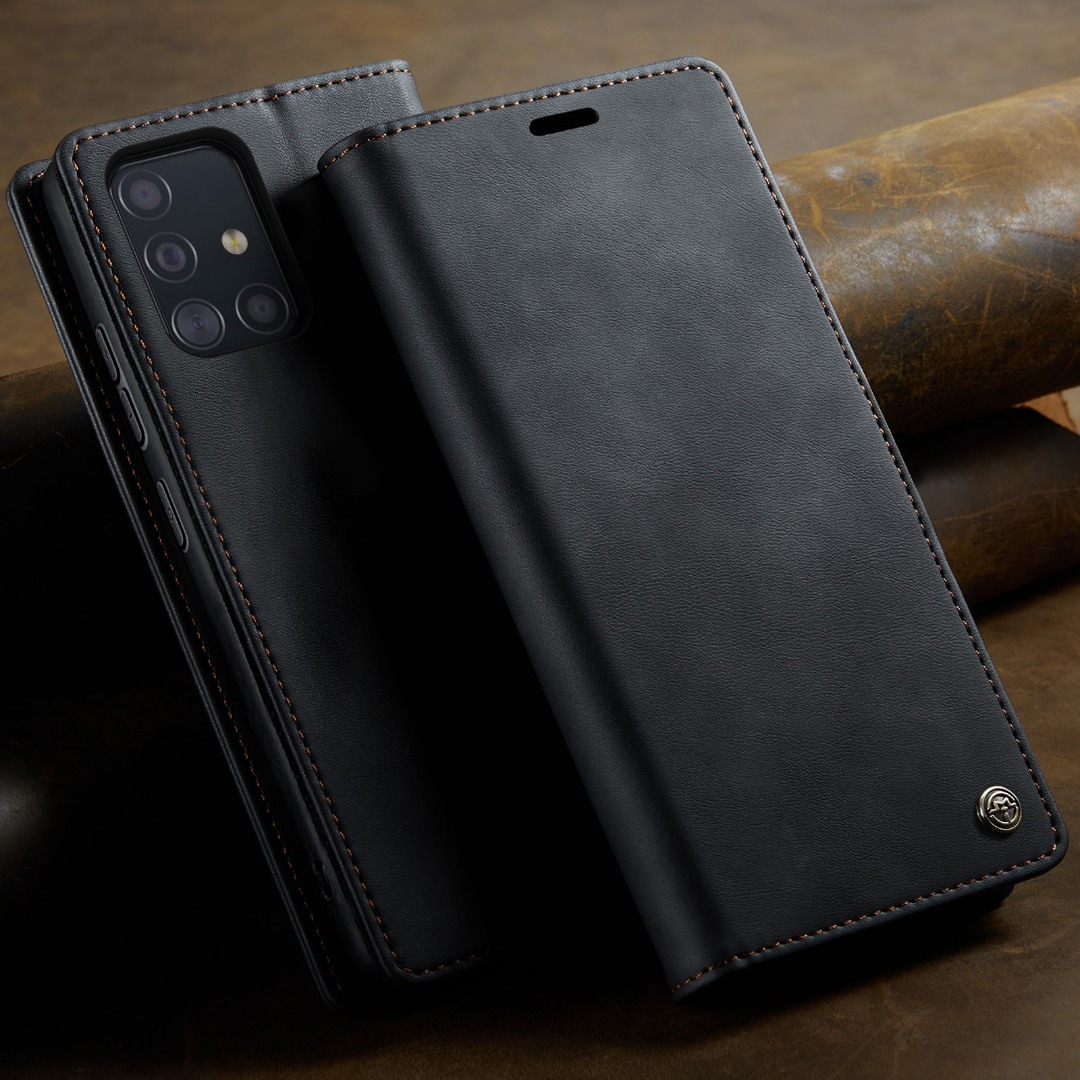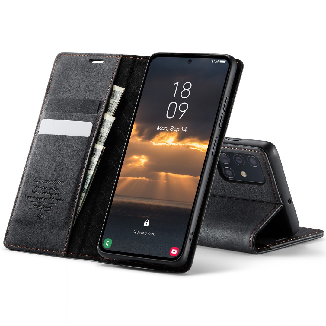 Husa pentru Samsung Galaxy A51 - Slim tip portofel, cu stand si inchidere magnetica – textura neteda, aderenta sigura, usor de curatat, design curat si minimalist, CaseMe, Negru carbon